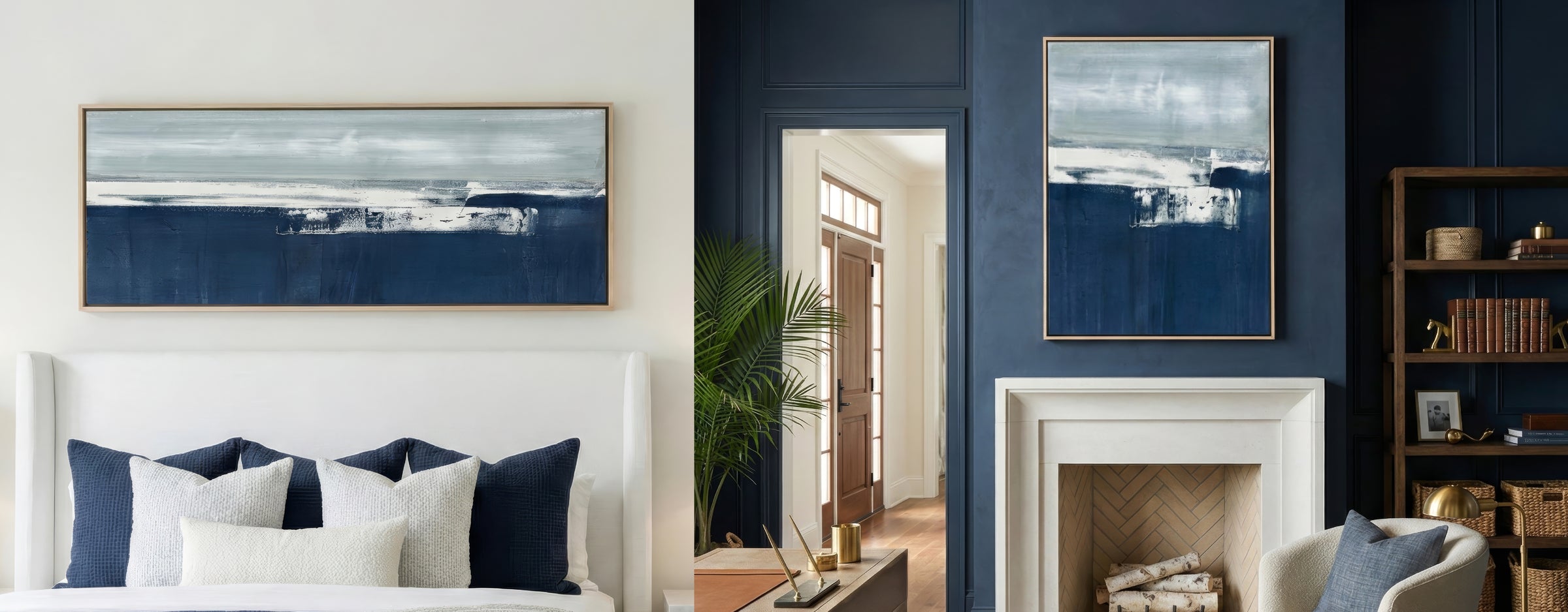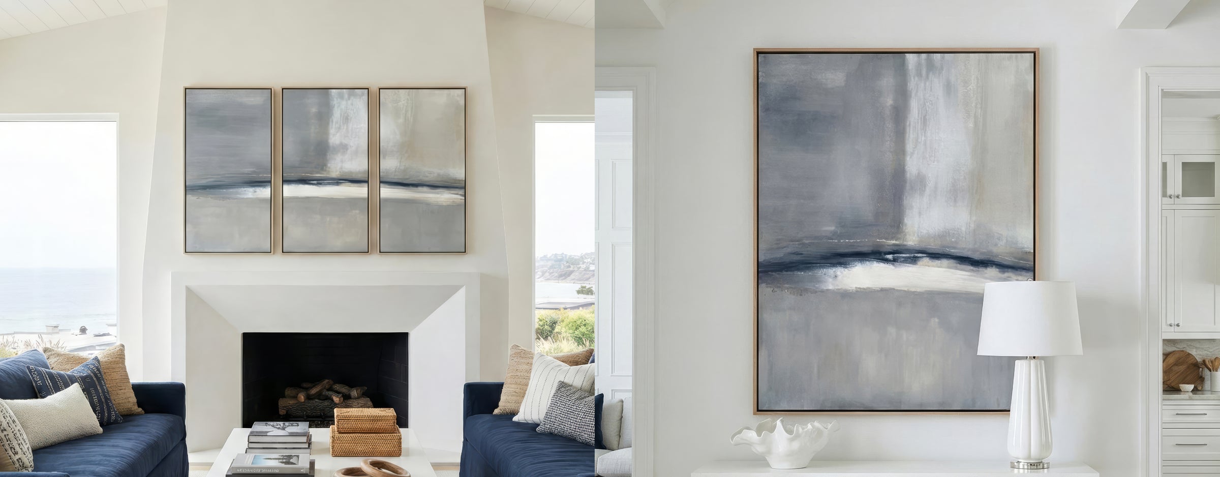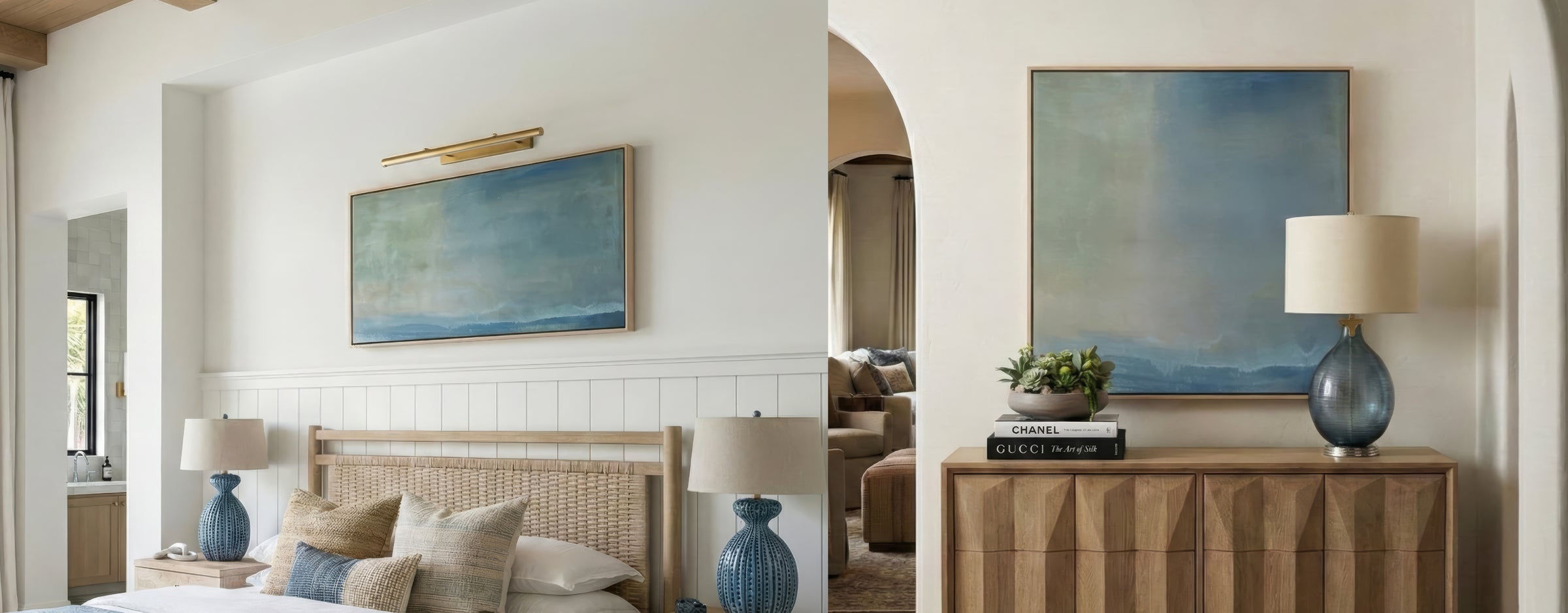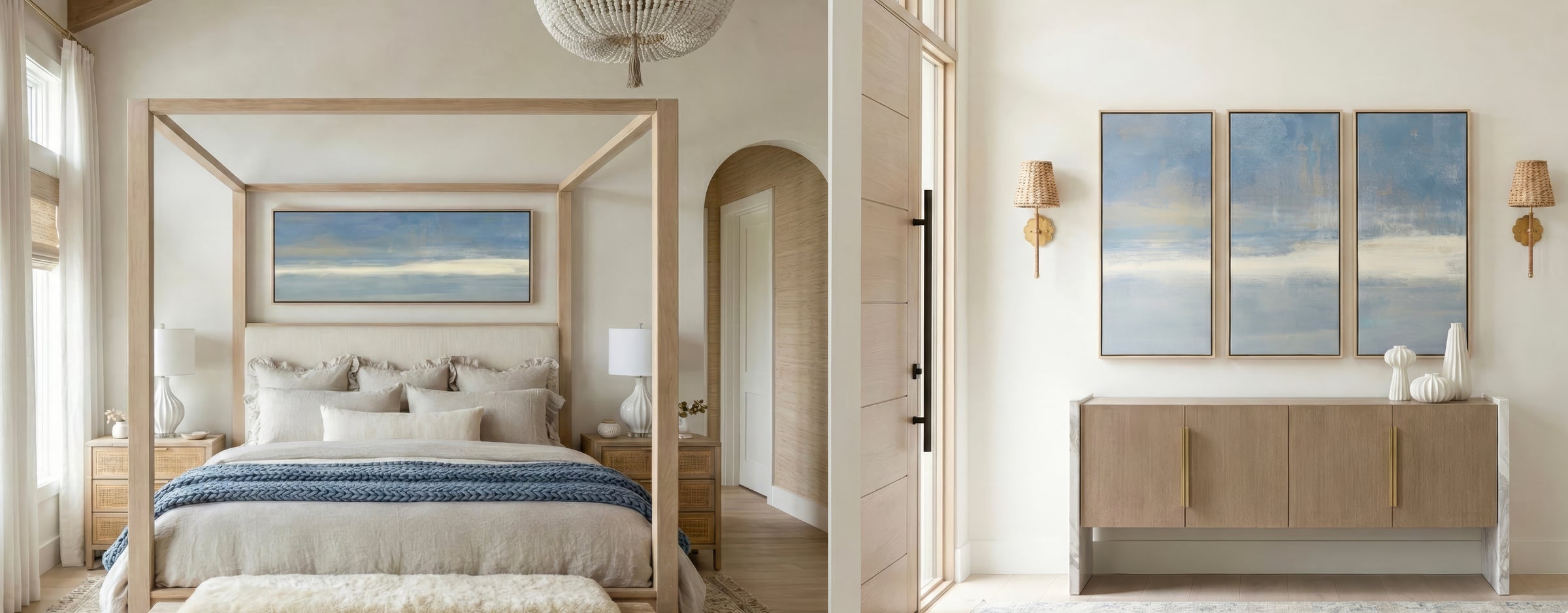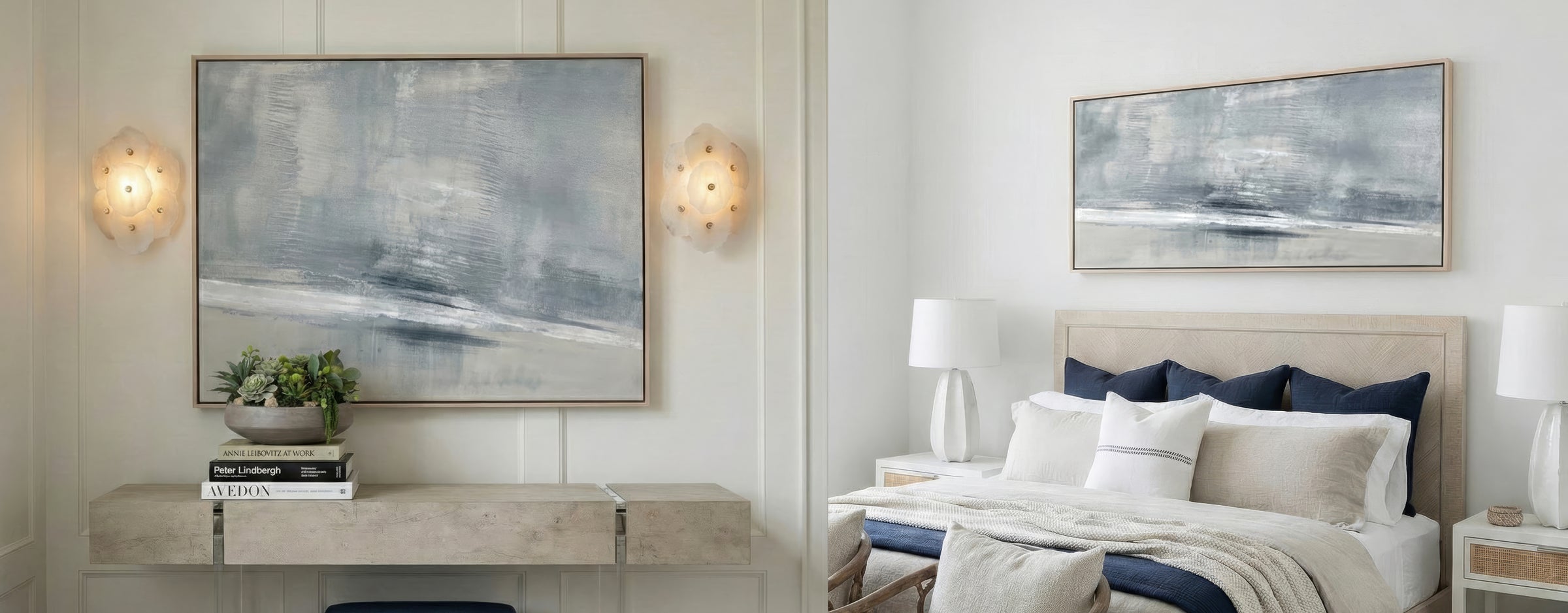 The Reproduction Canvas is Carol's most accessible offering — gallery-quality giclée prints produced in her Dallas studio, available in a wide range of sizes and formats to fit the spaces you actually work with. The same palette, the same composition, the same sense of calm. Starting point for designers who need flexibility without compromise.