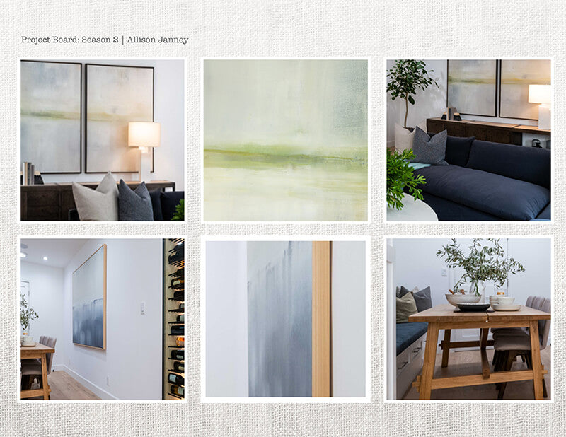 The Property Brothers' design team has been working with Benson-Cobb and her studio directly since 2014. Each artwork is selected unique to the episode. In many cases artwork is customized or developed specifically for the project.
