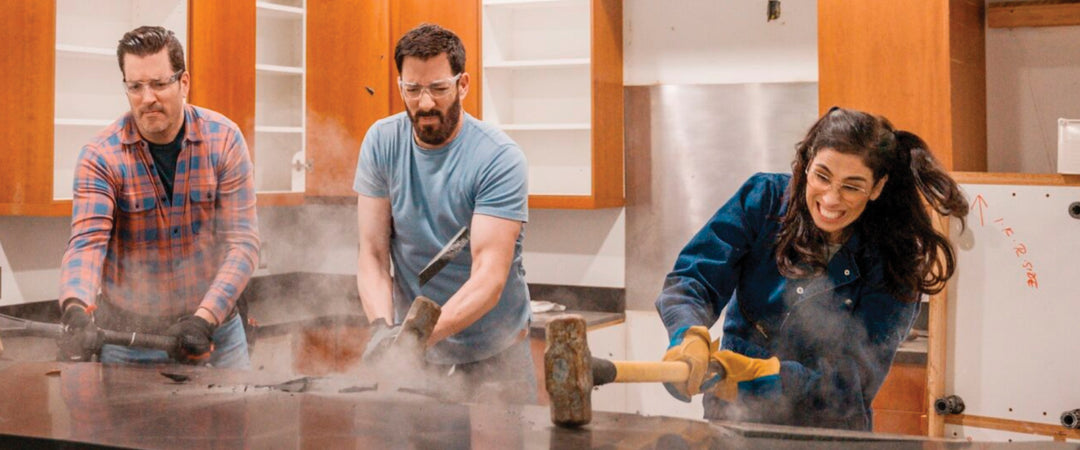 Sarah Silverman and the Property Brothers renovate the kitchen of Sarah's best friend, Amy. "In Clay", framed in ebony for contrast, becomes a focal wall for the modern update.