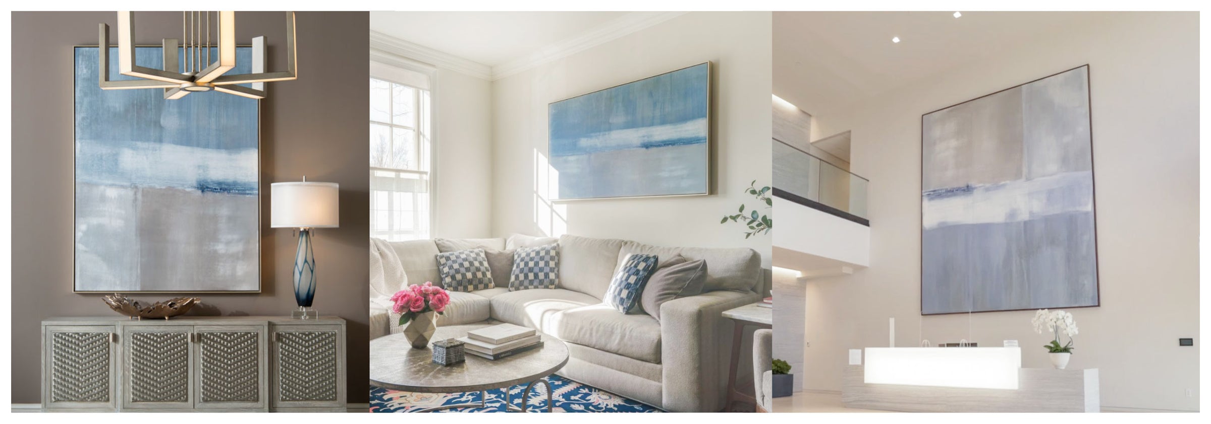 Painted in 2011, Adrift No.2 is layered in soft periwinkles. Available as a reproduction and as a signed mixed media canvas in several size and adaptation options.