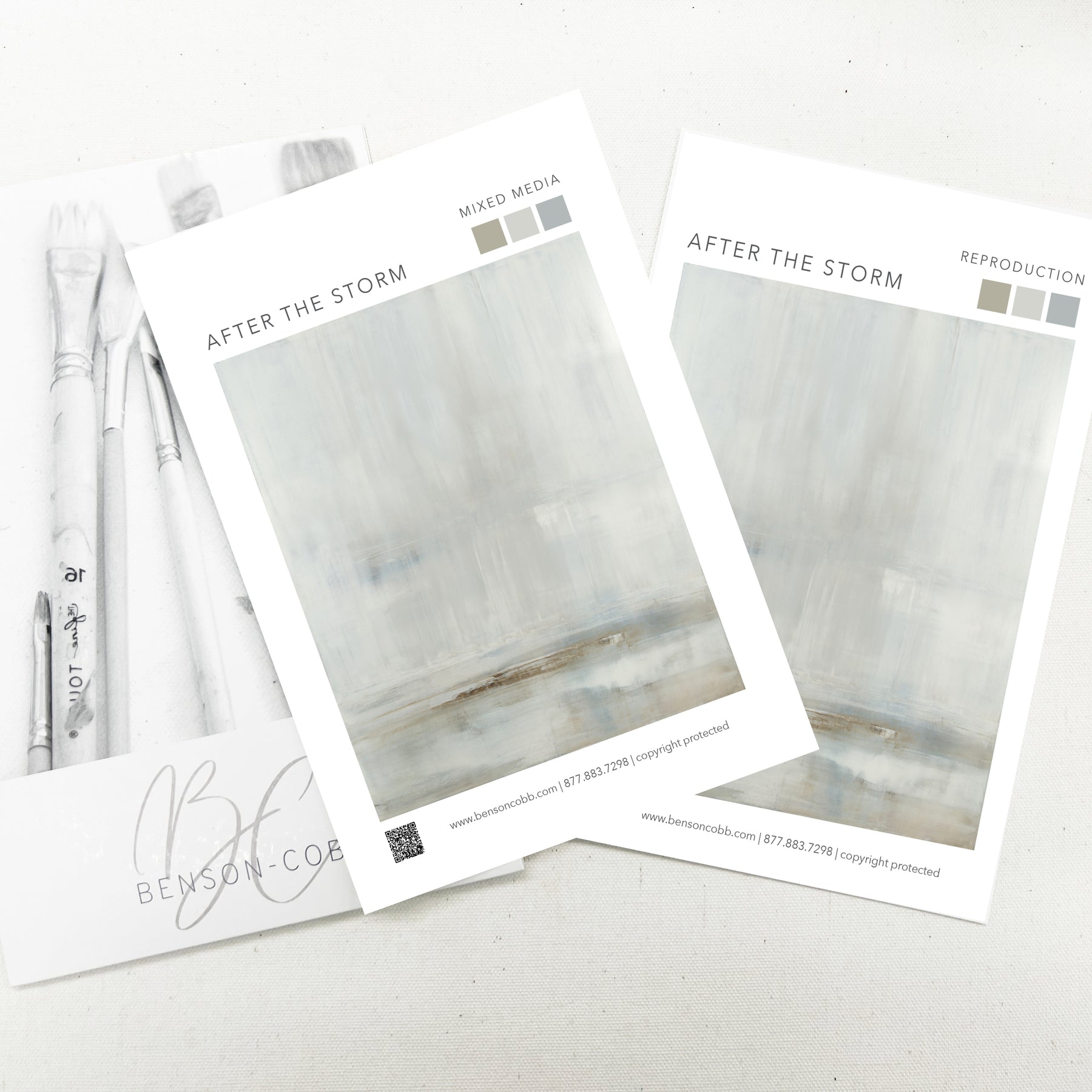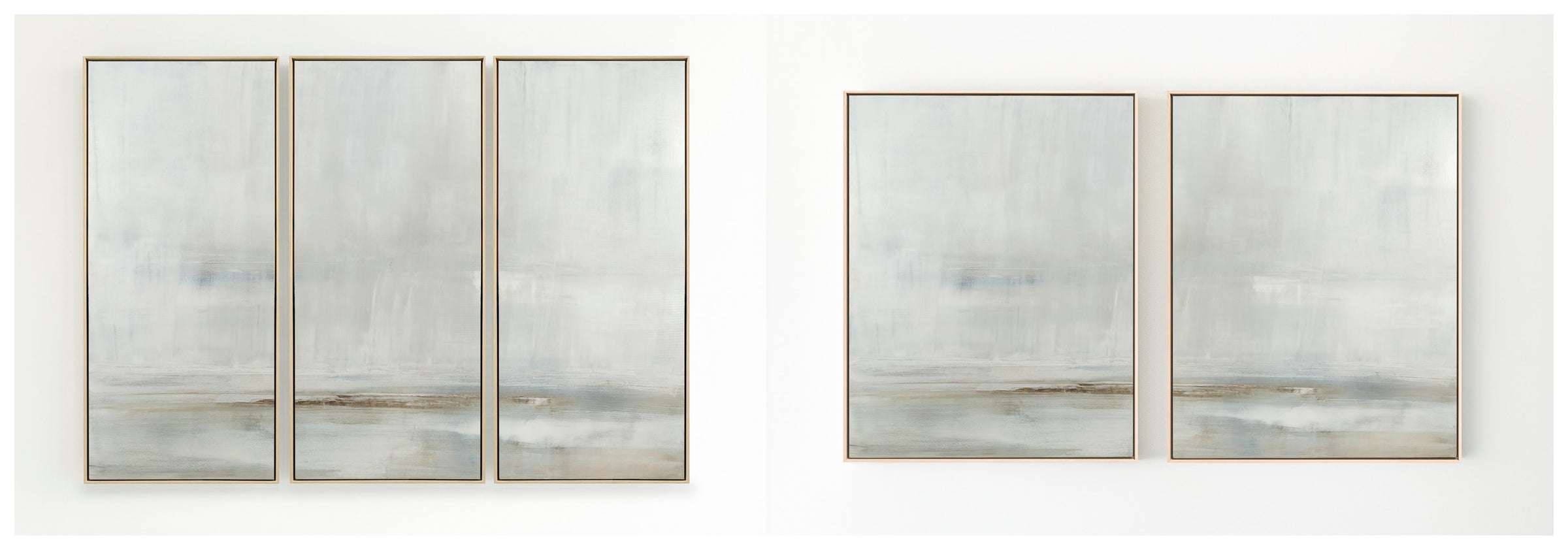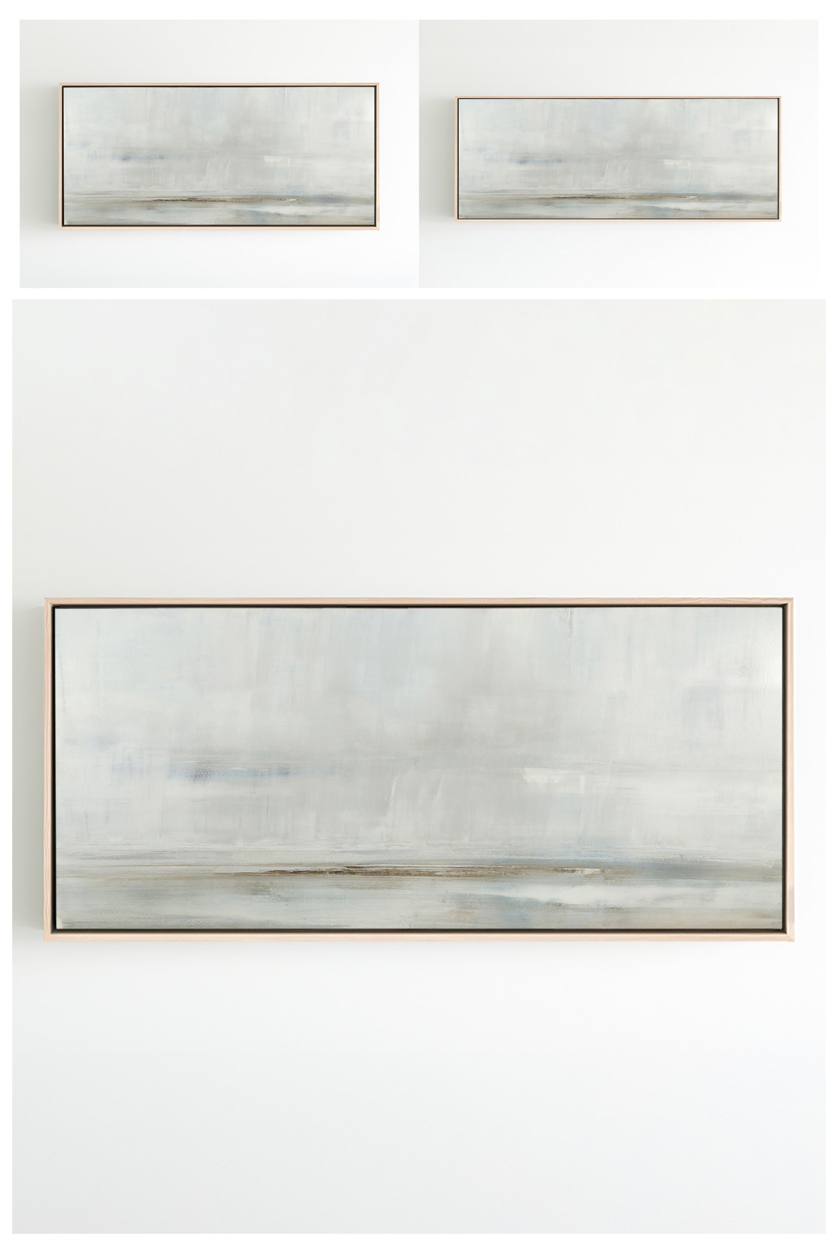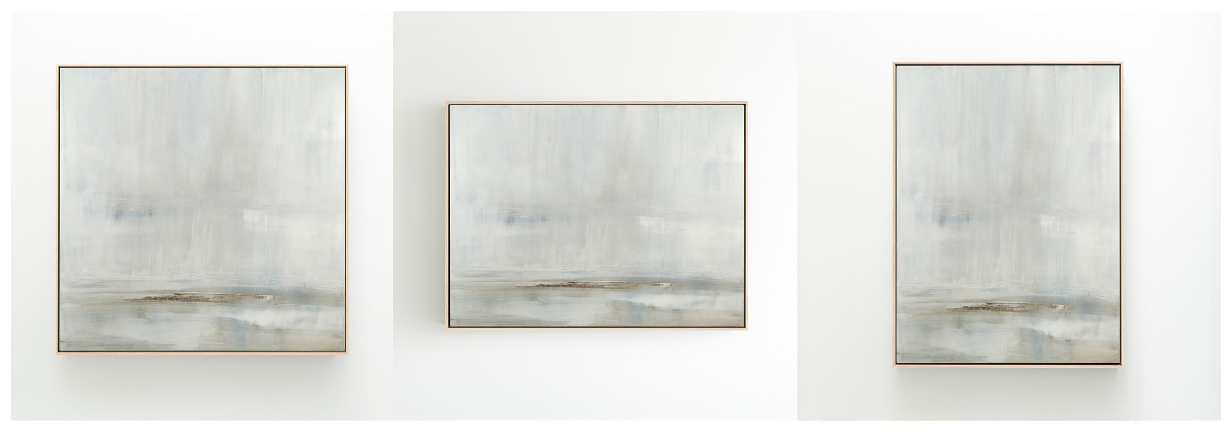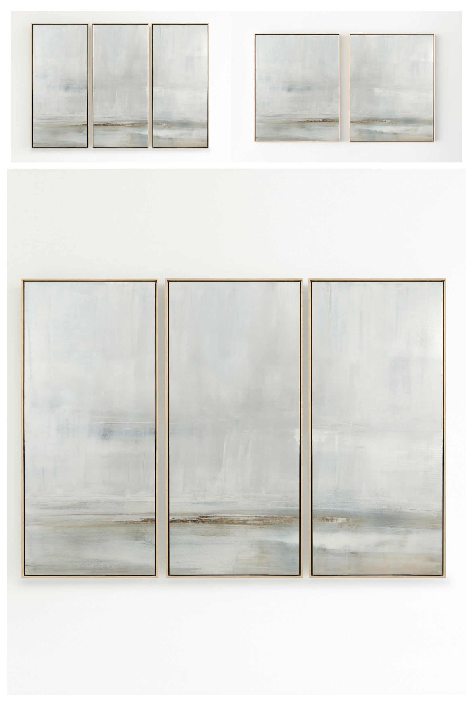 Soft grays, hints of pale blues and umber set the mood for this top-selling painting release in 2011. The After the Storm Collection offer the work in various forms from canvas sets to narrow adaptations. Select from our standard reproduction sizes or choose a more custom piece with the hand-finished and signed mixed media.