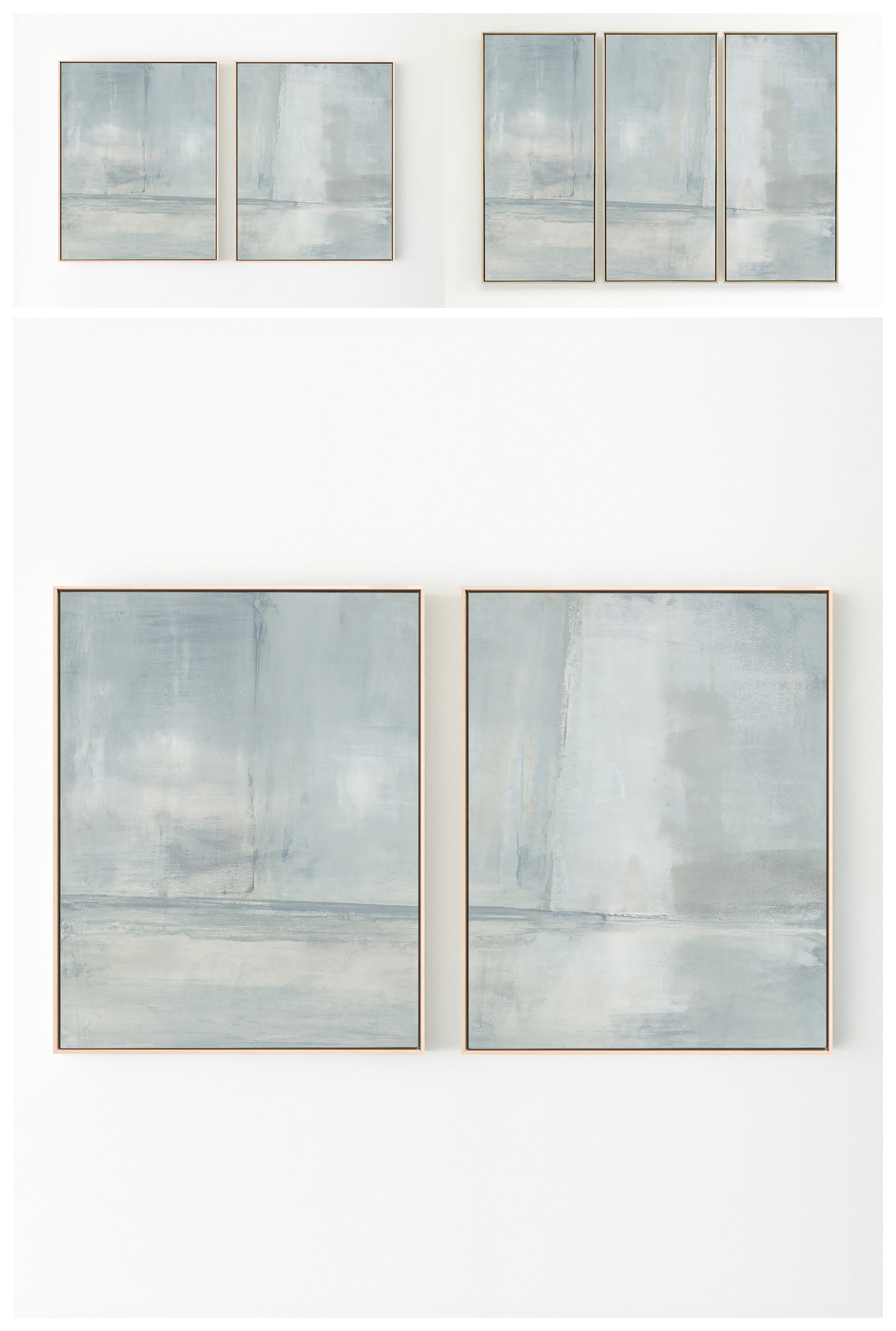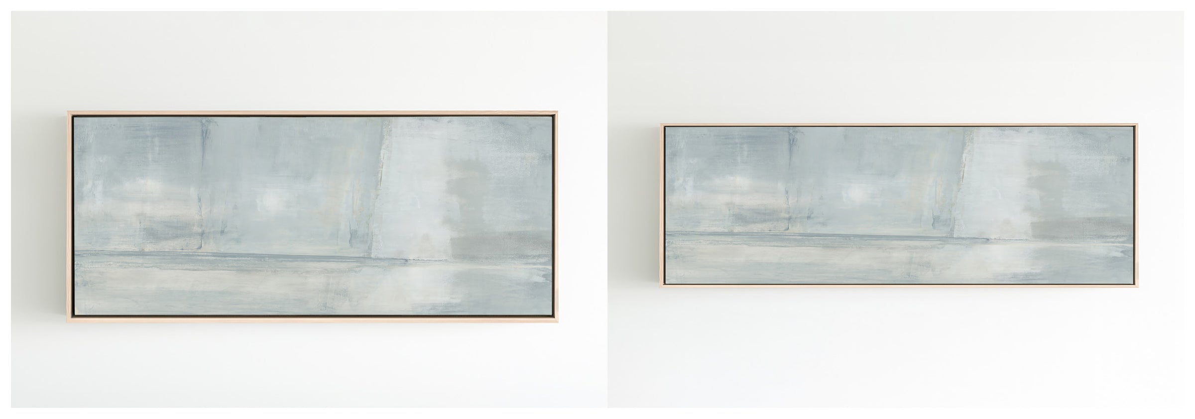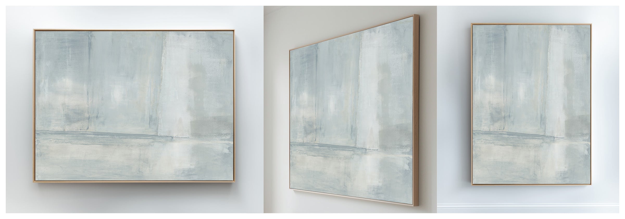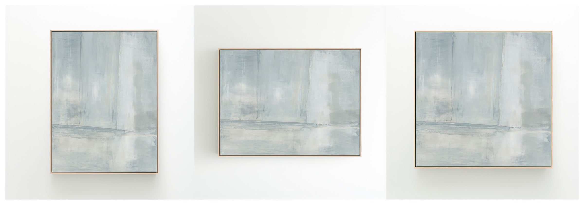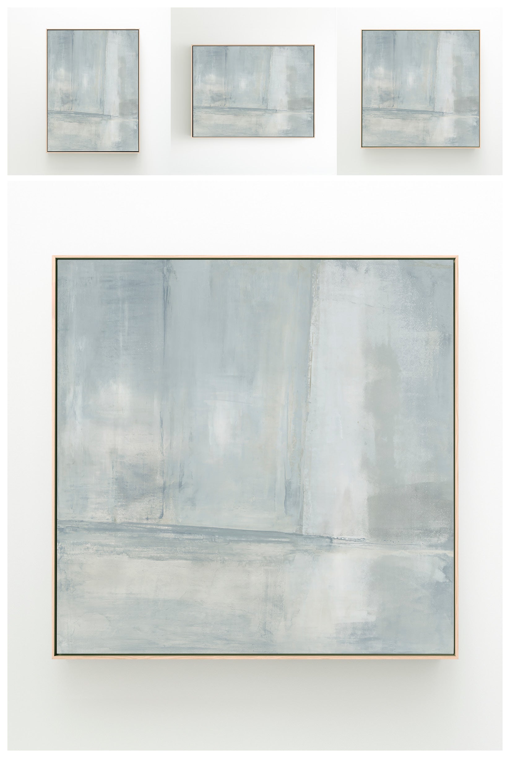 Highs and lows of light in blue-grays, inspired by the reflections of geological formations. The Artifact Collection offers the painting in various forms from the original painting to a large selection of reproductions. The Canvas Basics offer the work in square, horizontal, and vertical formats. The Large Canvases are options in our most impactful sizes. The Canvas Sets include diptychs and triptychs, giving the work a different focal than a singular canvas. Our Narrow Canvases are adaptations in several sizes. As with all of my work, signed and hand-finished mixed media canvases are available in custom sizes.