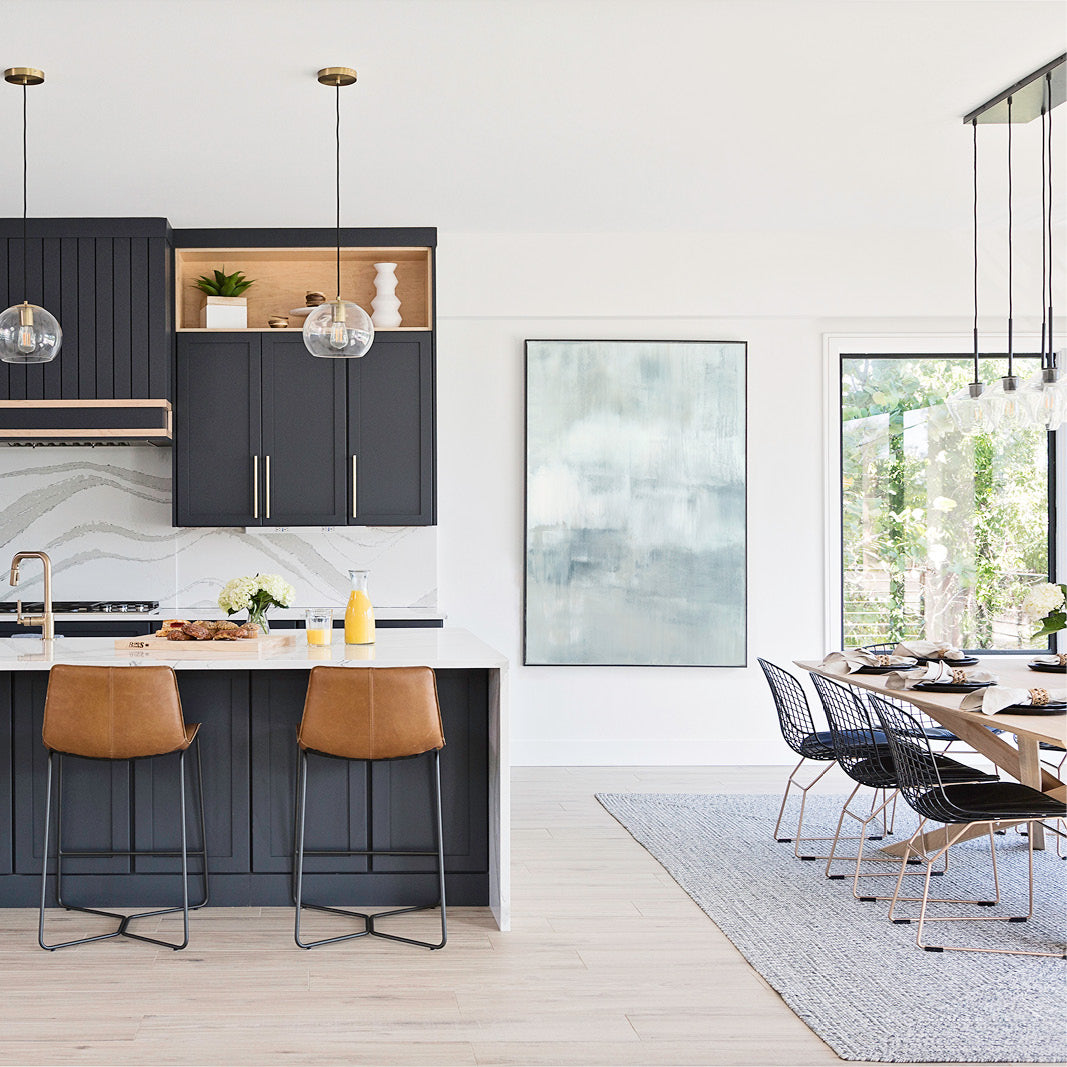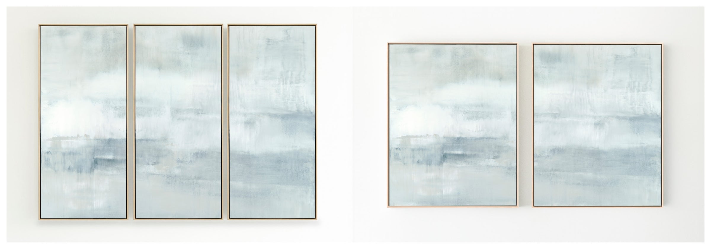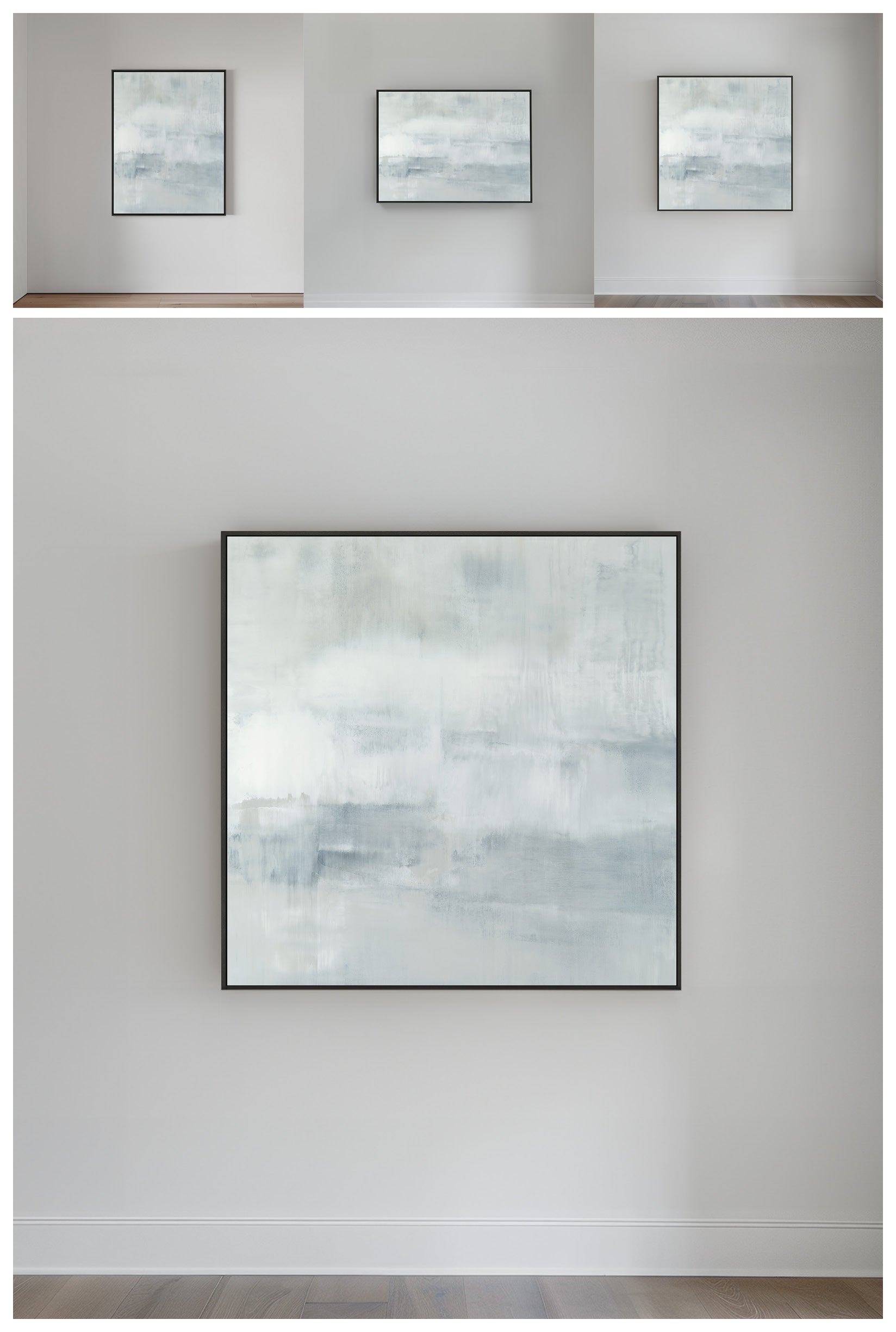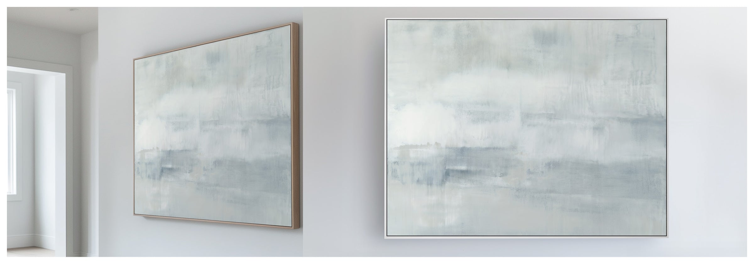 Minty blues and whites with undertones of grays, the composition has an elevated feeling of motion. The Collection offers the work in many forms as a reproduction. The Canvas Basics format the work in square, horizontal, and vertical canvases. The Large Canvases offer our most impactful sizes. The Canvas Sets extend the painting across multiple canvases as a diptych or triptych. The Narrow Canvas is a great solution for hard to fill spaces, available in a range of sizes. Additional sizing is available as a hand-finished and signed mixed media canvas.