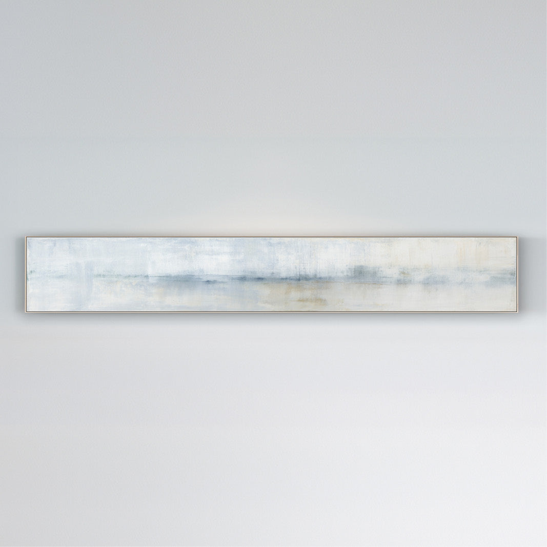 Layers of creamy whites, navy and umber tones create soft movement. Our canvas basics offer the painting in square, horizontal, and vertical formats in a range of standard sizes. Winter Bounty is also available as a canvas set and in narrow sizes. Additional customization is available as a signed and hand-finished mixed media canvas.