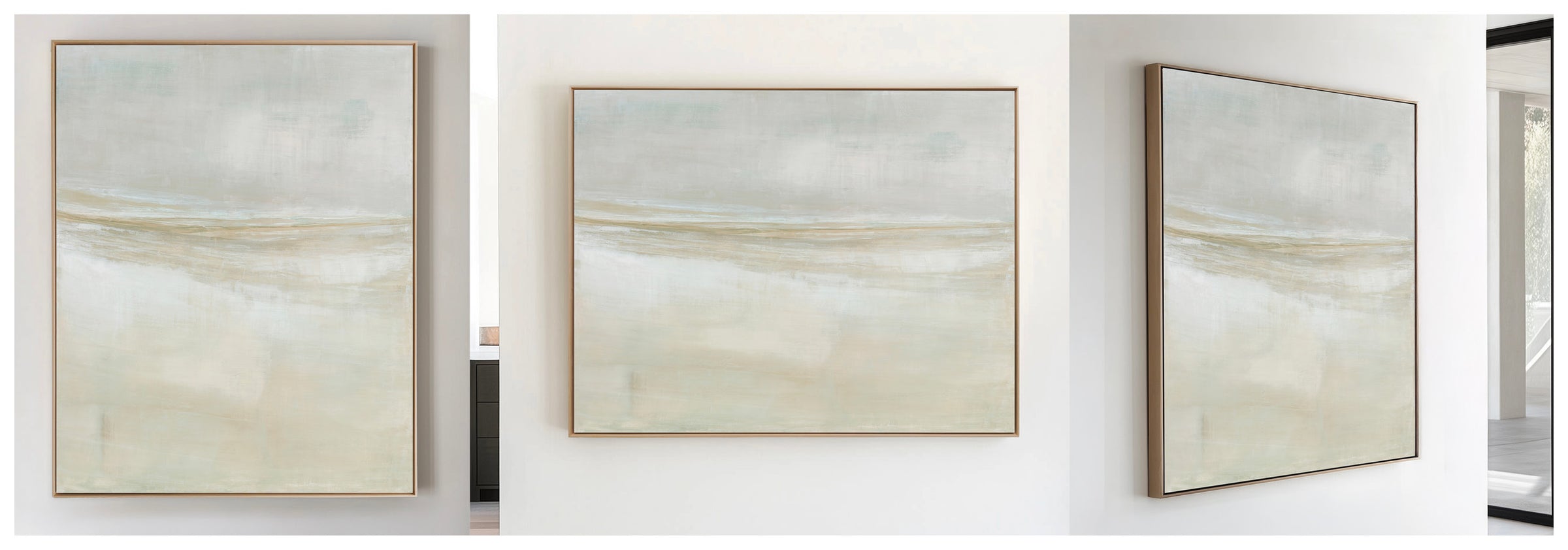 A layered landscape in washed earthy tones, hints of a moody sky form with steel blue undertones. The Boundless Collection offers the painting in various forms as a reproduction. The Canvas Basics offer the work in square, horizontal, and vertical formats. The Large Canvases are options in our most impactful sizes. The Canvas Sets include diptychs and triptychs, giving the work a different focal than a singular canvas. Our Narrow Canvases are adaptations in several sizes. As with all of my work, signed and hand-finished mixed media canvases are available in custom sizes.The original work was painted in 2025 on gesso board.