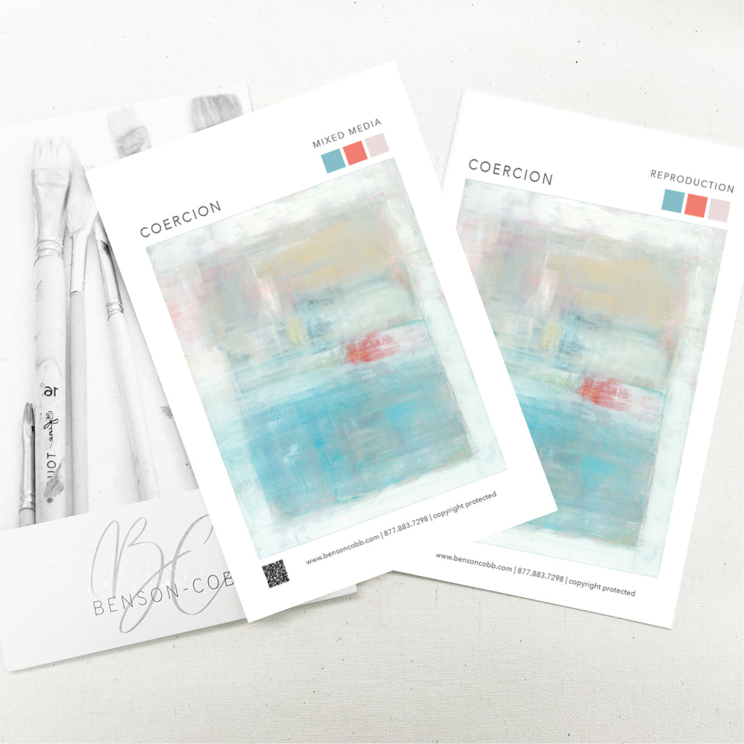 Reproductions present the opportunity to acquire my work at an accessible price point. Sizes are limited to the standard options listed. Reproductions are printed using a scuff-resistant satin canvas. Color may vary slightly from the mixed media canvas due to the variation in inks sets and sealing processes.