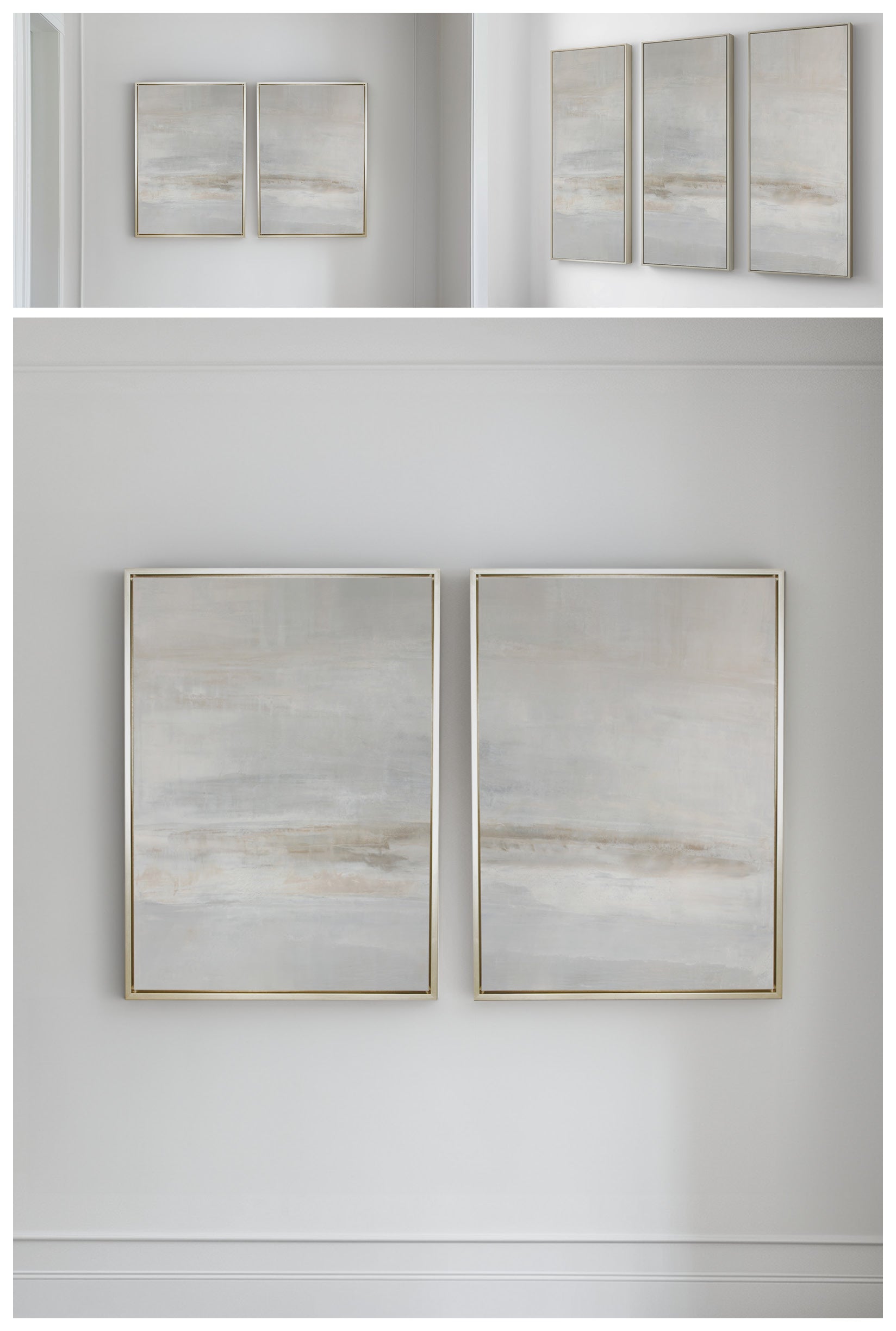 Ethereal formations in soft grays and pale blush tones, companion to Delicate Forms No.2. The Collection offers a wide range reproduction options. The Canvas Basics format the work in square, horizontal, and vertical canvases. The Large Canvases offer our most impactful sizes. The Canvas Sets extend the painting across multiple canvases as a diptych or triptych. The Narrow Canvas is a great solution for hard to fill spaces, available in a range of sizes. Additional sizing is available as a hand-finished and signed mixed media canvas.Available as a reproduction and as a signed mixed media canvas in several size and adaptation options.