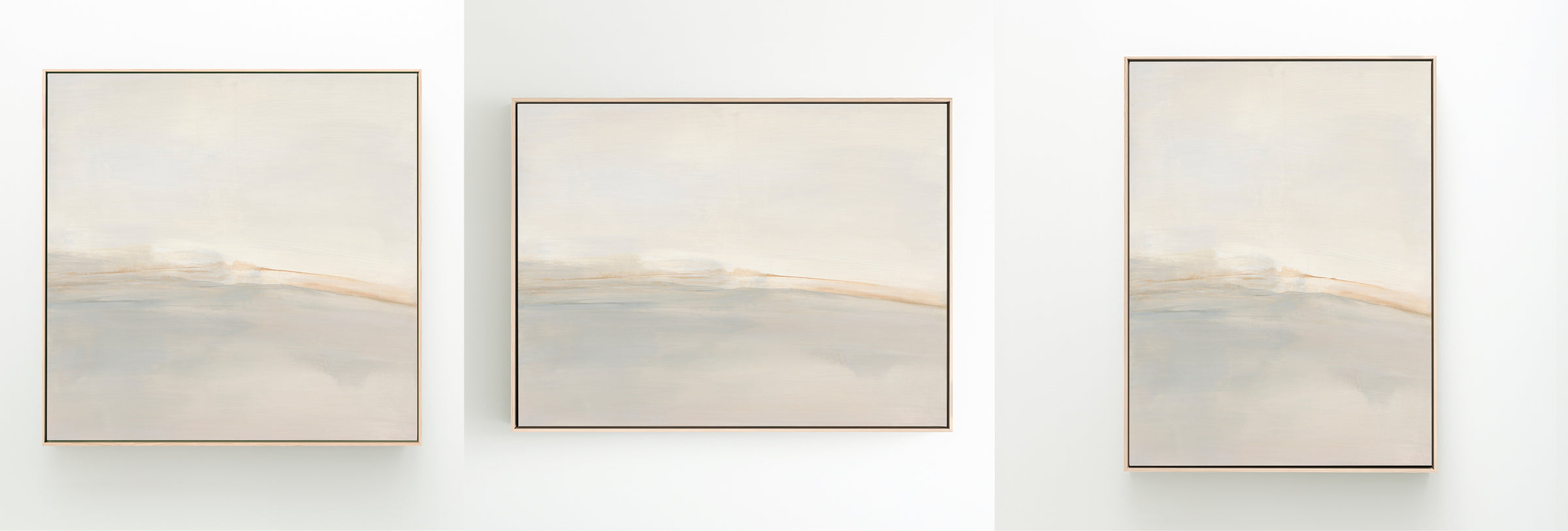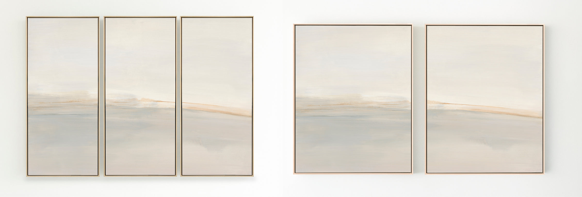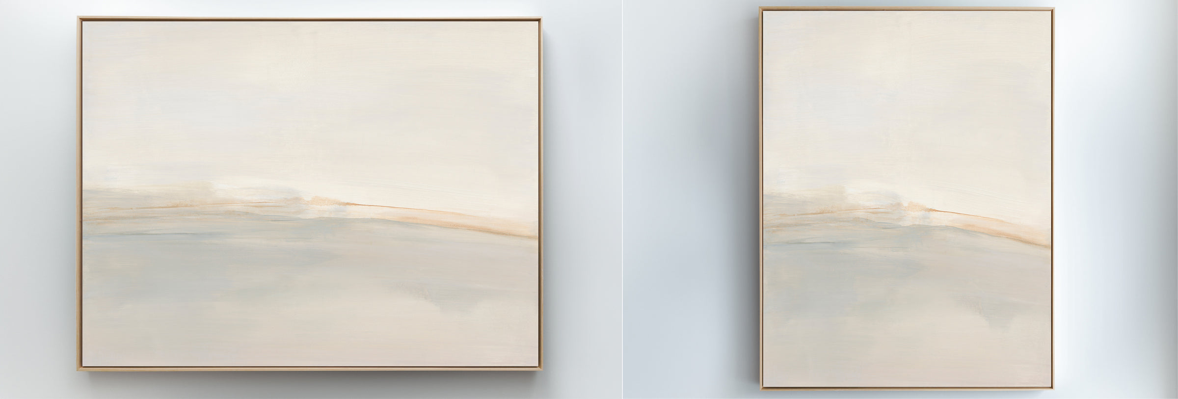 An expansive landscape in soft desert inspired hues, The Endless Horizon Collection offers the wide range of the painting, from the original work to a selection of reproduction options. The Canvas Basics format the work in square, horizontal, and vertical canvases. The Large Canvases offer our most impactful sizes. The Canvas Sets extend the painting across multiple canvases as a diptych or triptych. The Narrow Canvas is a great solution for hard to fill spaces, available in a range of sizes. Additional sizing is available as a hand-finished and signed mixed media canvas.