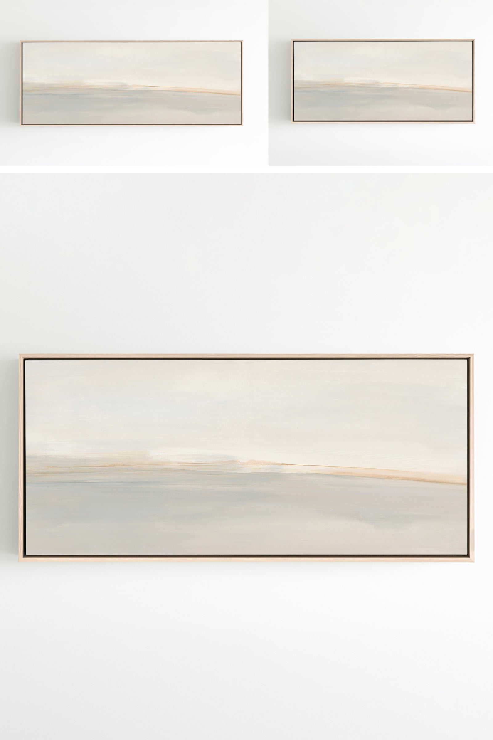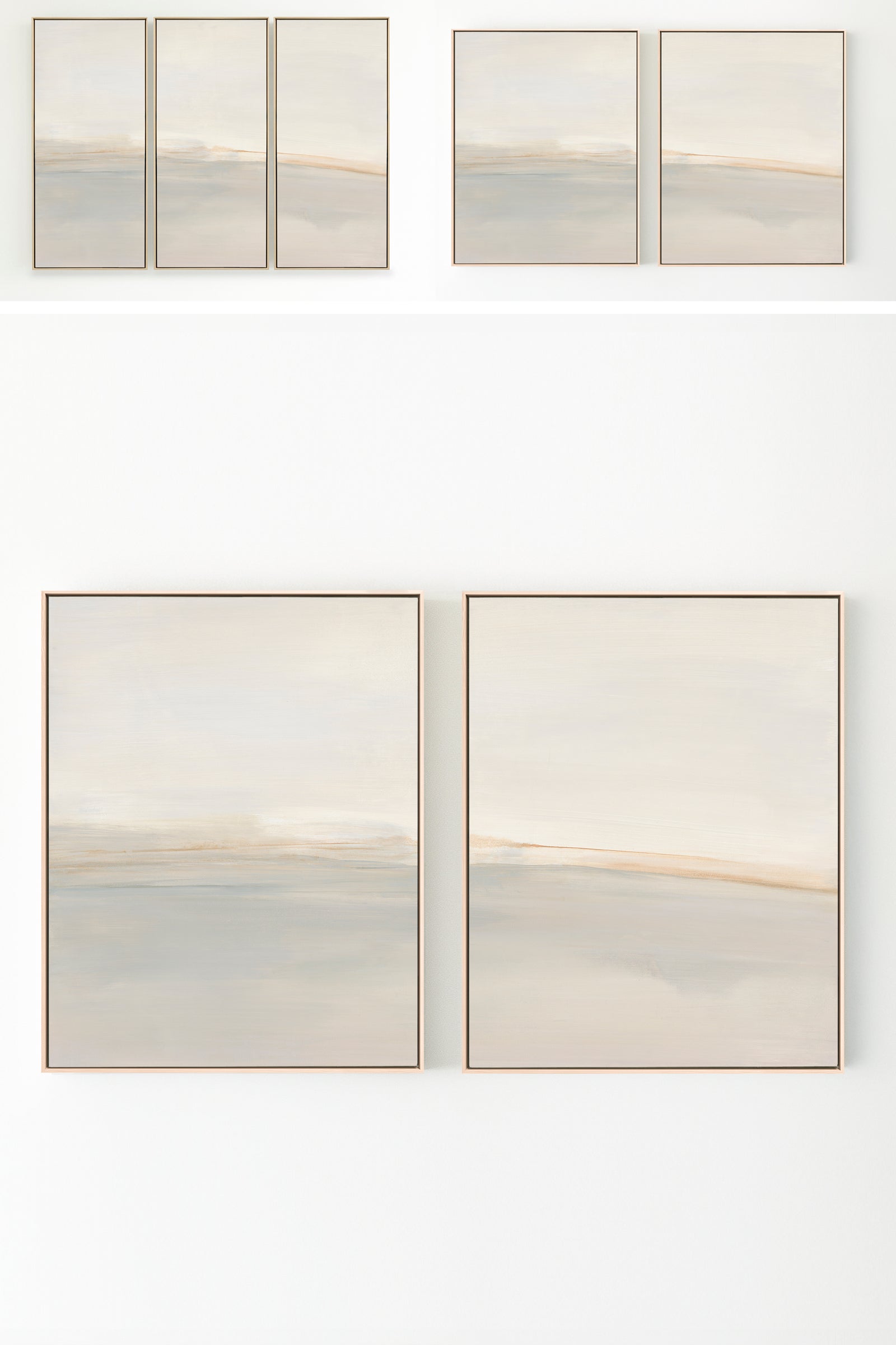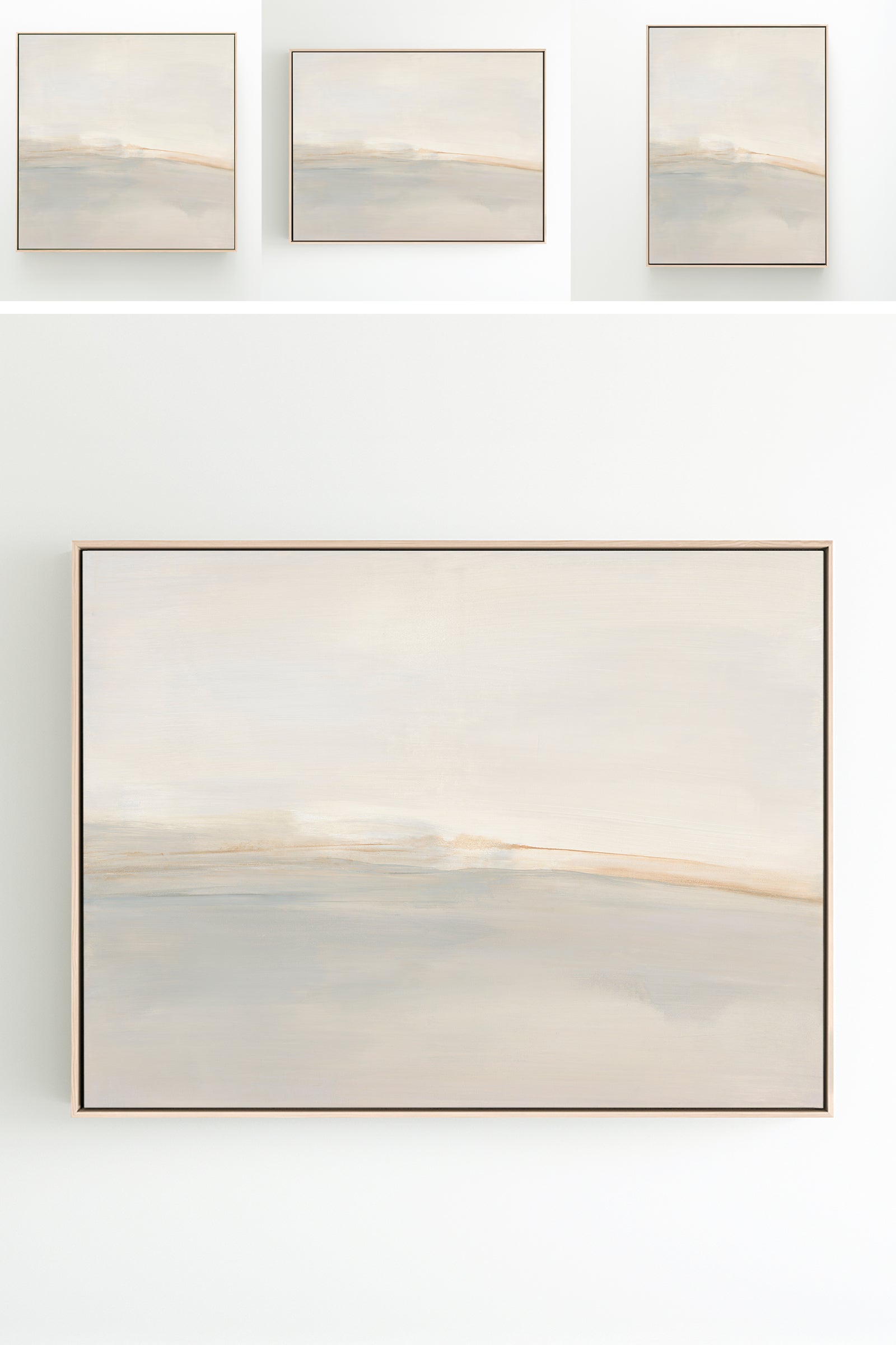 An expansive landscape in soft desert inspired hues, The Endless Horizon Collection offers the wide range of the painting, from the original work to a selection of reproduction options. The Canvas Basics format the work in square, horizontal, and vertical canvases. The Large Canvases offer our most impactful sizes. The Canvas Sets extend the painting across multiple canvases as a diptych or triptych. The Narrow Canvas is a great solution for hard to fill spaces, available in a range of sizes. Additional sizing is available as a hand-finished and signed mixed media canvas.
