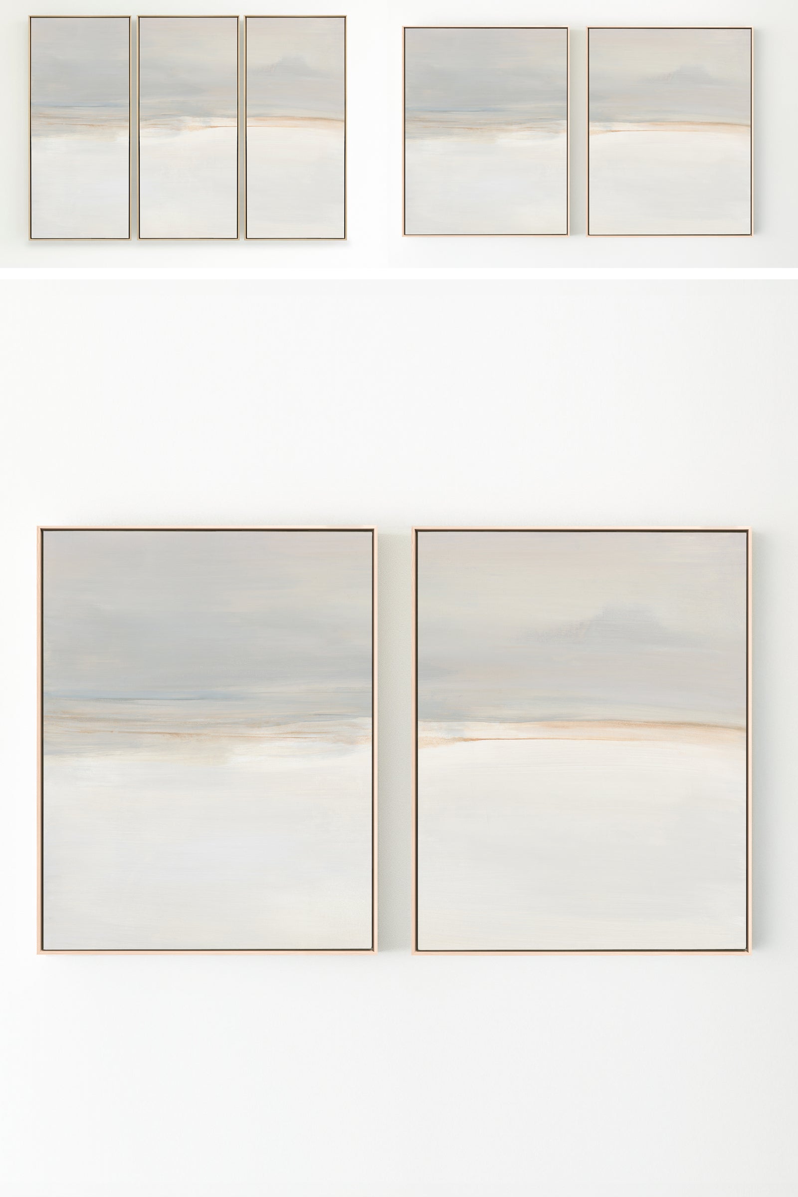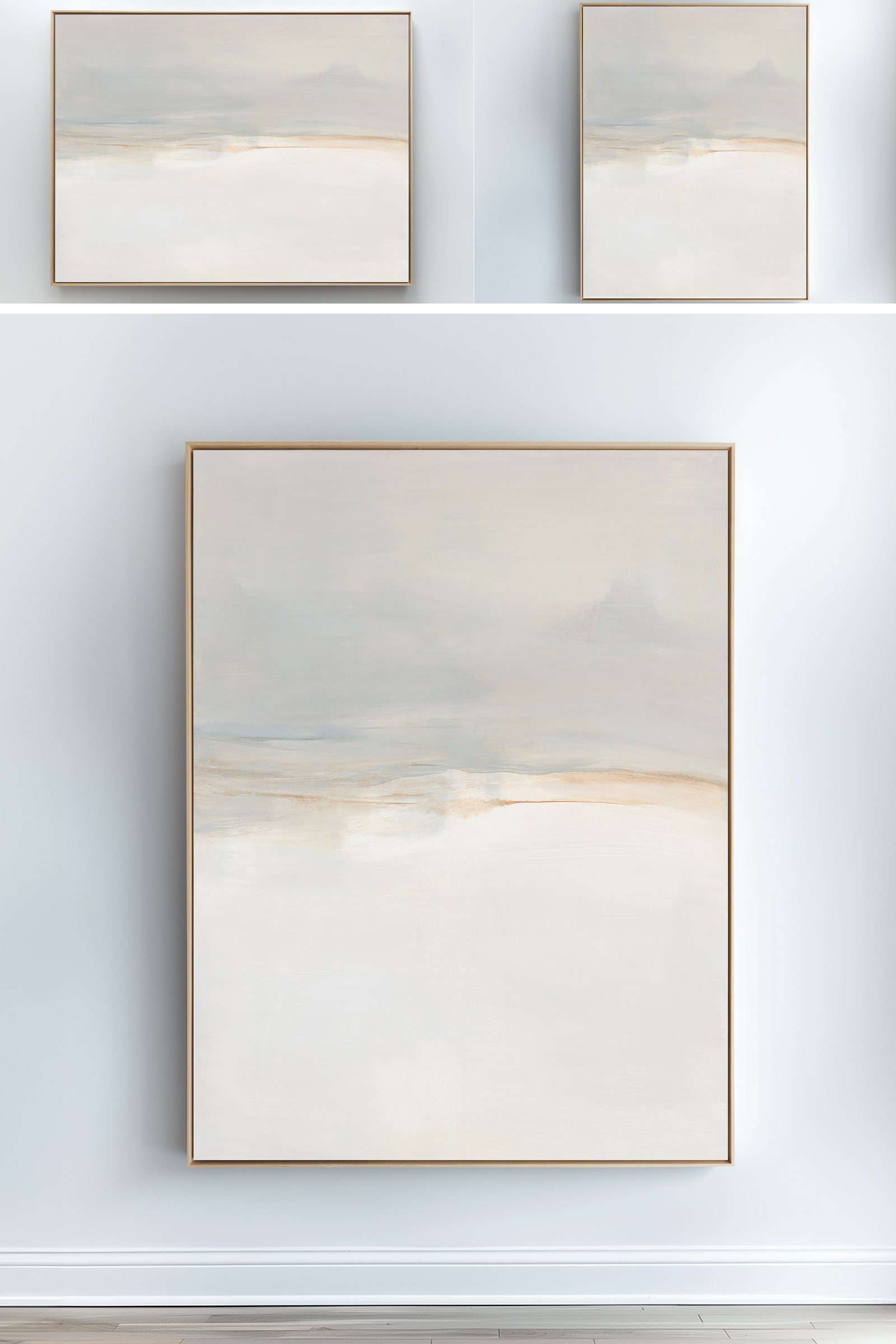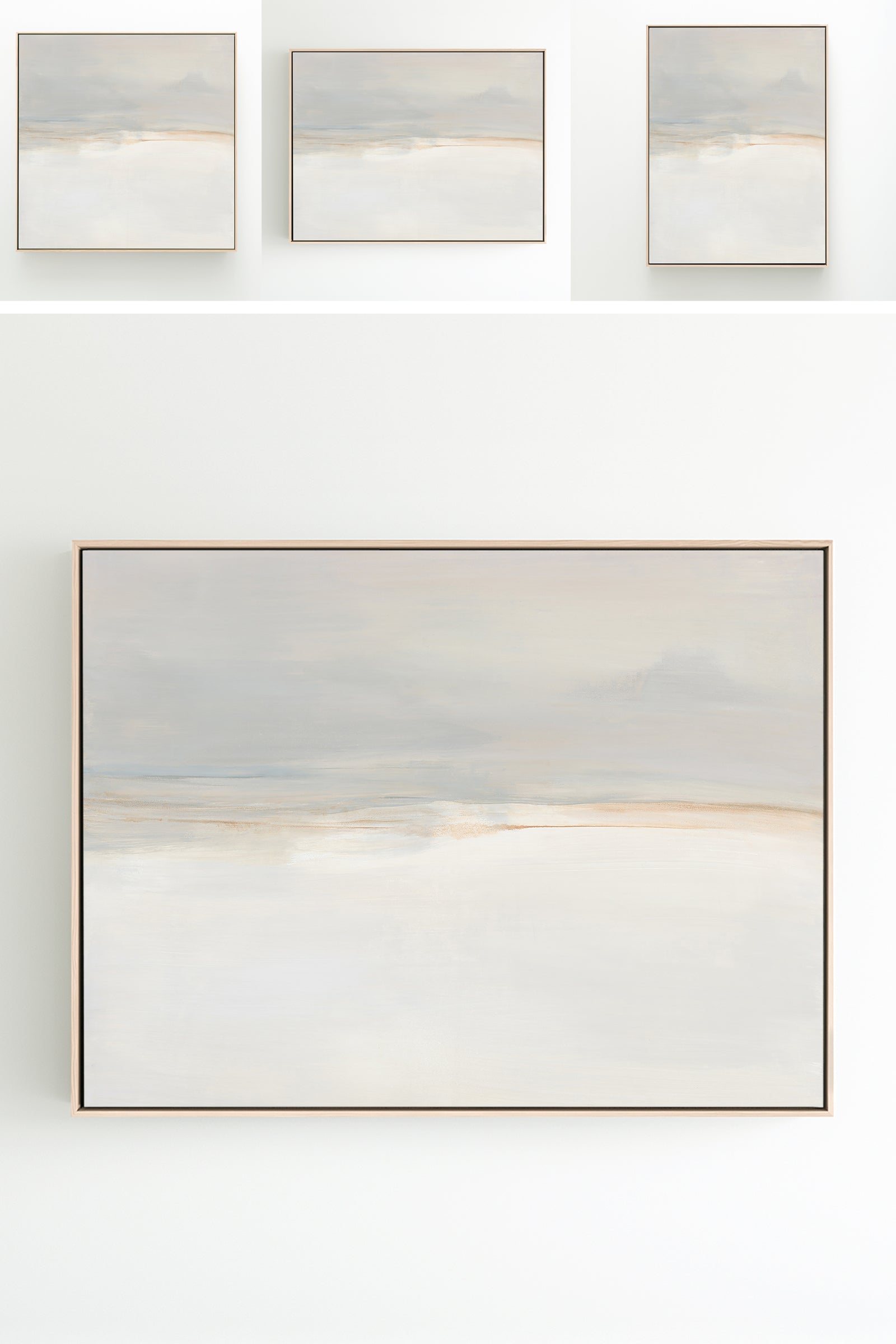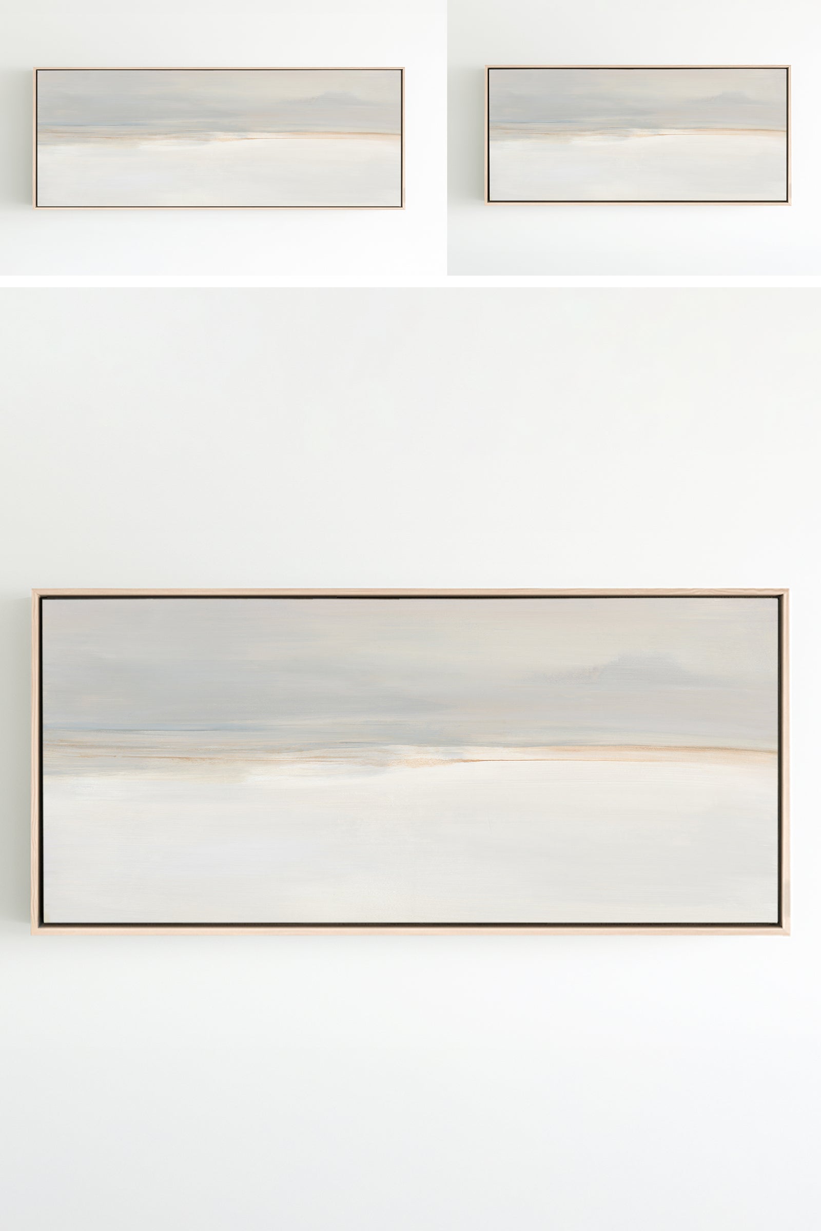 Companion to Endless Horizon, the expansive landscape is inverted to reveal an alternative focus. Hints of pale blue tones accent the horizon. Blues and whites create dramatic contrast within the horizon. The Endless Sky Collection offers the work in various forms. The Canvas Basics format the work in square, horizontal, and vertical canvases. The Large Canvases offer our most impactful sizes. The Canvas Sets extend the painting across multiple canvases as a diptych or triptych. The Narrow Canvas is a great solution for hard to fill spaces, available in a range of sizes. Additional sizing is available as a hand-finished and signed mixed media canvas.