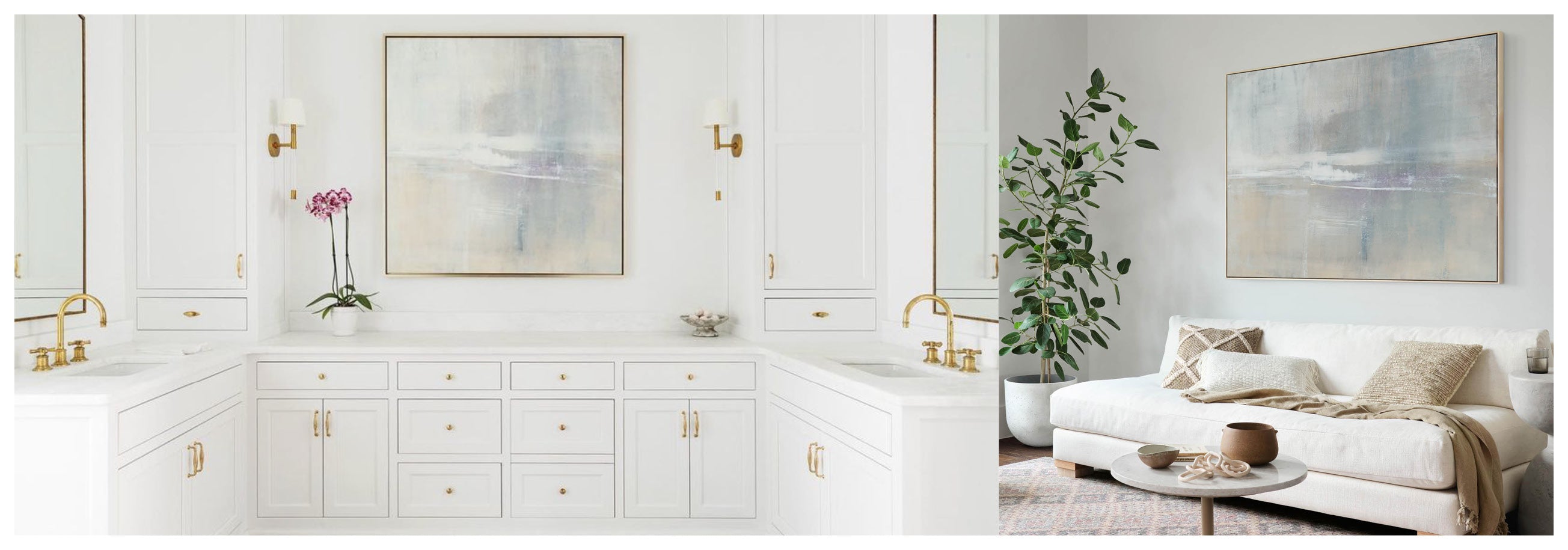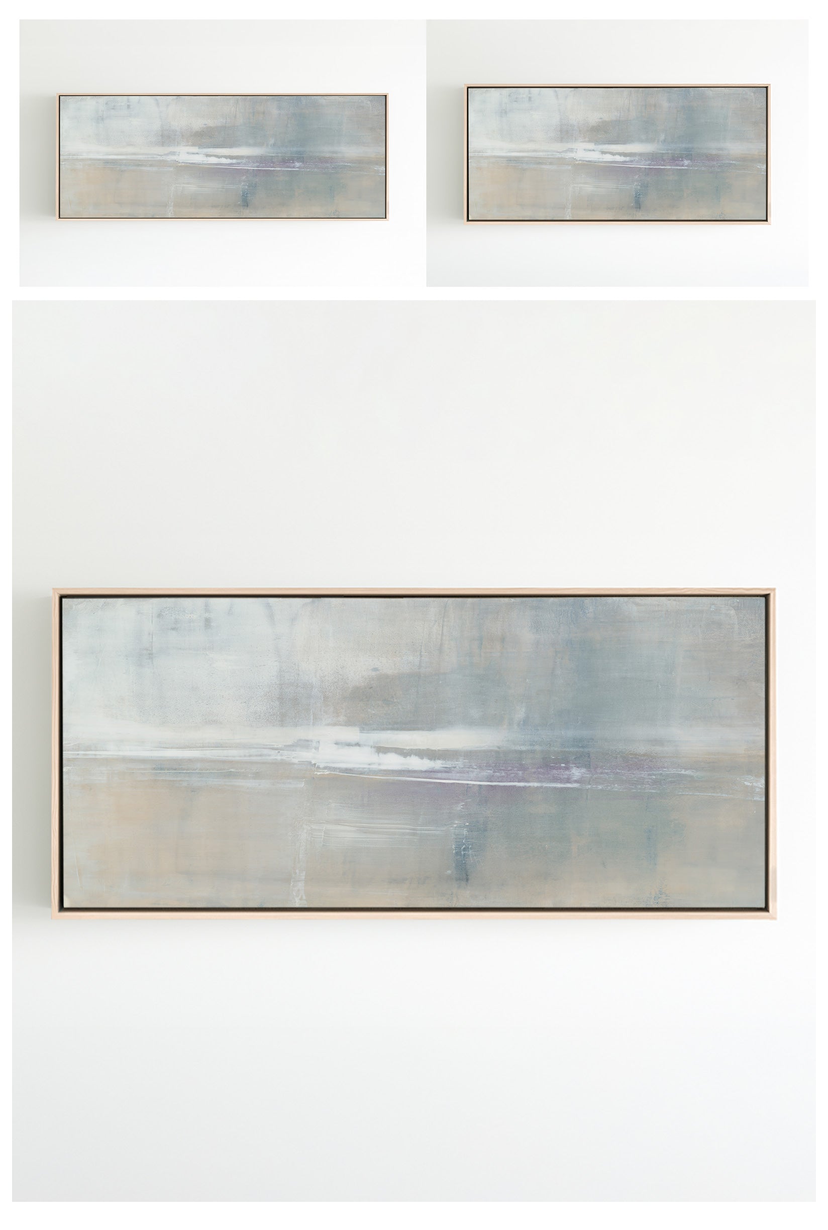 Inspired by the high desert canyons of the Southwest. Escalante is layered in movement, washed in earthy tones with a hint of charcoal and lavender. The Escalante Collection offers the wide range of the painting, from the original work on clay board, to a selection of reproduction options. The Canvas Basics format the work in square, horizontal, and vertical canvases. The Large Canvases offer our most impactful sizes. The Canvas Sets extend the painting across multiple canvases as a diptych or triptych. The Narrow Canvas is a great solution for hard to fill spaces, available in a range of sizes. Additional sizing is available as a hand-finished and signed mixed media canvas.
