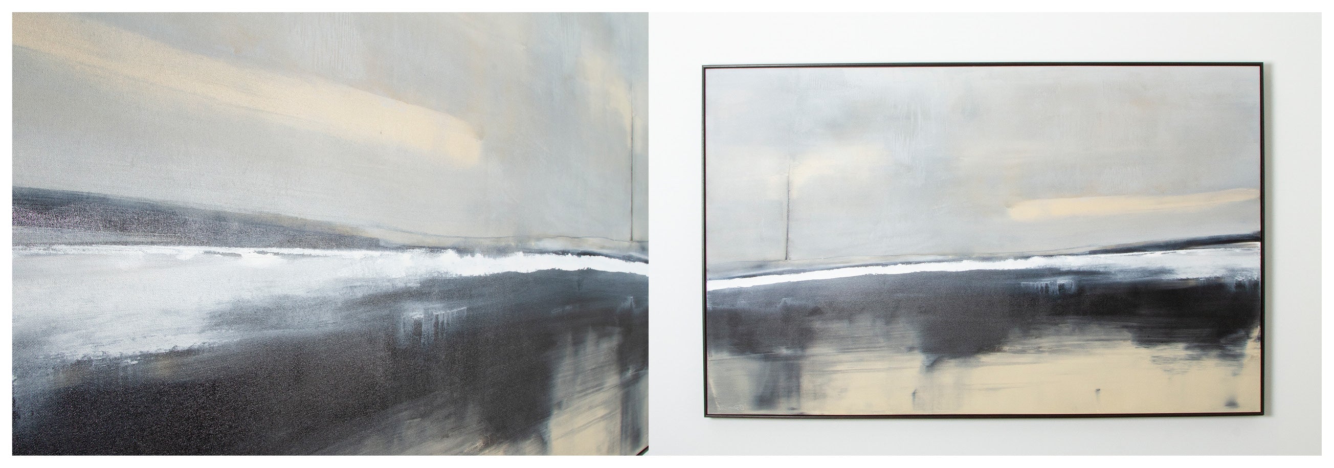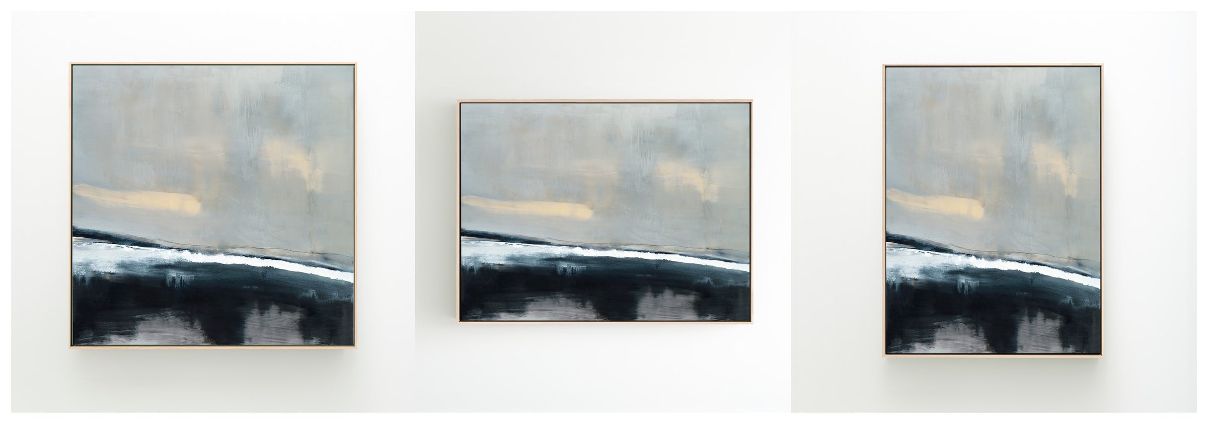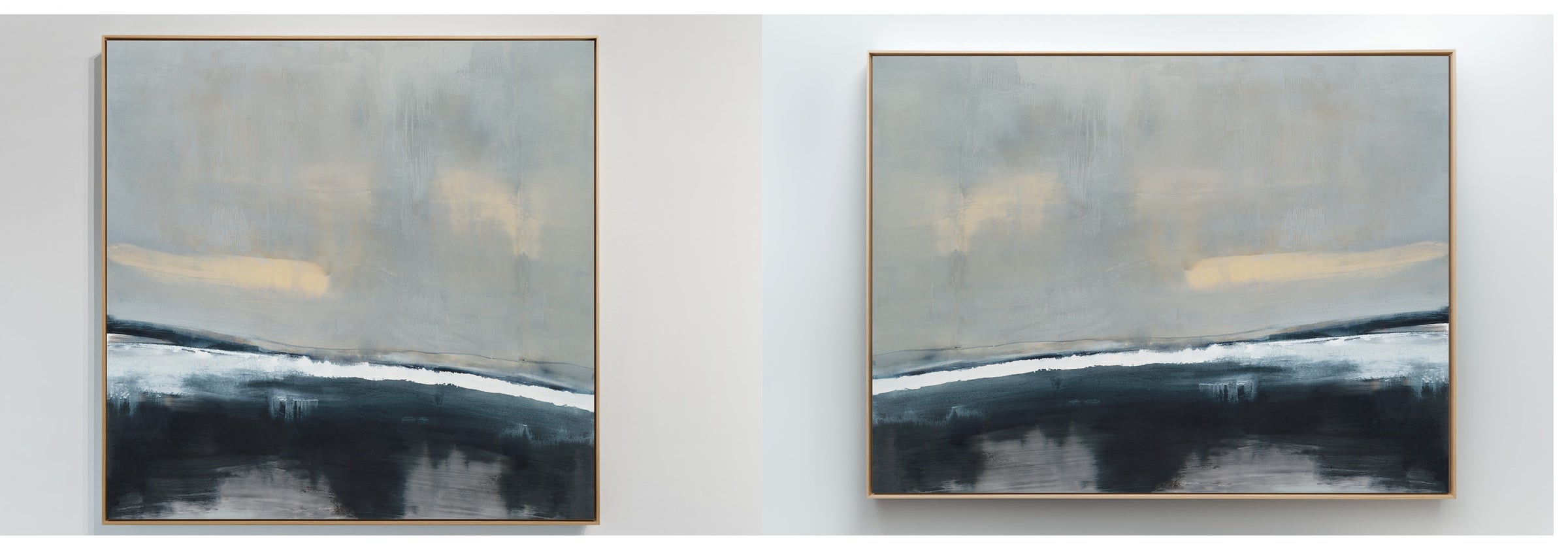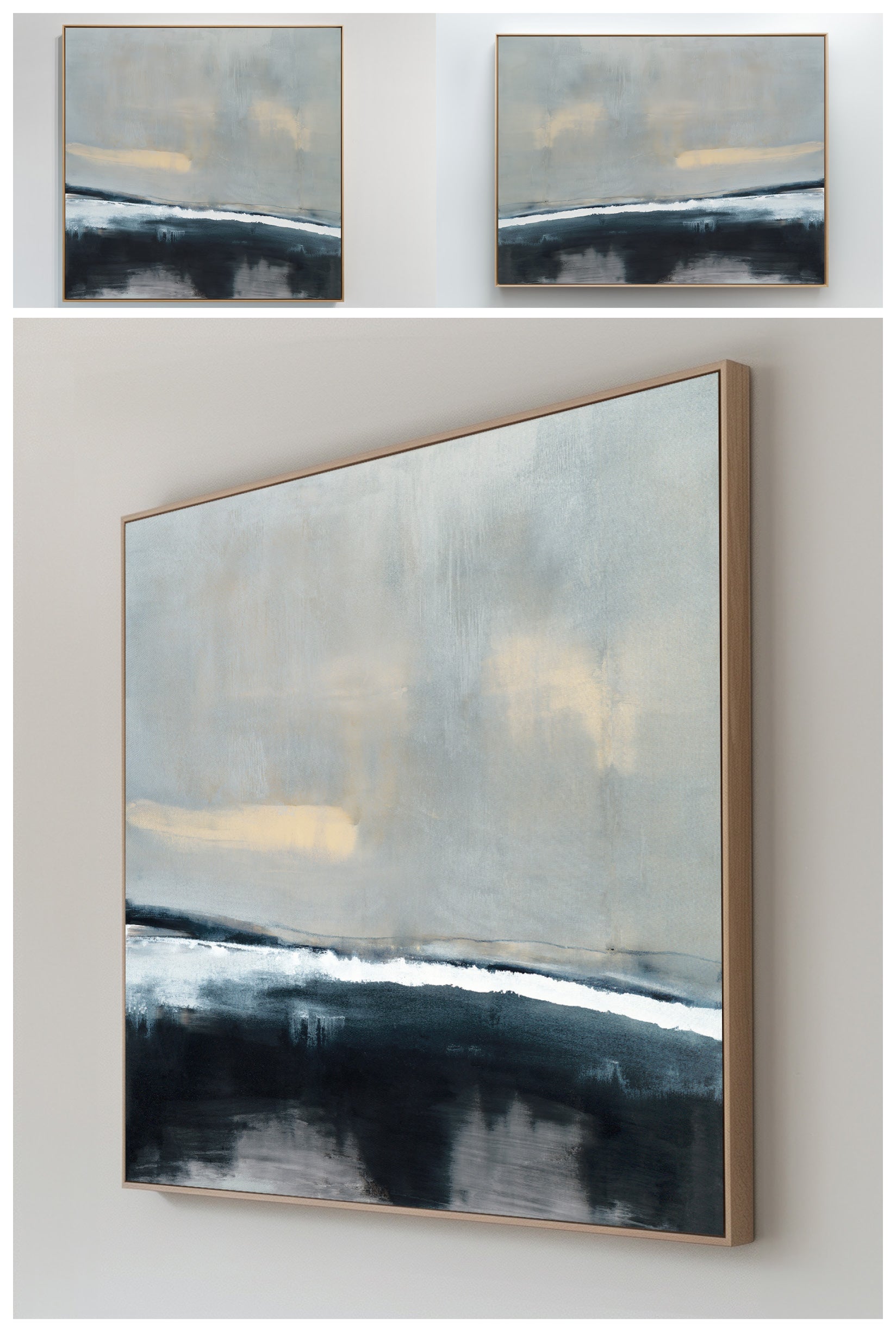A nuance of the original painting, the soft gray version was released in 2022. The abstract landscape is bold and dramatic. The Collection offers the work in many forms, including the original canvas. Reproductions are offered in several formats.  The Canvas Basics format the work in square, horizontal, and vertical canvases. The Large Canvases offer our most impactful sizes. The Canvas Sets extend the painting across multiple canvases as a diptych or triptych. The Narrow Canvas is a great solution for hard to fill spaces, available in a range of sizes. Additional sizing is available as a hand-finished and signed mixed media canvas.