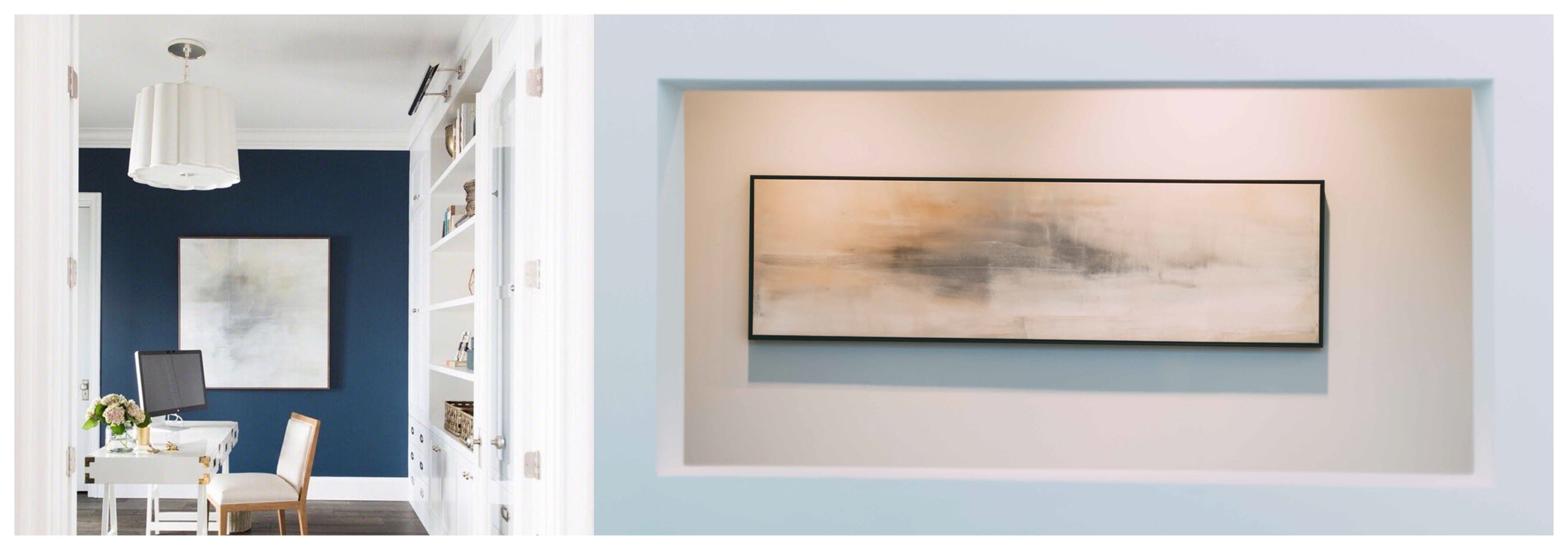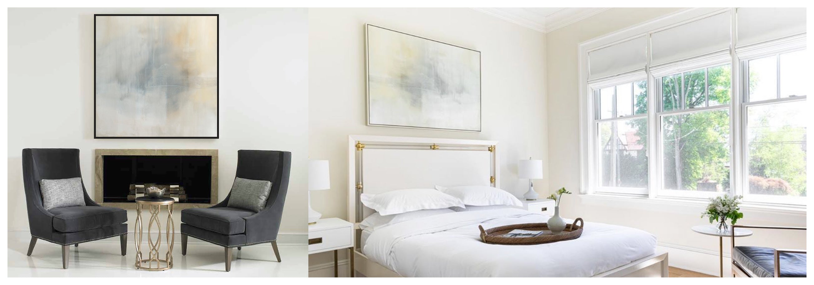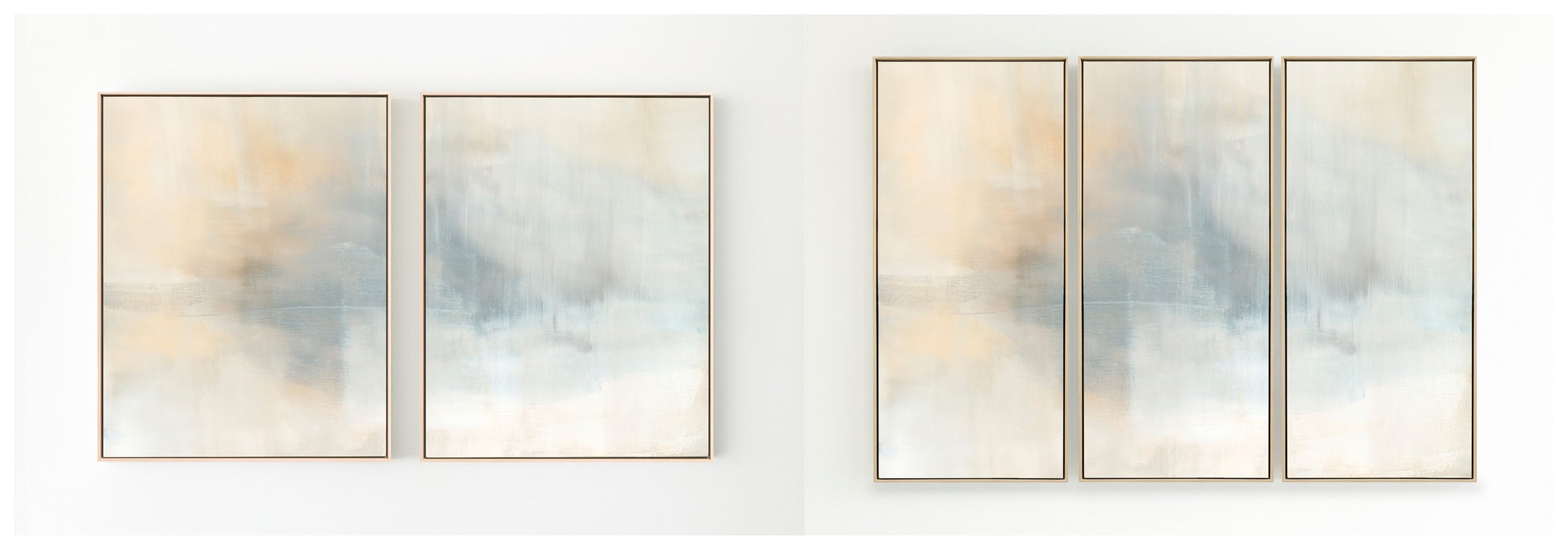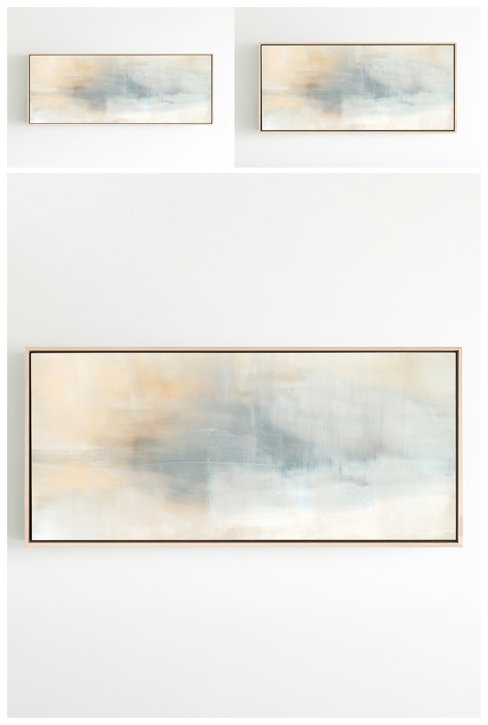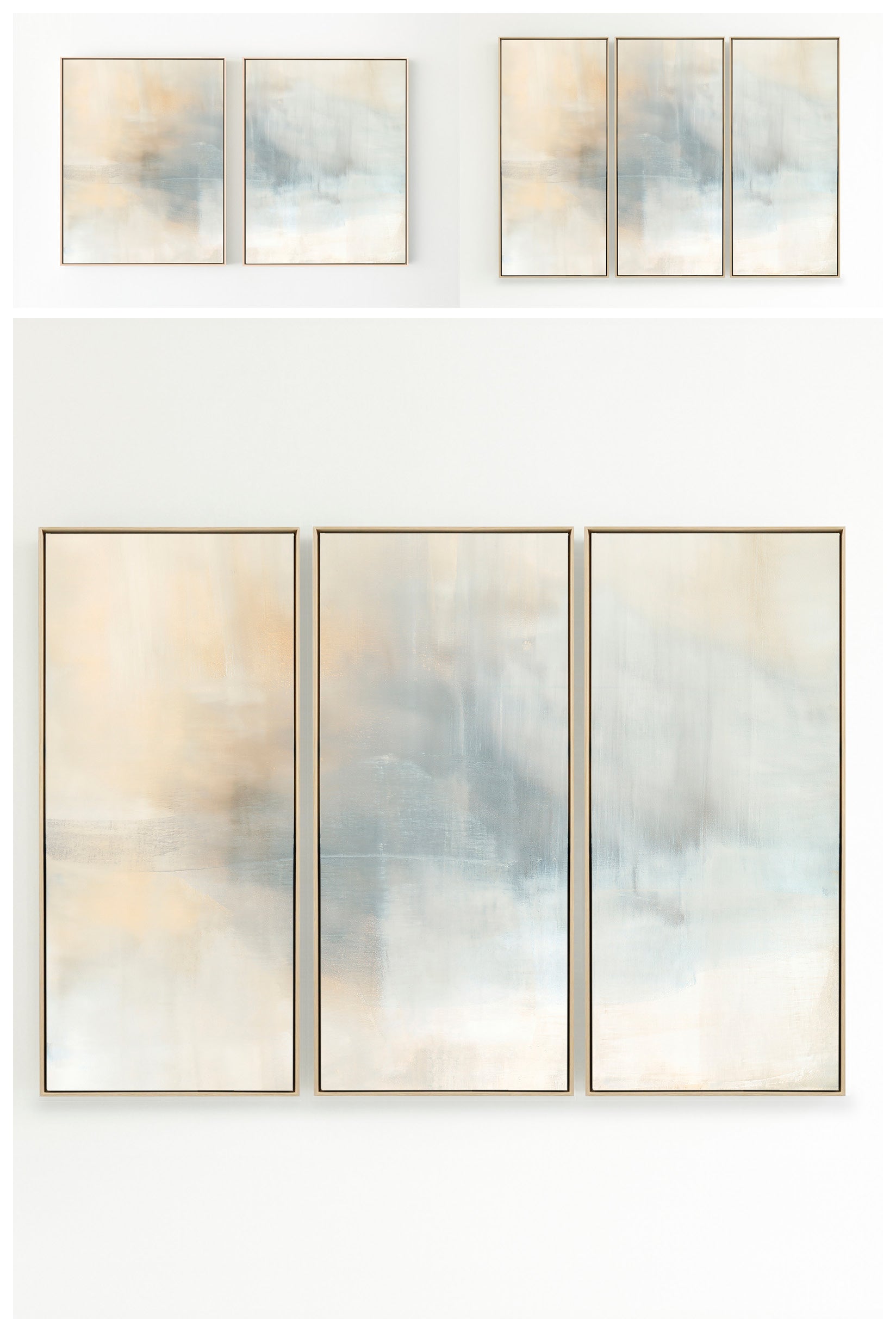 Ethereal movement reflects light in soft grays, taupes, and buttery creams. The Innuendo No.3 Collection offers the work in many forms as a reproduction. The Canvas Basics format the work in square, horizontal, and vertical canvases. The Large Canvases offer our most impactful sizes. The Canvas Sets extend the painting across multiple canvases as a diptych or triptych. The Narrow Canvas is a great solution for hard to fill spaces, available in a range of sizes. Additional sizing is available as a hand-finished and signed mixed media canvas.