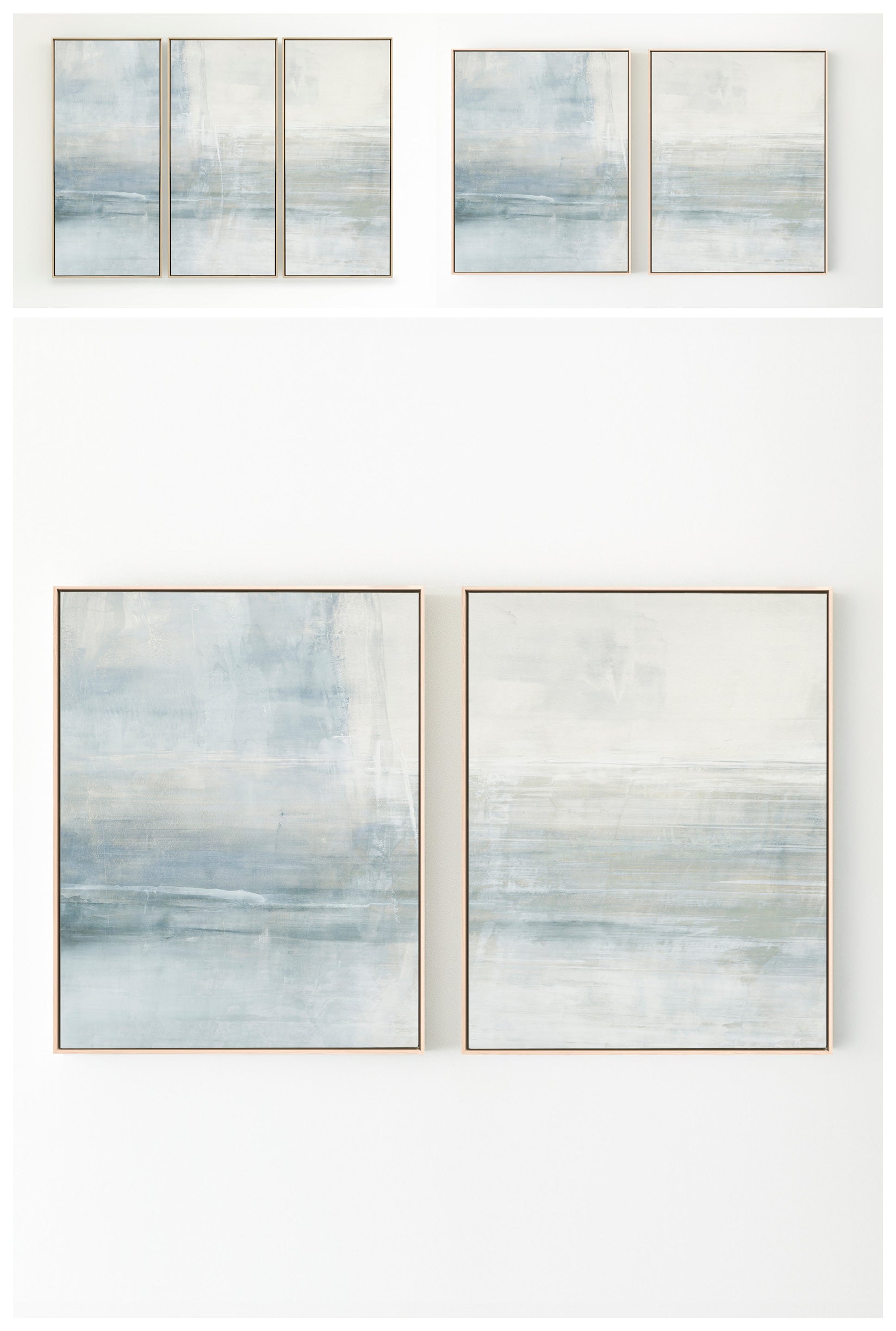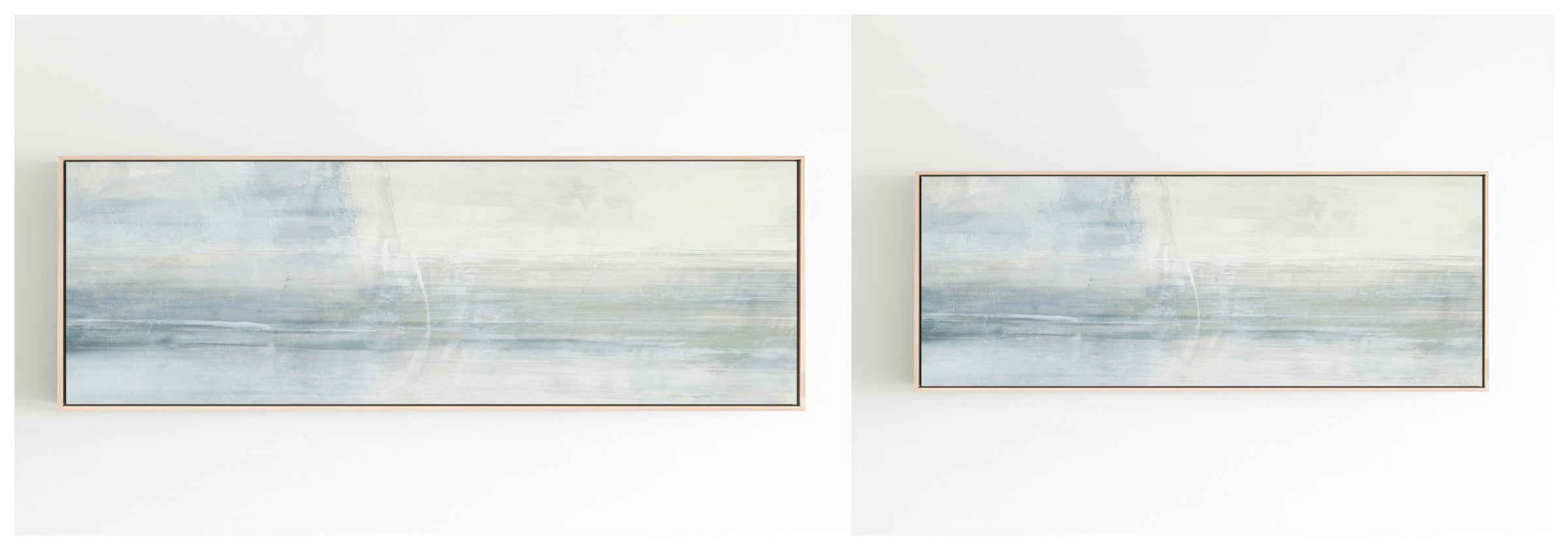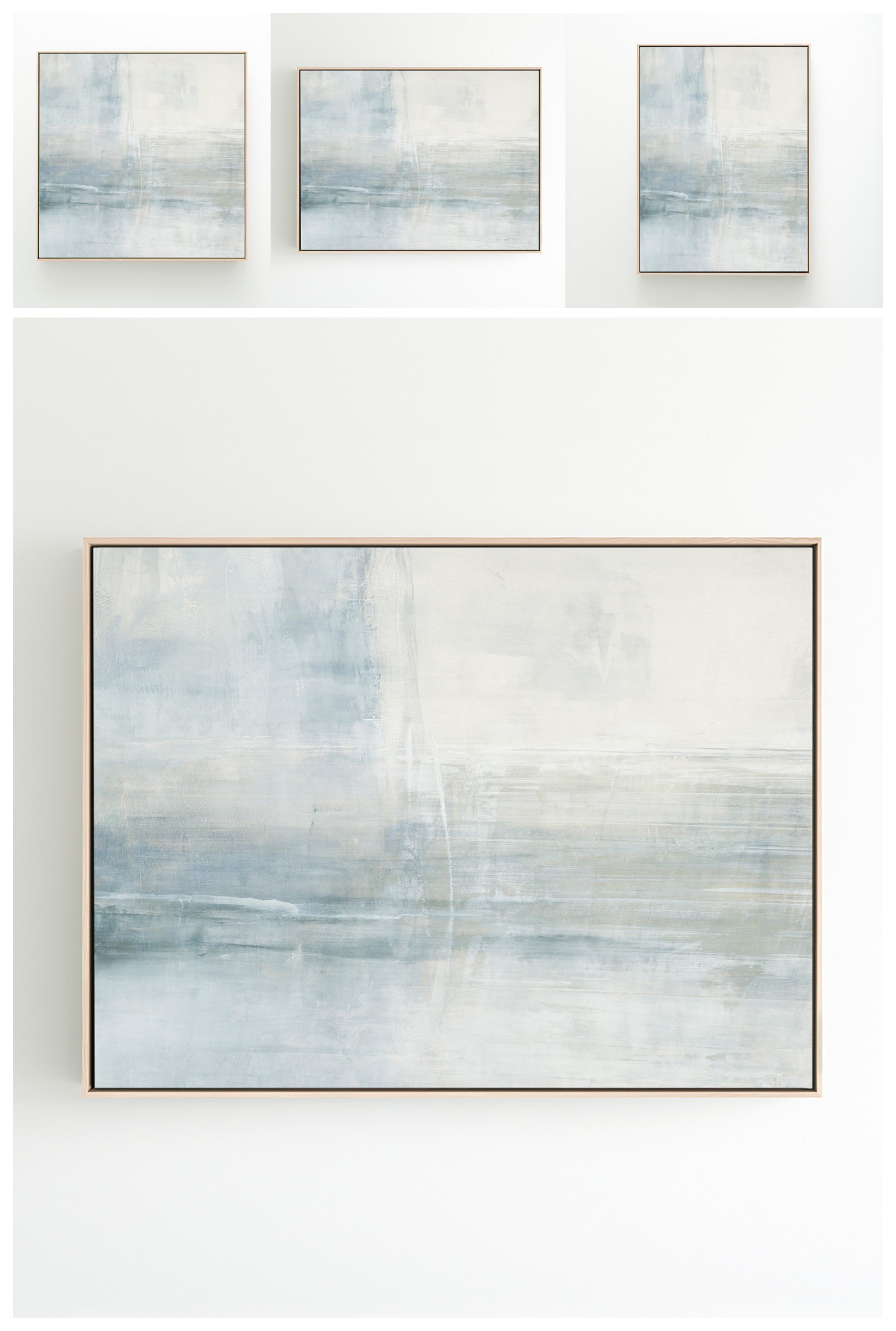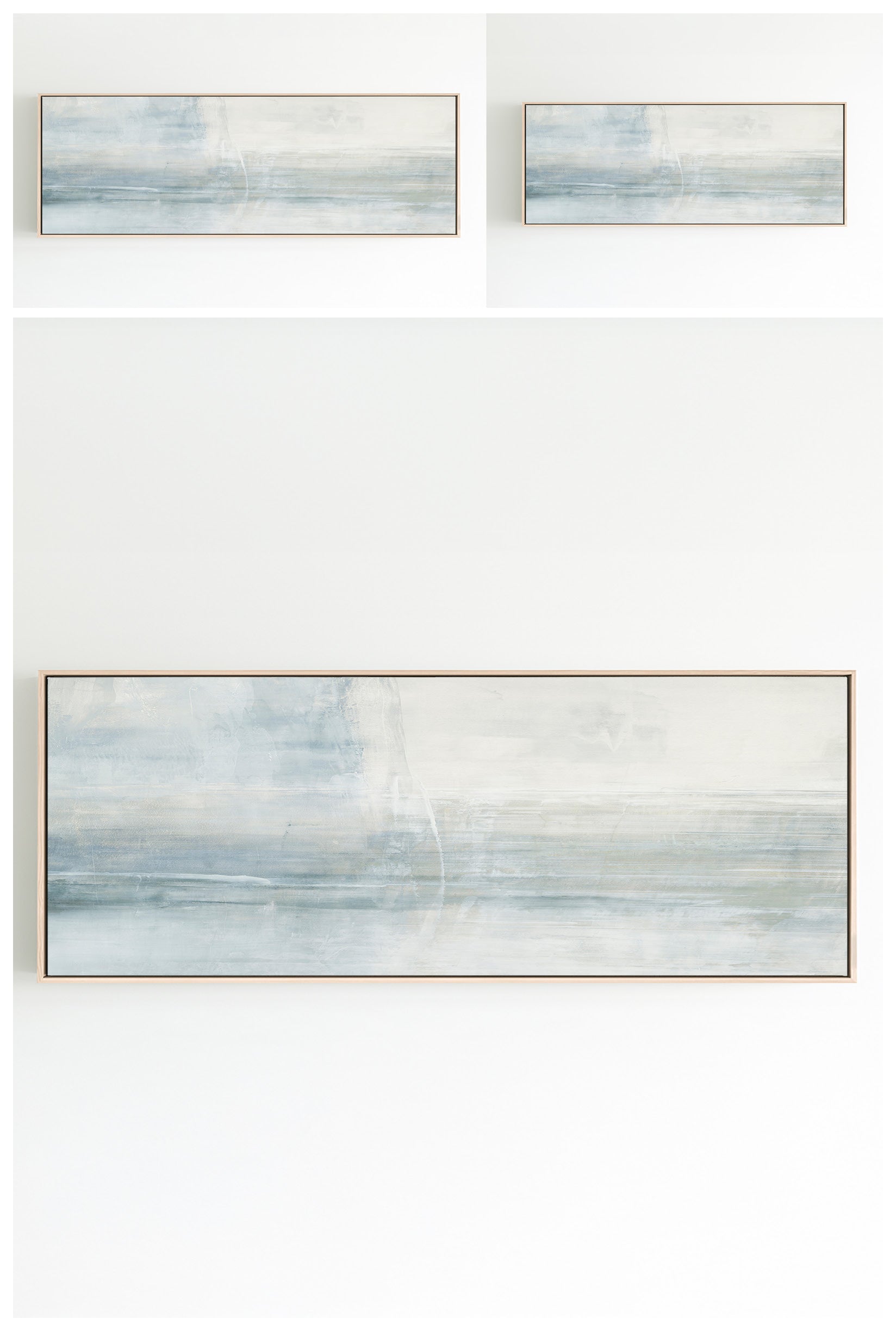 Pale creams and sage are layered with hints of blue. The combination gives the artwork a sense of lightness and movement. The Collection offers a range of options, from The Canvas Basics, formatting the work in square, horizontal, and vertical canvases. to the The Canvas Sets, extending the painting across multiple canvases as a diptych or triptych. Intuition is also available in our Narrow Canvases, offering a great solution for hard to fill spaces. Additional sizing is available as a hand-finished and signed mixed media canvas.