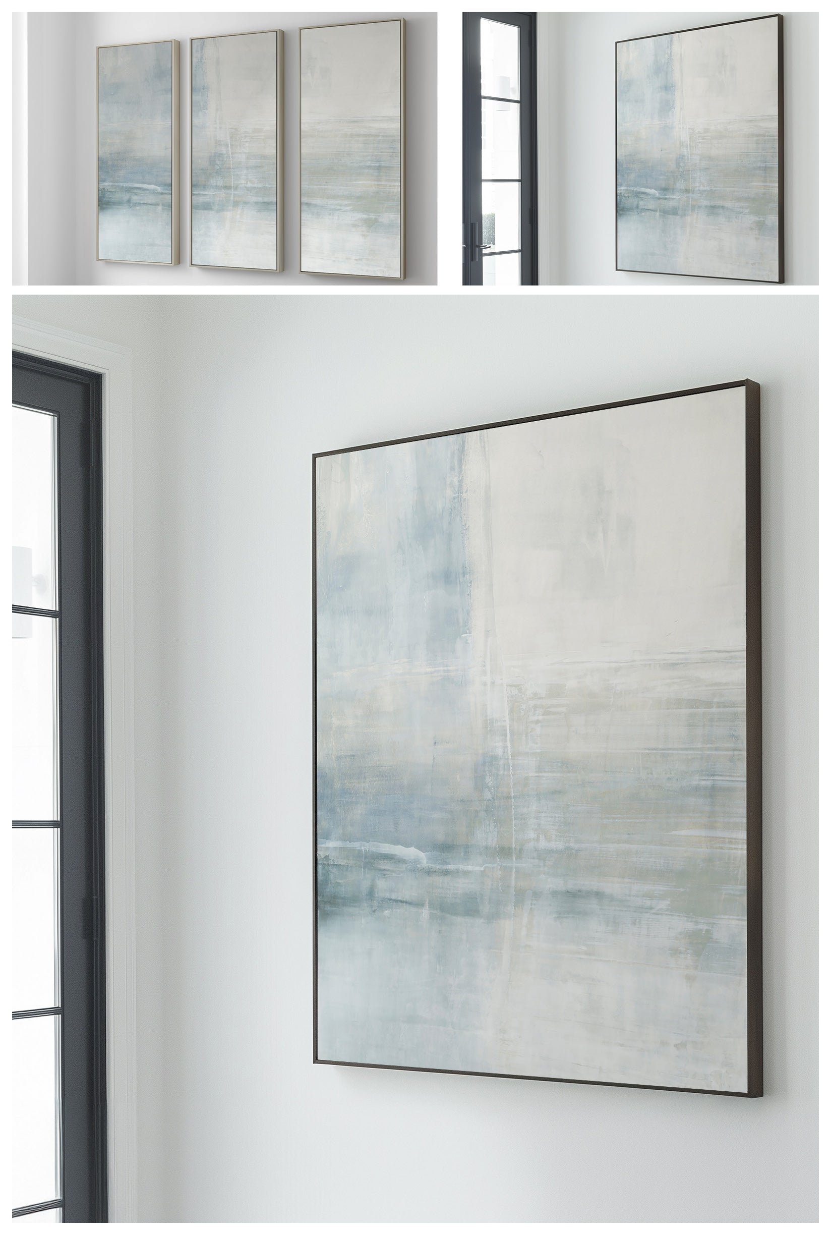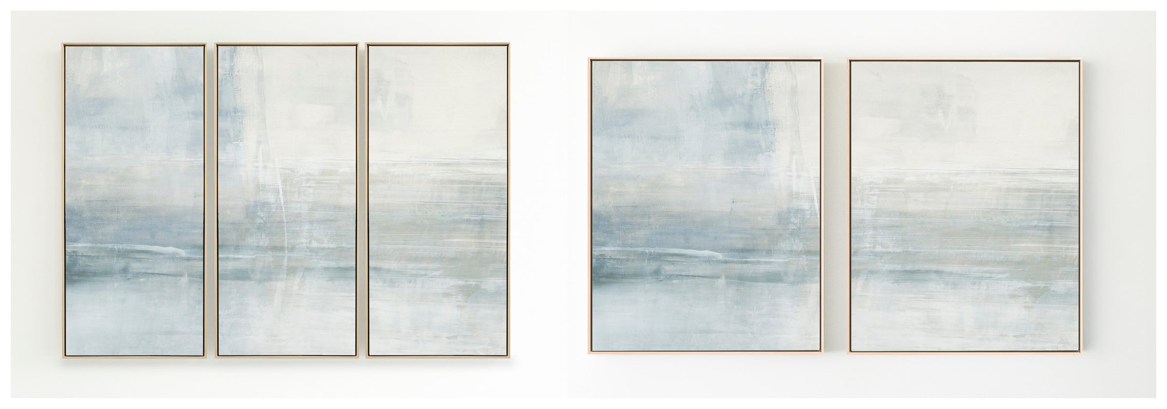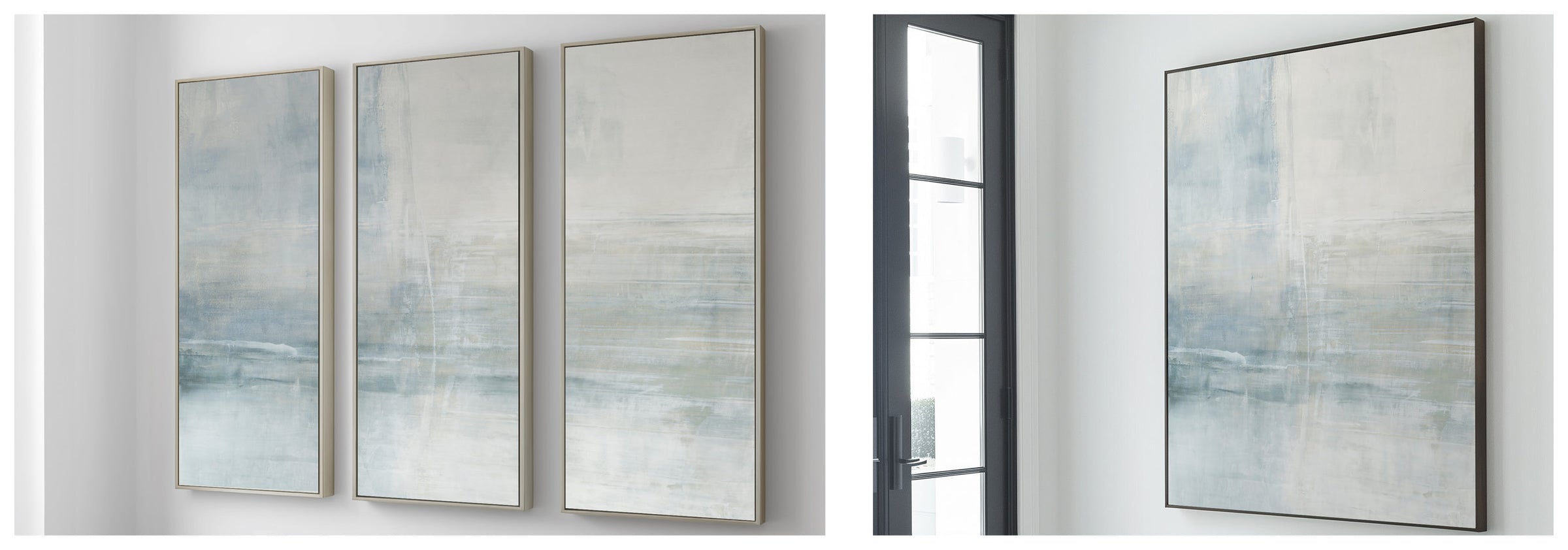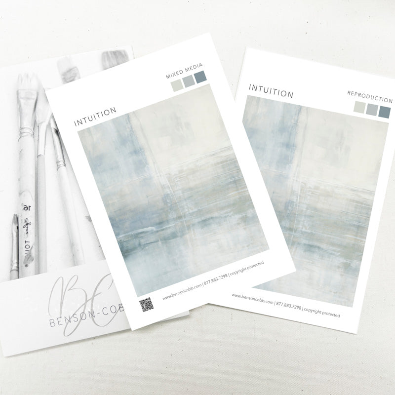 Pale creams and sage are layered with hints of blue. The combination gives the artwork a sense of lightness and movement. The Collection offers a range of options, from The Canvas Basics, formatting the work in square, horizontal, and vertical canvases. to the The Canvas Sets, extending the painting across multiple canvases as a diptych or triptych. Intuition is also available in our Narrow Canvases, offering a great solution for hard to fill spaces. Additional sizing is available as a hand-finished and signed mixed media canvas.
