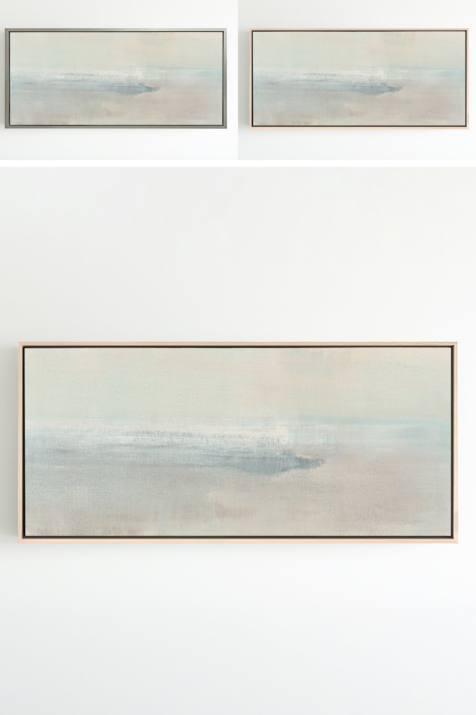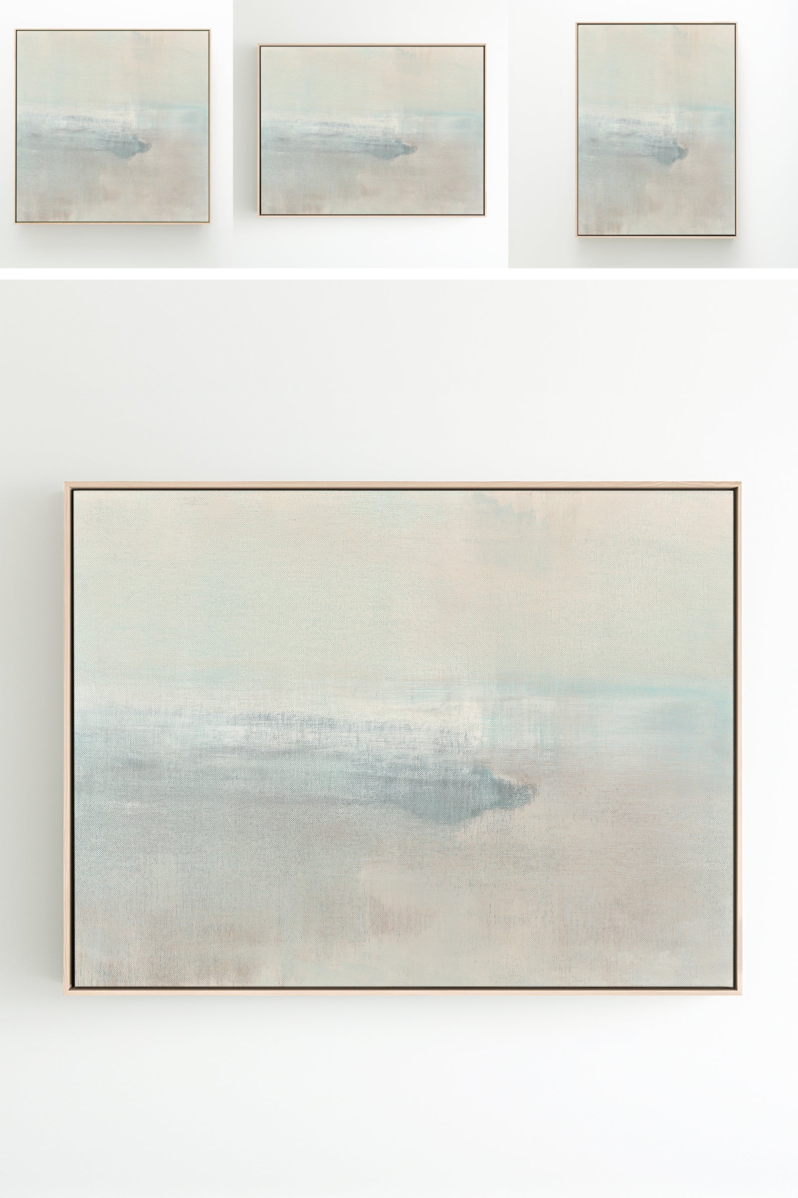 Earthy tones reminiscent of desert vistas, this painting comes in several forms, from the original canvas painting, to reproductions in a range of small to medium sizes. The Canvas Basics format the work in square, horizontal, and vertical canvases. The Narrow Canvas options are ideal for smaller spaces. Additional sizing is available as a hand-finished and signed mixed media canvas.