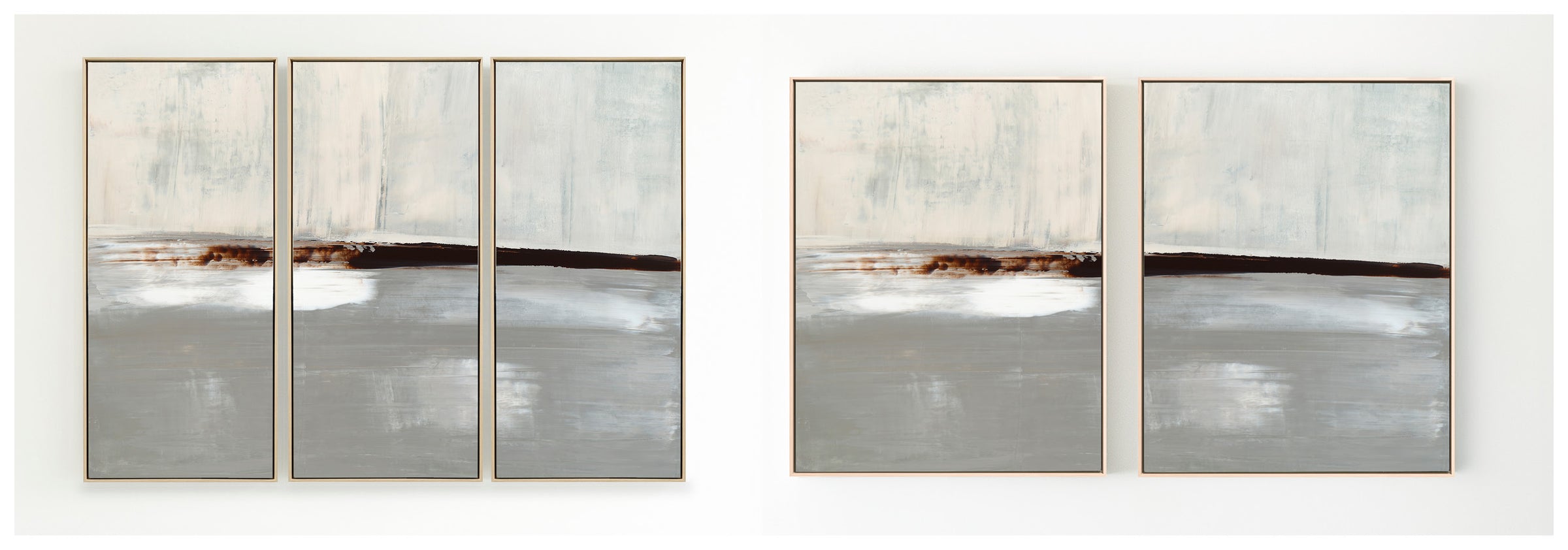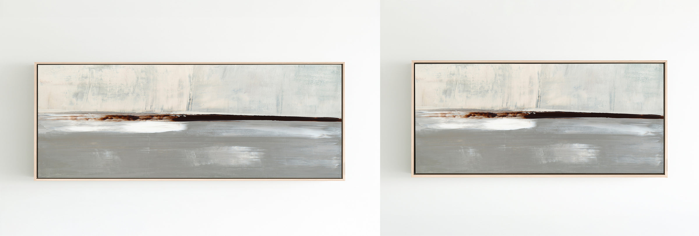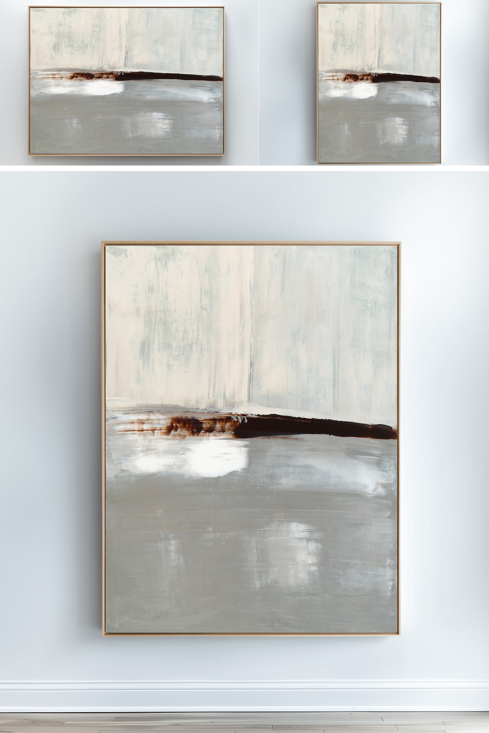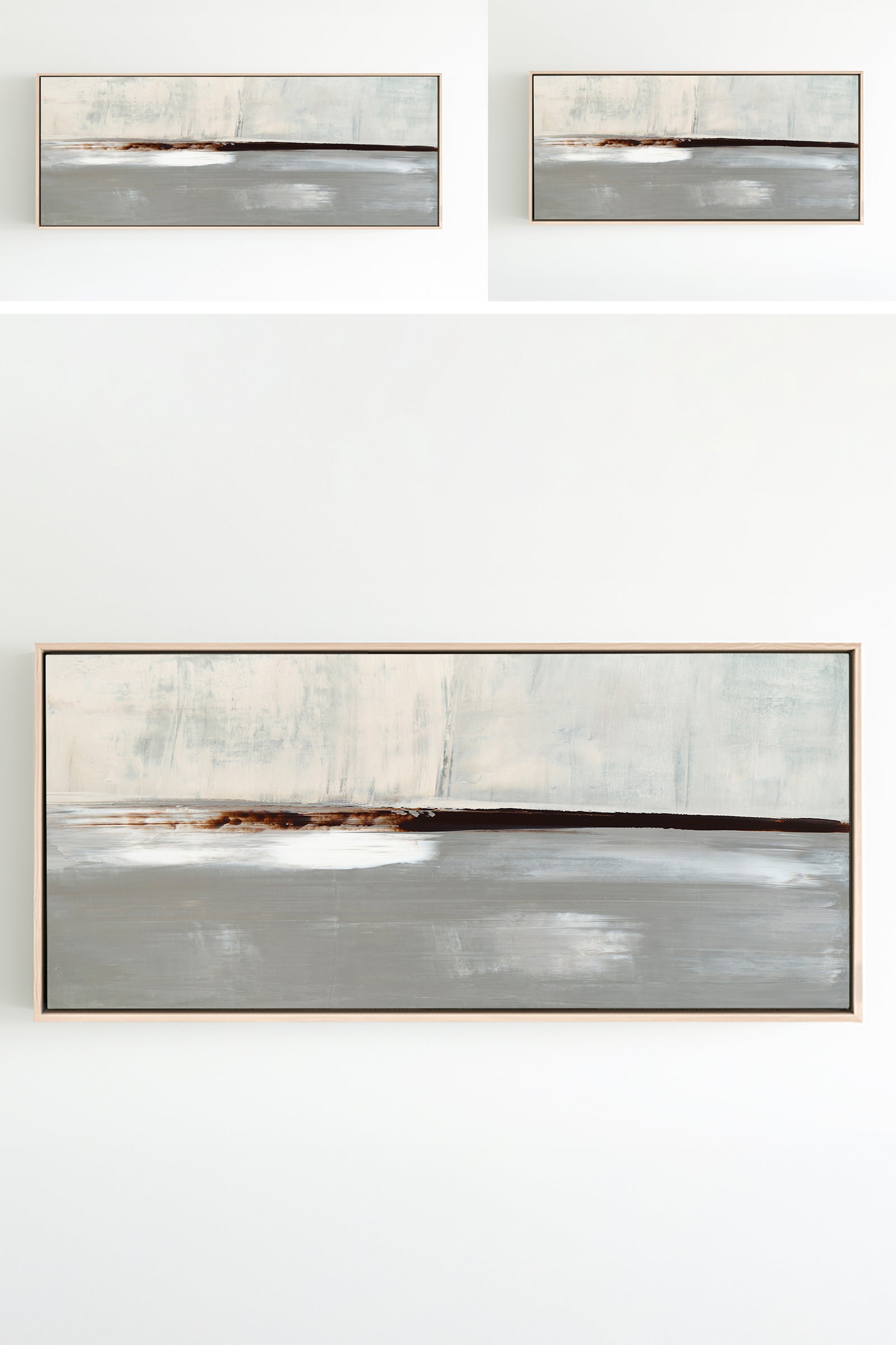Layered in deep umber, crisp whites and icy grays, The Landscape No.1 Collection offers the work in many forms from the original painting to reproductions in several options. The Canvas Basics format the work in square, horizontal, and vertical canvases. The Large Canvases offer our most impactful sizes. The Canvas Sets extend the painting across multiple canvases as a diptych or triptych. The Narrow Canvas is a great solution for hard to fill spaces, available in a range of sizes. Additional sizing is available as a hand-finished and signed mixed media canvas.