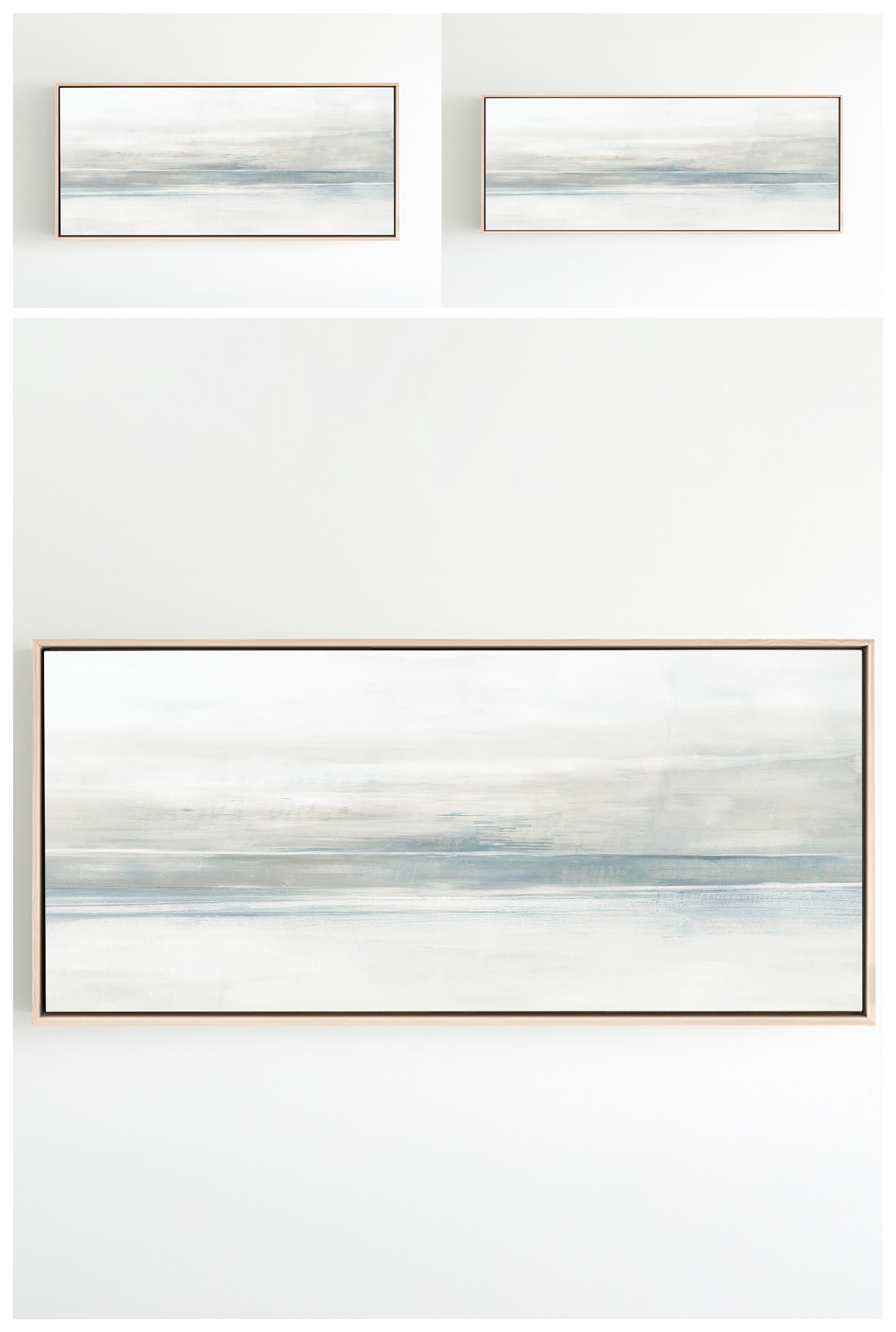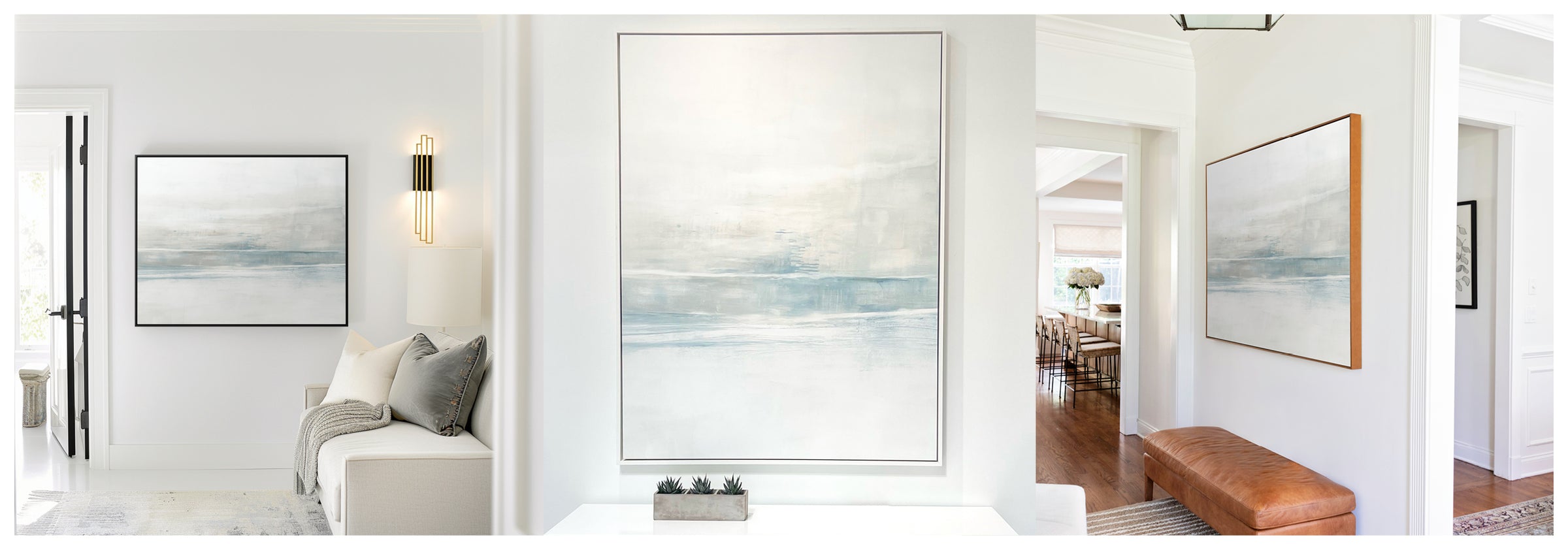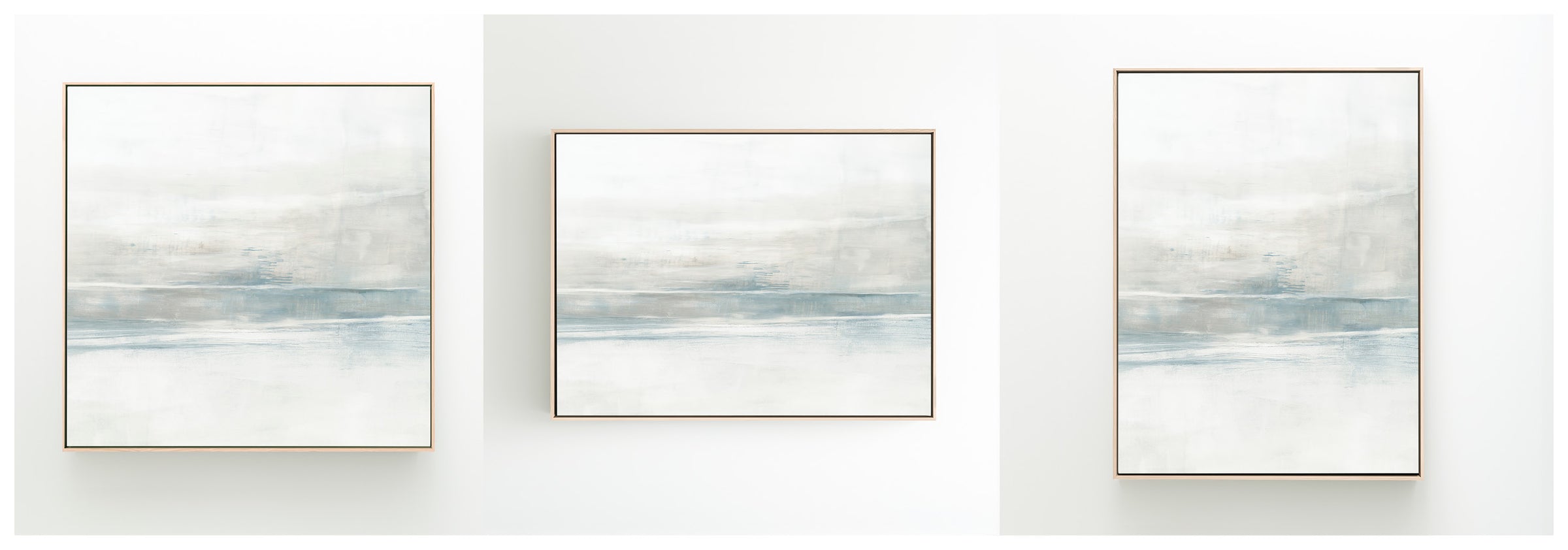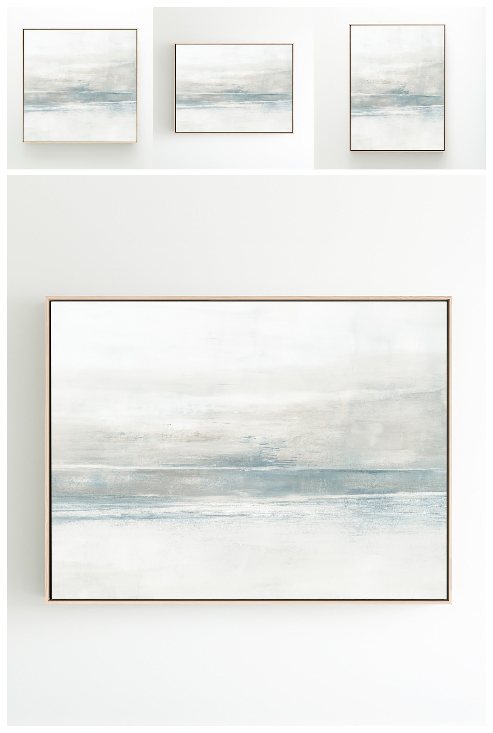 Landscape No.11 is layered with soft grays, hints of sage and steel blues. The Landscape No.11 Collection offers the work in many forms as a reproduction. The Canvas Basics format the work in square, horizontal, and vertical canvases. The Large Canvases offer our most impactful sizes. The Canvas Sets extend the painting across multiple canvases as a diptych or triptych. The Narrow Canvas is a great solution for hard to fill spaces, available in a range of sizes. Additional sizing is available as a hand-finished and signed mixed media canvas.