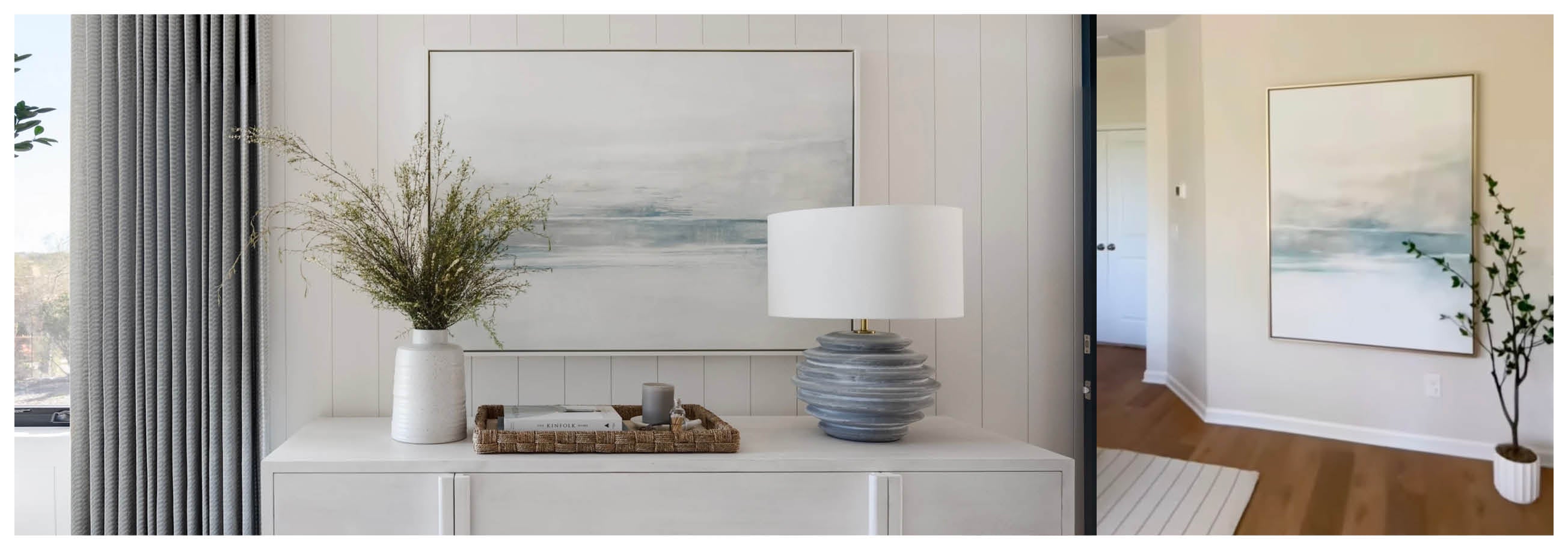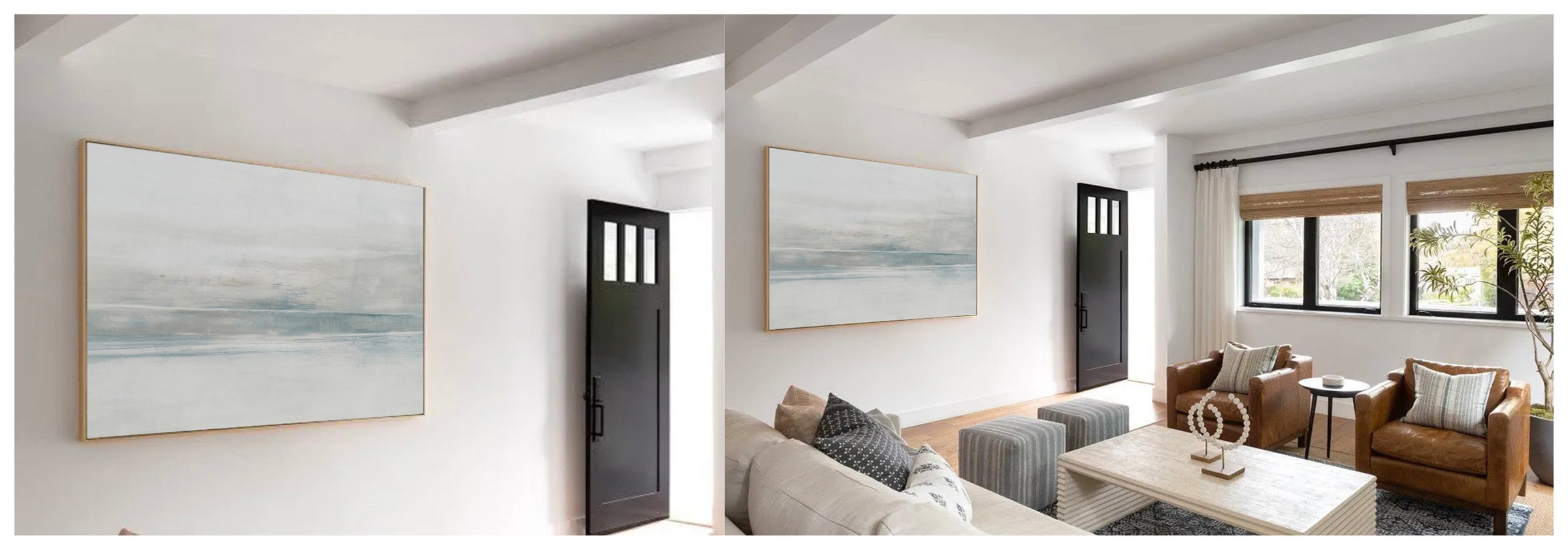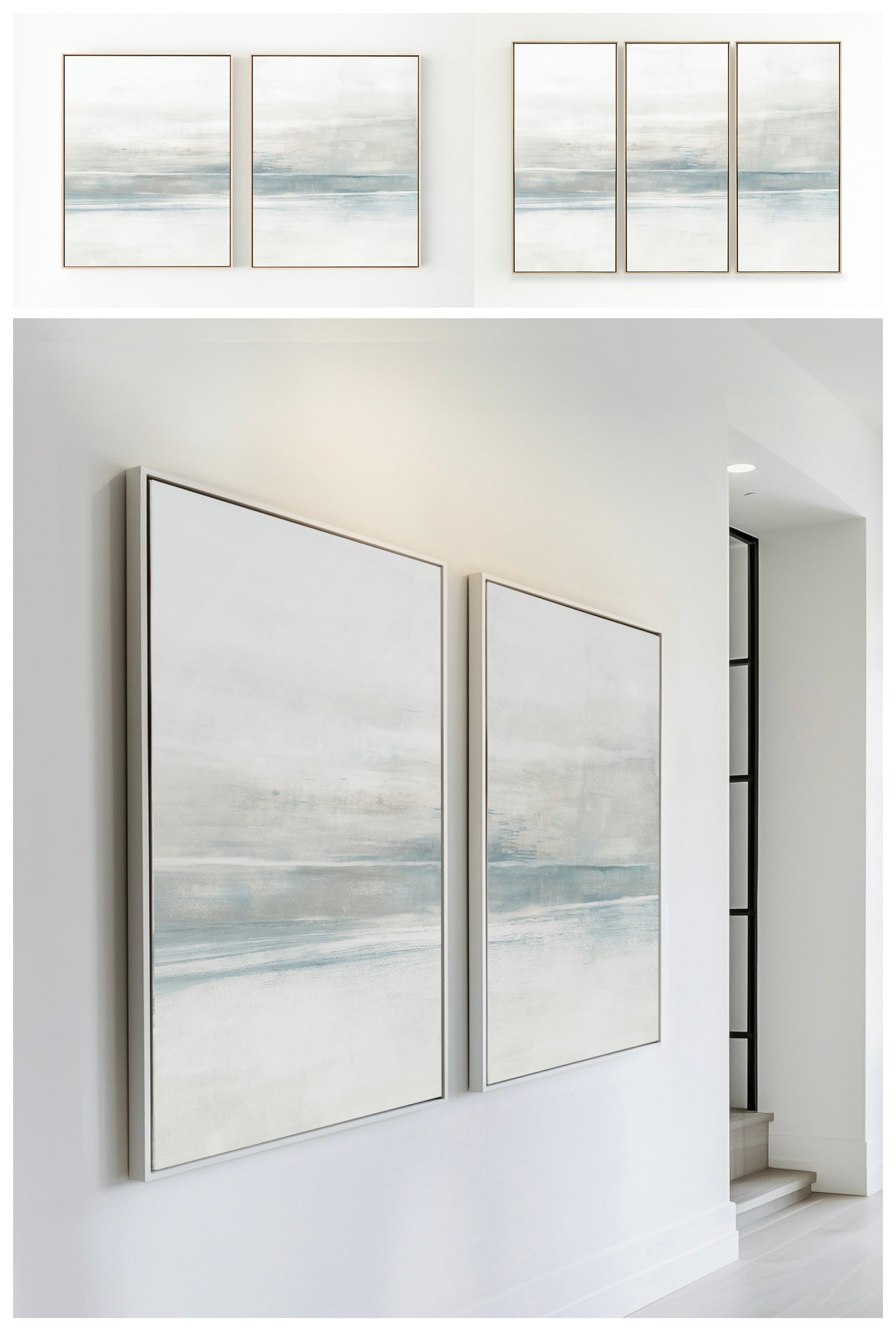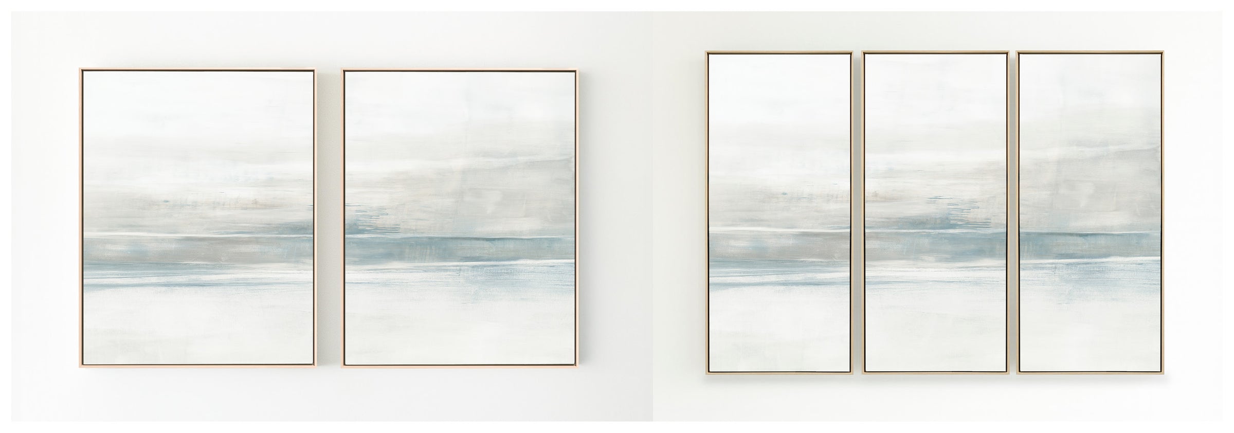 Landscape No.11 is layered with soft grays, hints of sage and steel blues. The Landscape No.11 Collection offers the work in many forms as a reproduction. The Canvas Basics format the work in square, horizontal, and vertical canvases. The Large Canvases offer our most impactful sizes. The Canvas Sets extend the painting across multiple canvases as a diptych or triptych. The Narrow Canvas is a great solution for hard to fill spaces, available in a range of sizes. Additional sizing is available as a hand-finished and signed mixed media canvas.