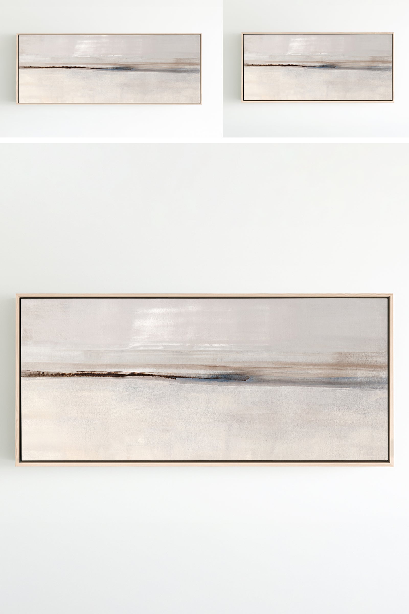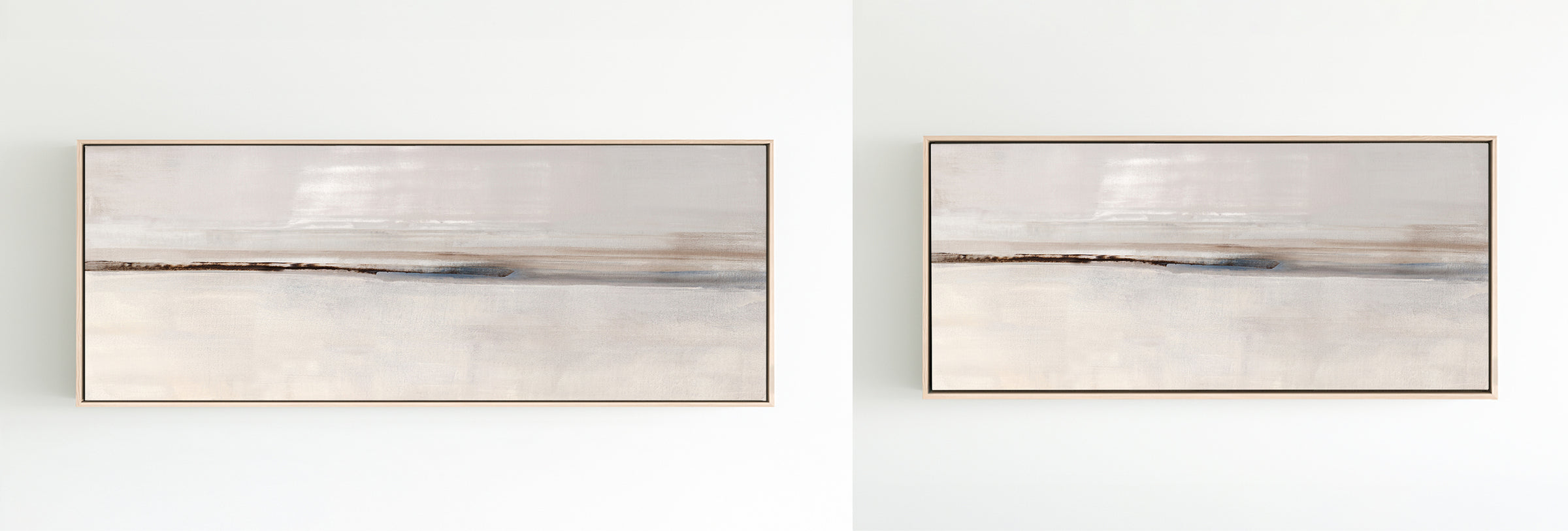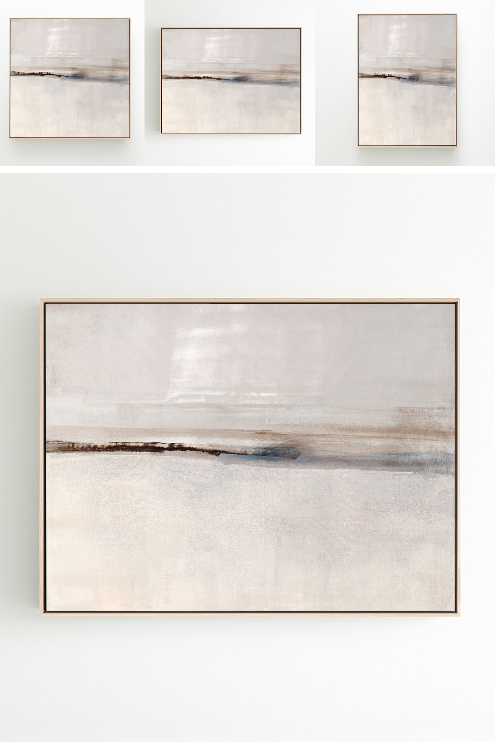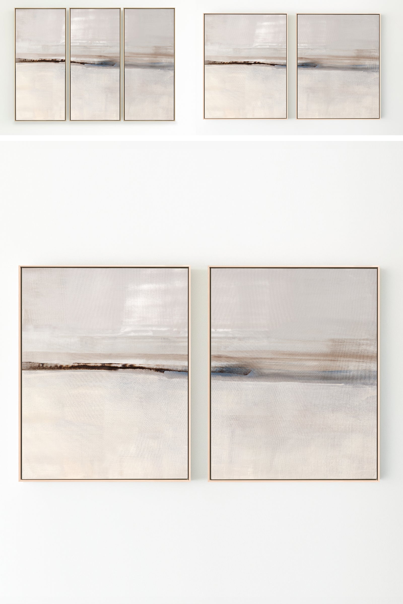 A soft landscape in warm earthy taupes. Landscape No.5 was originally released in 2012. The Collection offers the work in a range of options, from the original gray-blue painting to the various reproductions in the slightly warmed tones. The original painting was rescanned in 2025, giving us a truer version of the original gray-blue tones. With Landscape No.5 having years of success, I chose to release the blue-gray tones under The Landscape No.6 Collection. Both versions come in a wide range of options. The Canvas Basics offer square, horizontal, and vertical formats. The Canvas Sets extend the painting to multiple canvases. The Narrow Canvas solves space issues in several sizes. All of my work is available in custom sizing under the mixed media canvas.