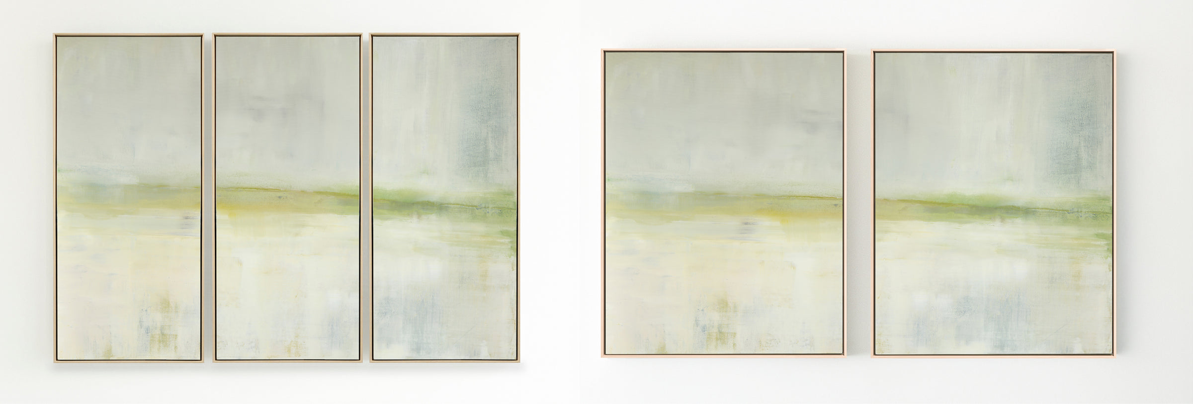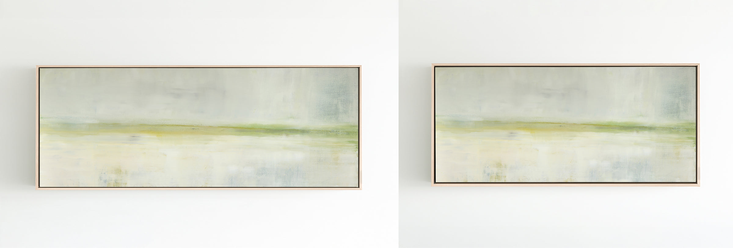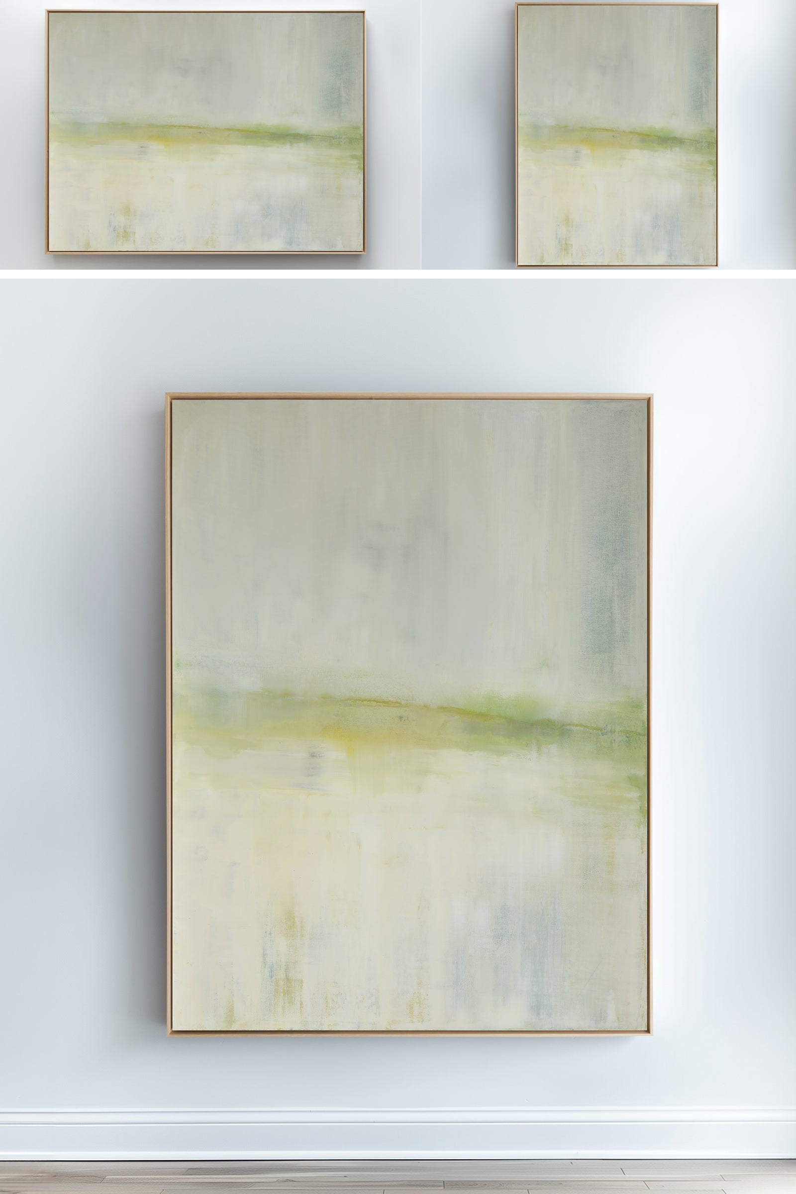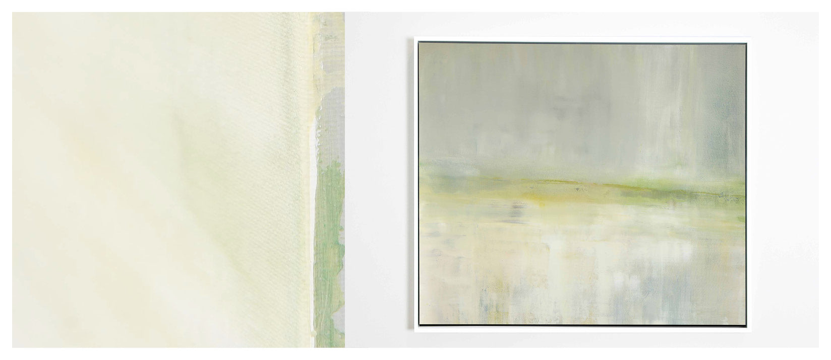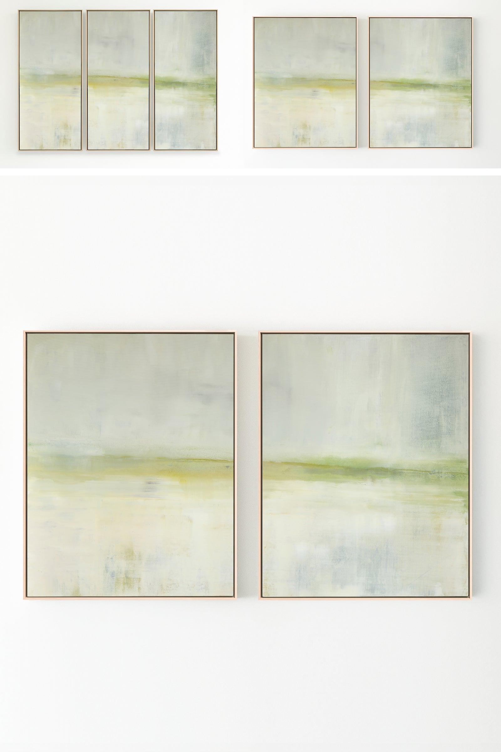 A soothing color field of greens, Mesa in Light is a slightly toned version of the original painting, Mesa. The Collection offers the original Mesa as well as a range of reproductions. The Canvas Basics format the work in square, horizontal, and vertical canvases. The Large Canvases offer our most impactful sizes. The Canvas Sets extend the painting across multiple canvases as a diptych or triptych. The Narrow Canvas is a great solution for hard to fill spaces, available in a range of sizes. Additional sizing is available as a hand-finished and signed mixed media canvas.