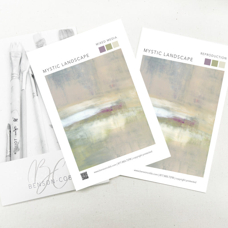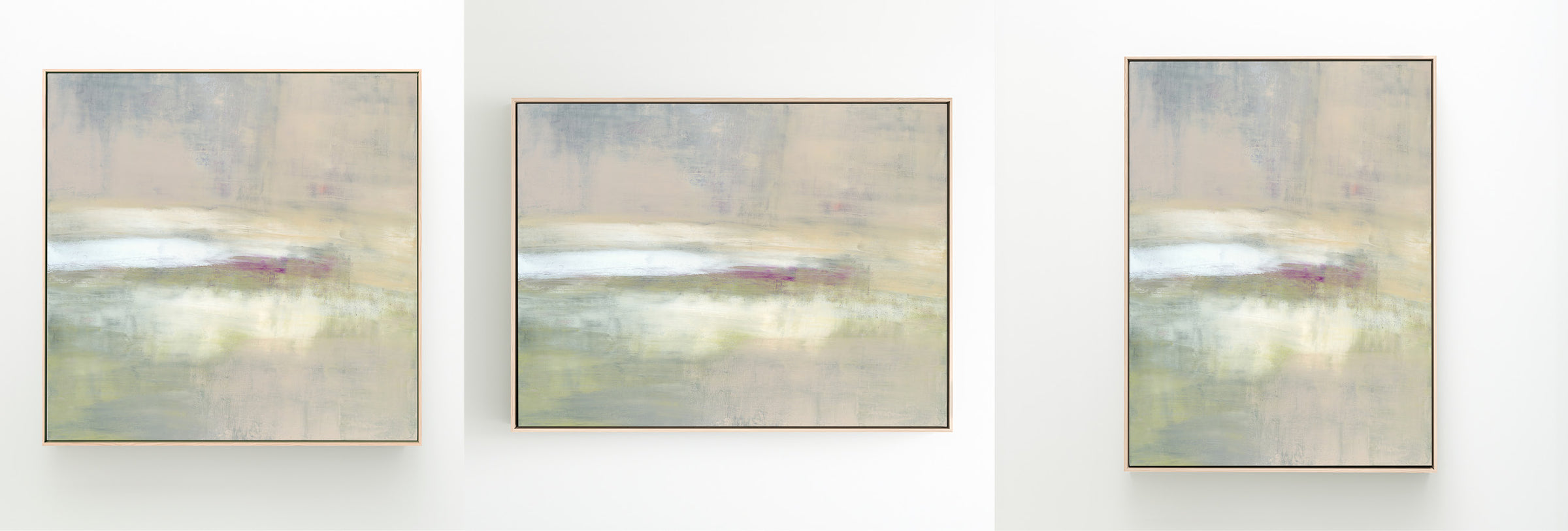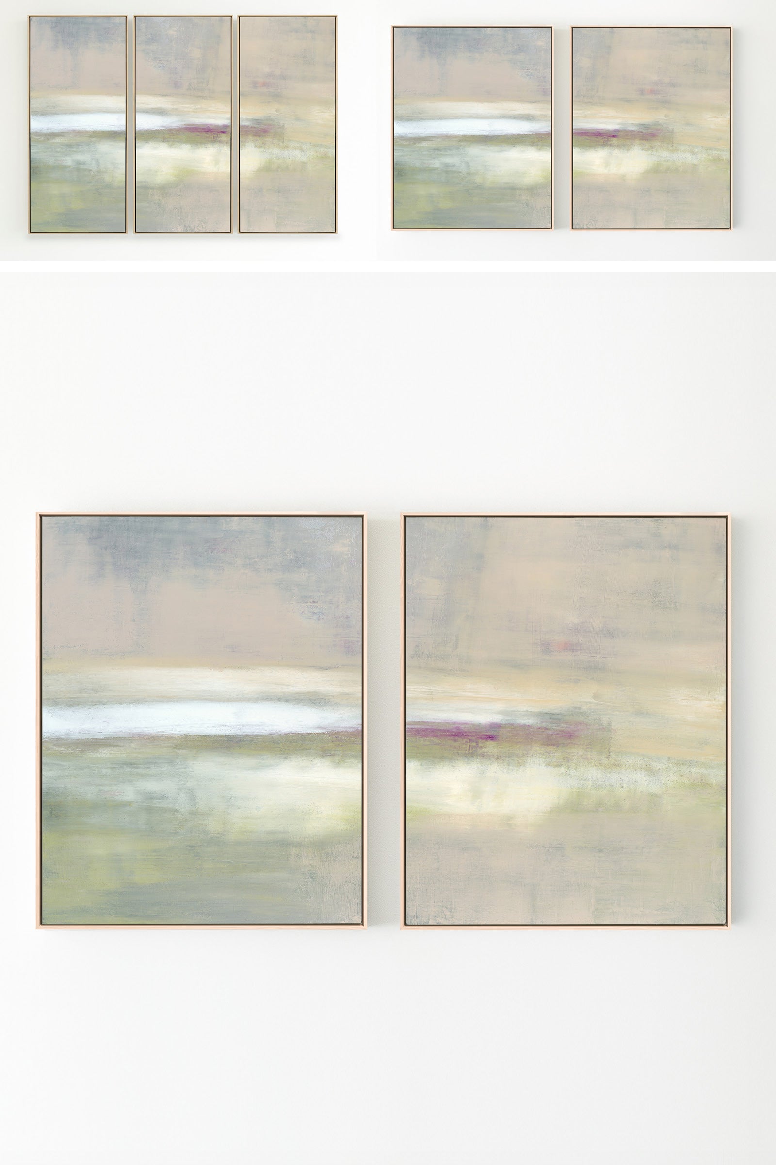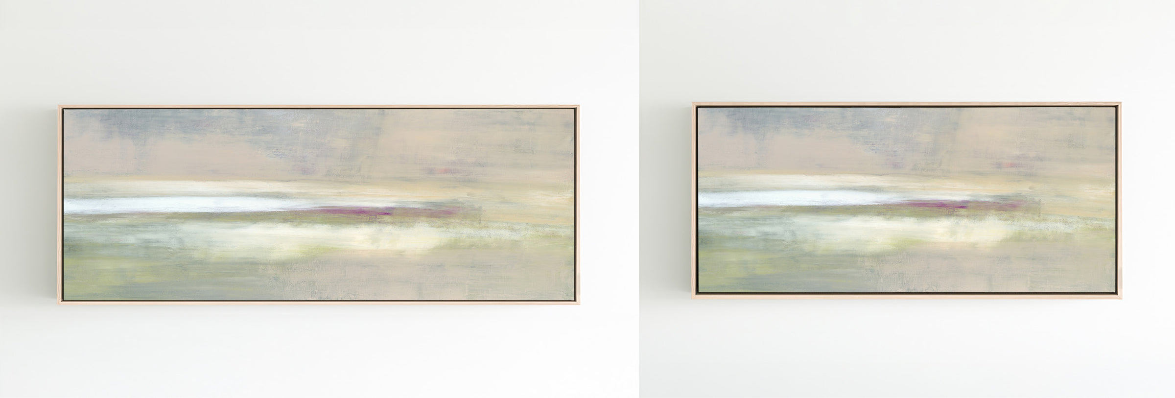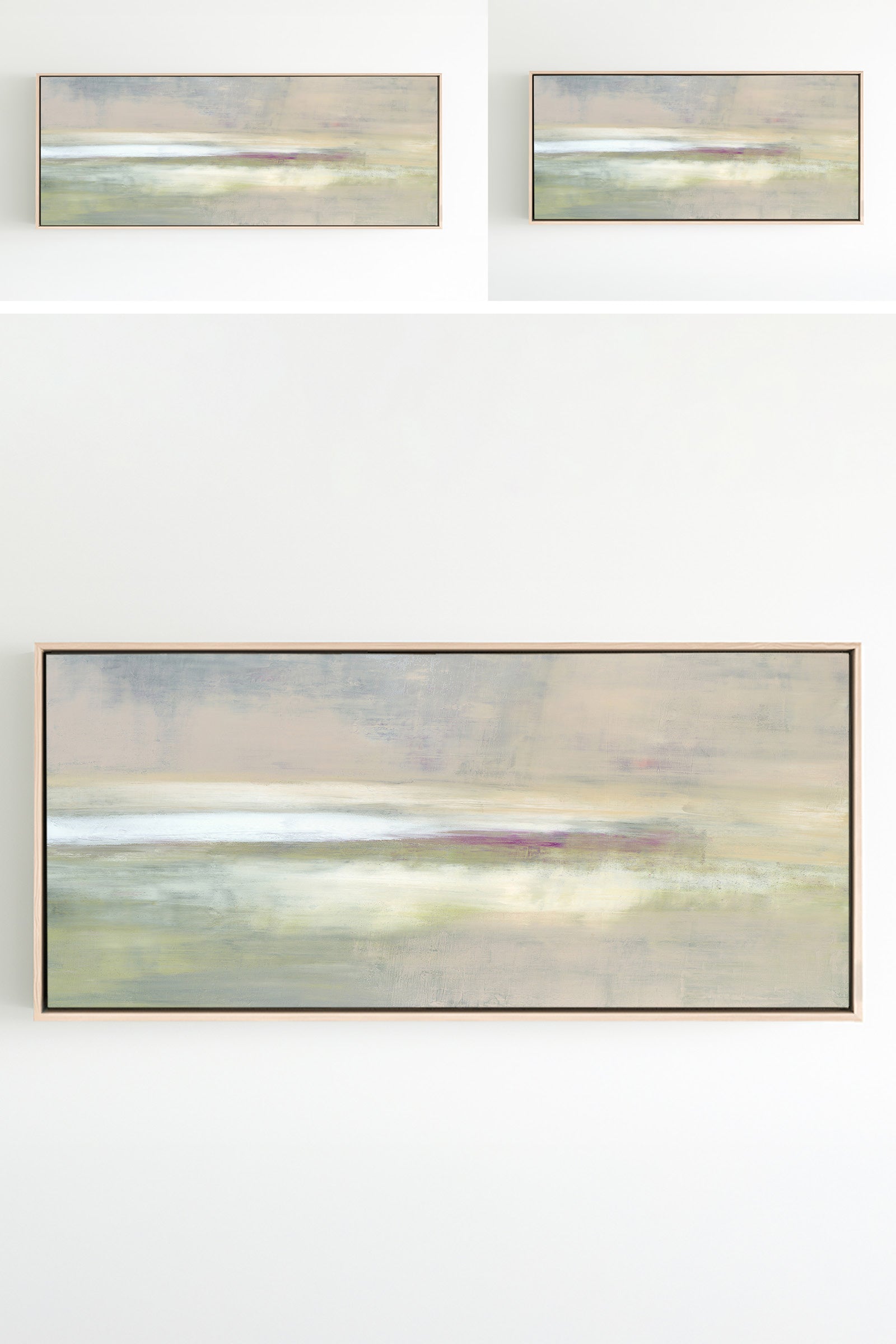 Extensive layering techniques give this soft color field a pearl-like appearance. The Mystic Landscape Collection offers the original painting as well as a range of reproductions. The Canvas Basics format the work in square, horizontal, and vertical canvases. The Large Canvases offer our most impactful sizes. The Canvas Sets extend the painting across multiple canvases as a diptych or triptych. The Narrow Canvas is a great solution for hard to fill spaces, available in a range of sizes. Additional sizing is available as a hand-finished and signed mixed media canvas.