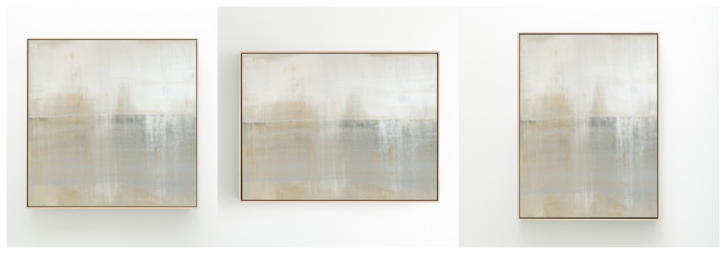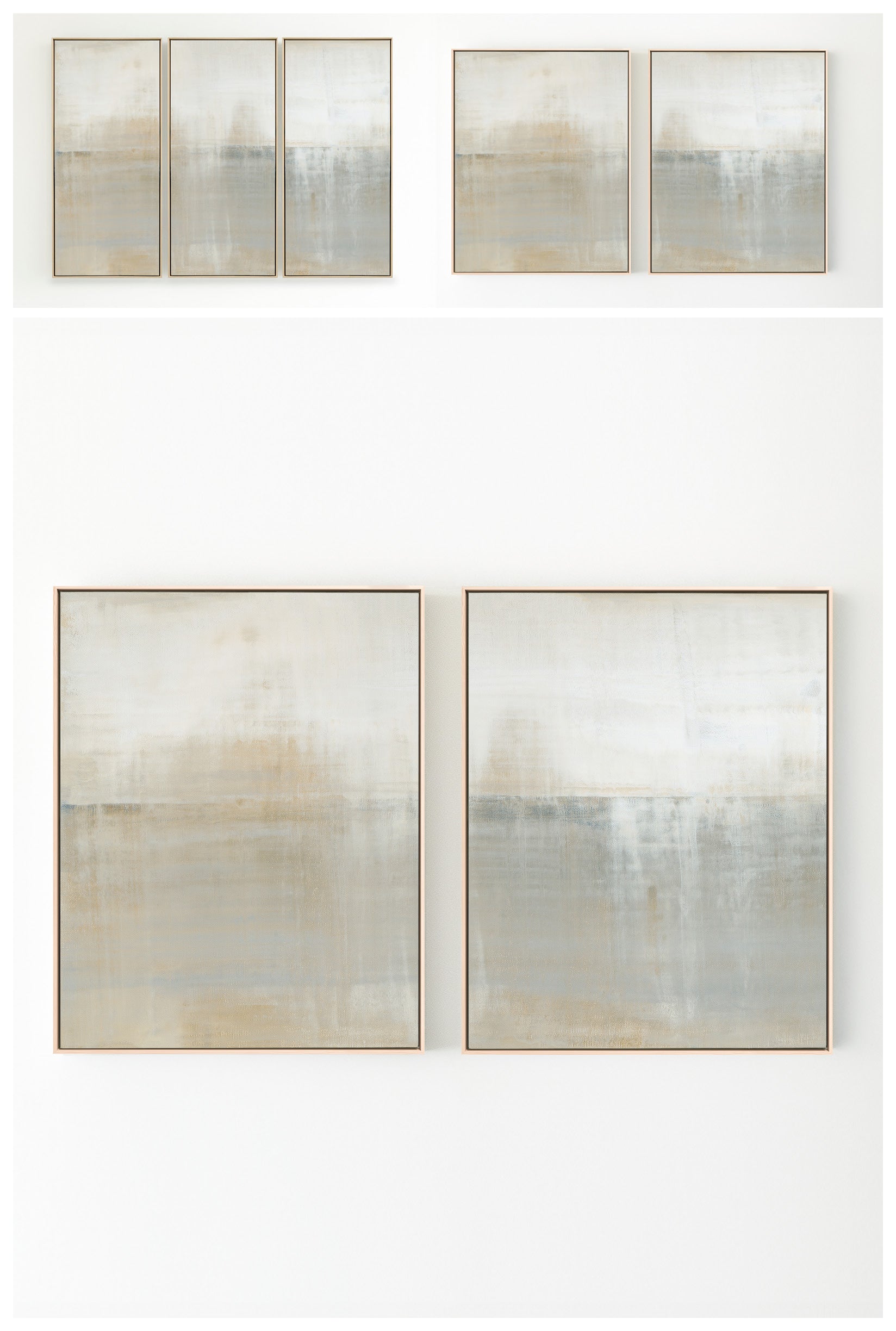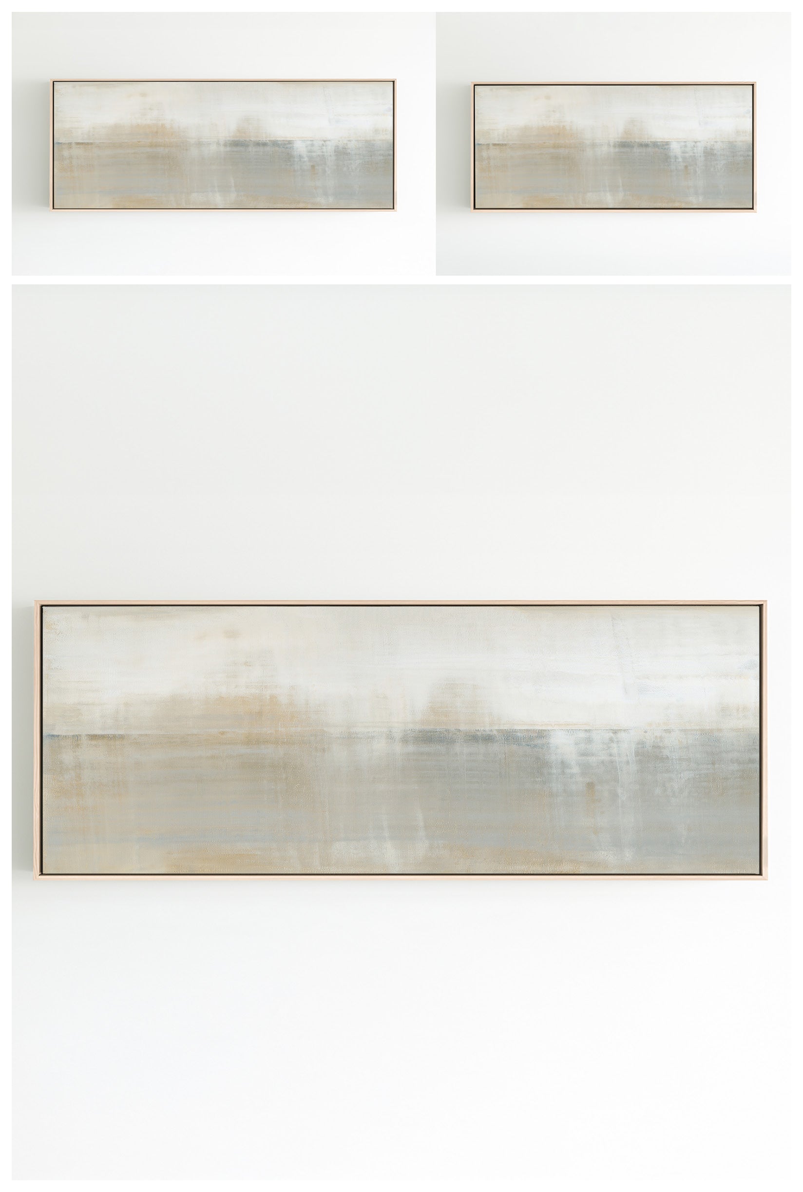 A horizon layered in creamy umber tones with hints of soft gray. The Collection offers a range of options in various forms. The Canvas Basics format the work in square, horizontal, and vertical canvases. The Large Canvases offer our most impactful sizes. The Canvas Sets extend the painting across multiple canvases as a diptych or triptych. The Narrow Canvas is a great solution for hard to fill spaces, available in a range of sizes. Additional sizing is available as a hand-finished and signed mixed media canvas.