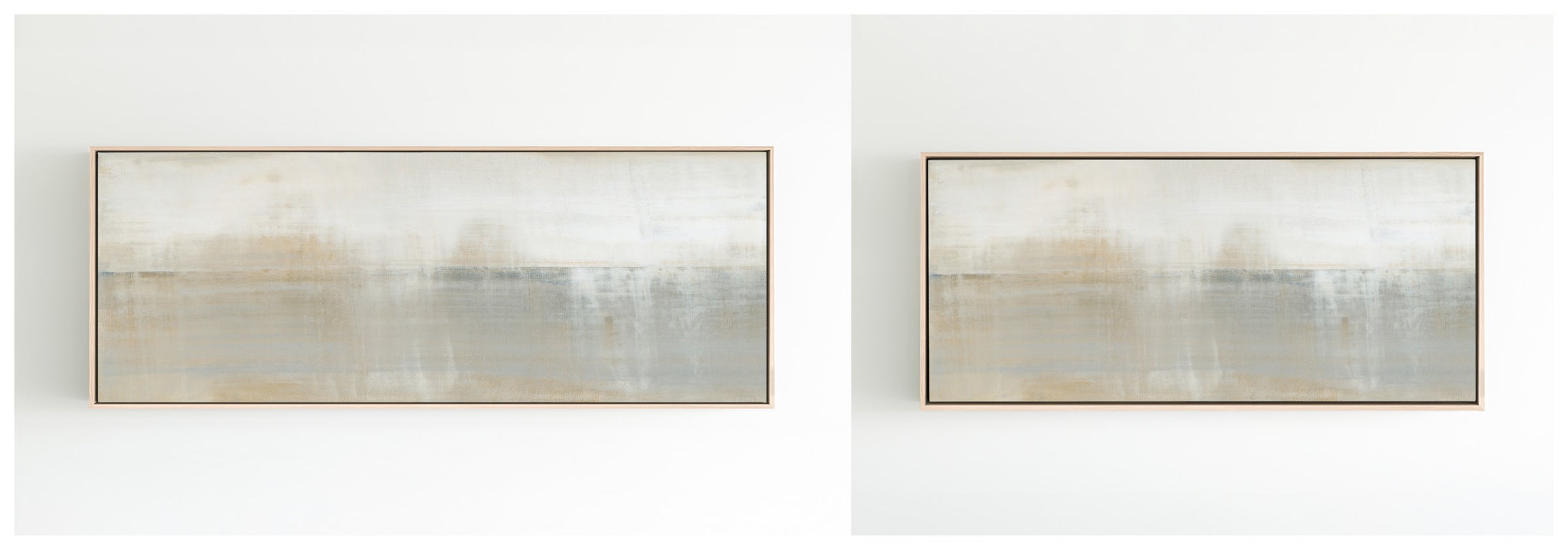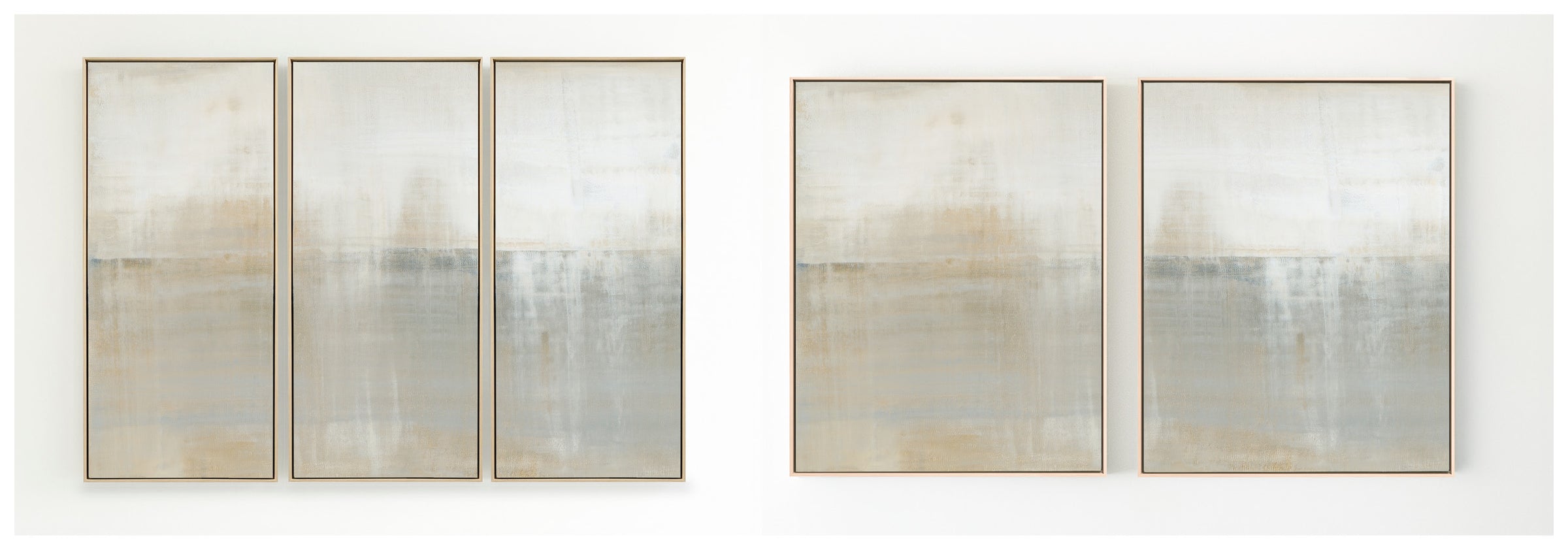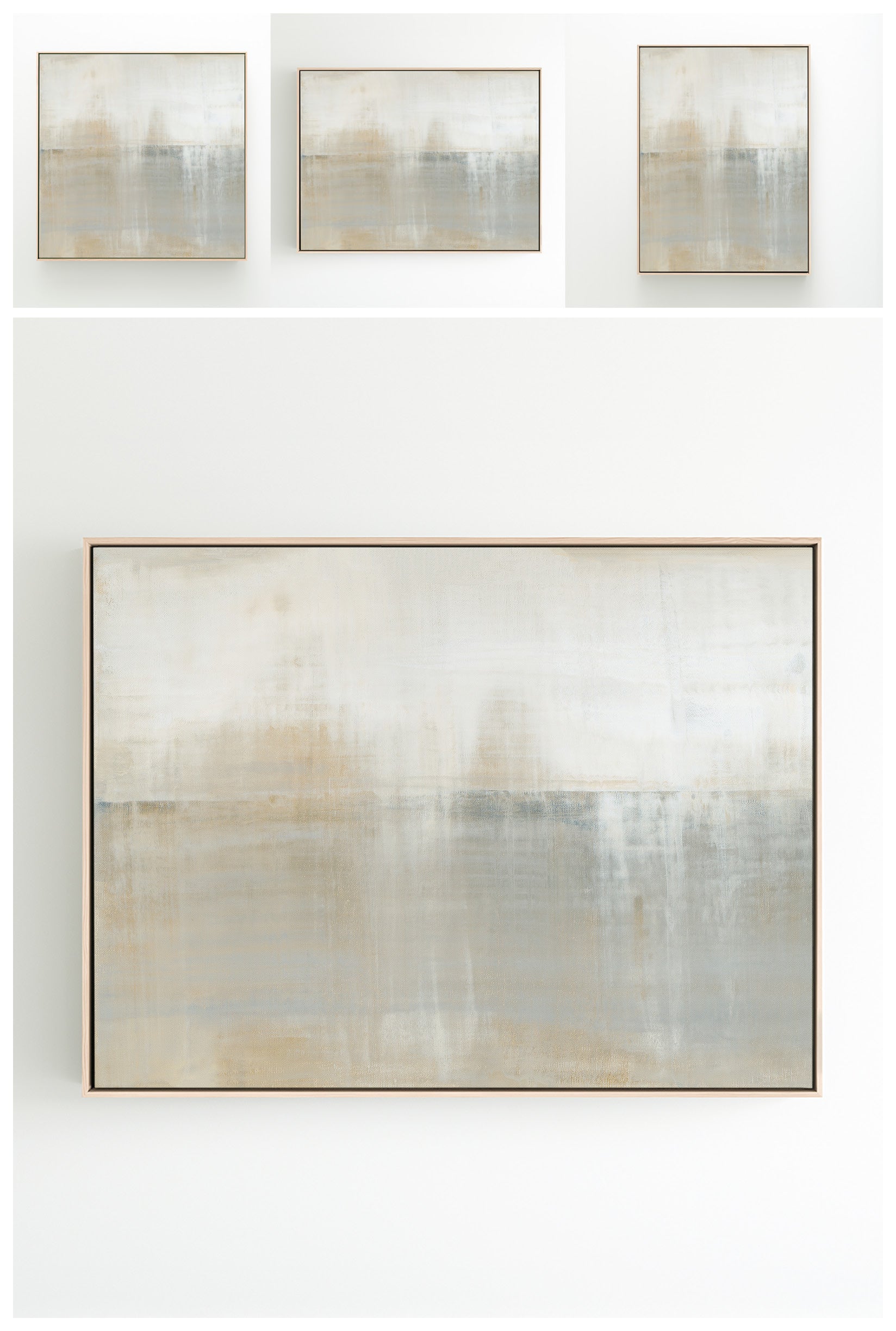 A horizon layered in creamy umber tones with hints of soft gray. The Collection offers a range of options in various forms. The Canvas Basics format the work in square, horizontal, and vertical canvases. The Large Canvases offer our most impactful sizes. The Canvas Sets extend the painting across multiple canvases as a diptych or triptych. The Narrow Canvas is a great solution for hard to fill spaces, available in a range of sizes. Additional sizing is available as a hand-finished and signed mixed media canvas.
