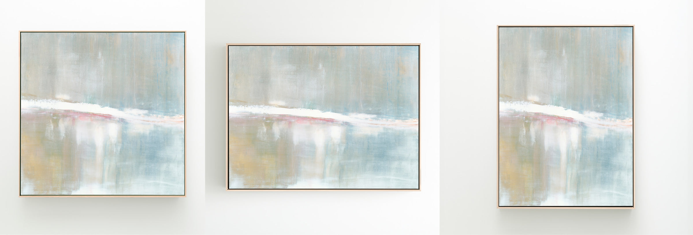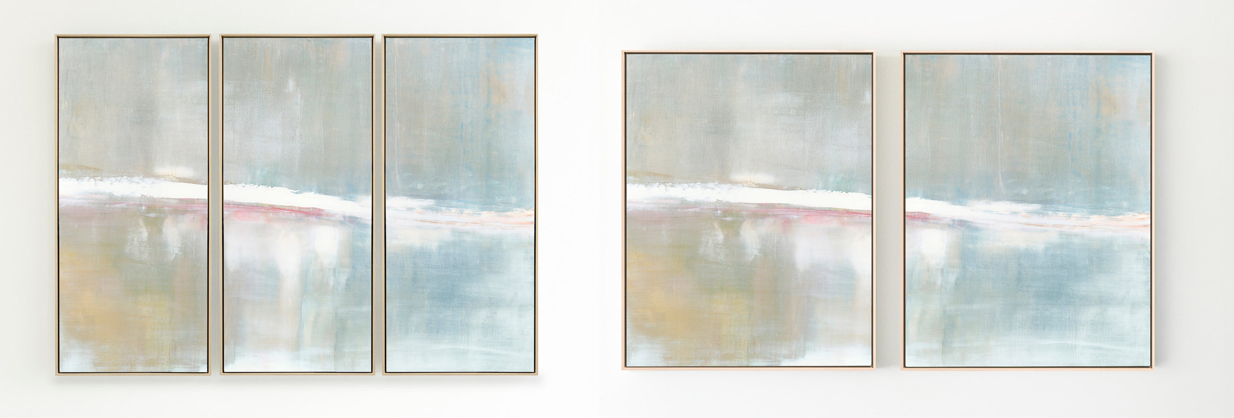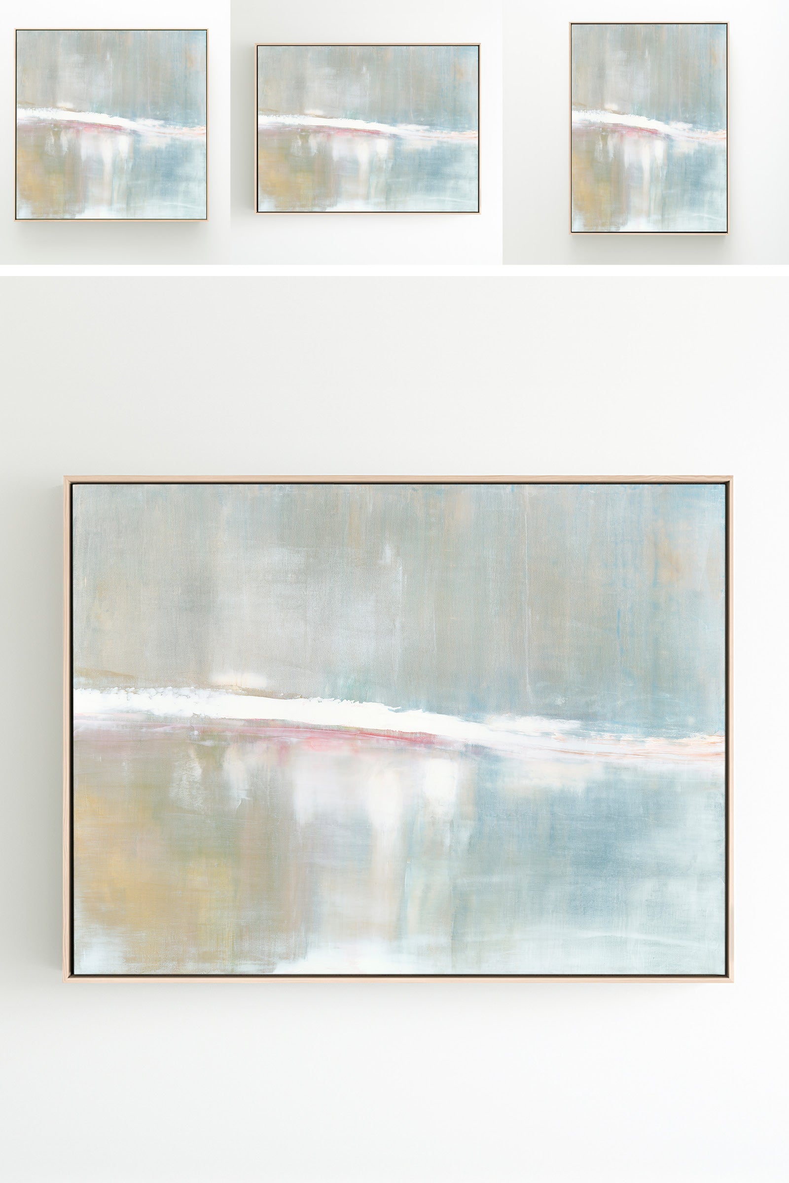The original canvas was painted in 2016, the vibrant colors are layered in blues, sage greens, blush, and a hint of pale yellow. The Refuge Collection offers the artwork in many forms, from the original painting to our reproduction options. The Canvas Basics offer three formats of square, horizontal, and vertical in a range of sizes. Refuge is offered in our Large Canvases with several impactful options. The Canvas Sets offer the work across multiple canvases. Our Narrow Canvases accommodate hard to fill spaces in several sizes. As with all of my work, additional sizing is available as a signed and embellished mixed media.
