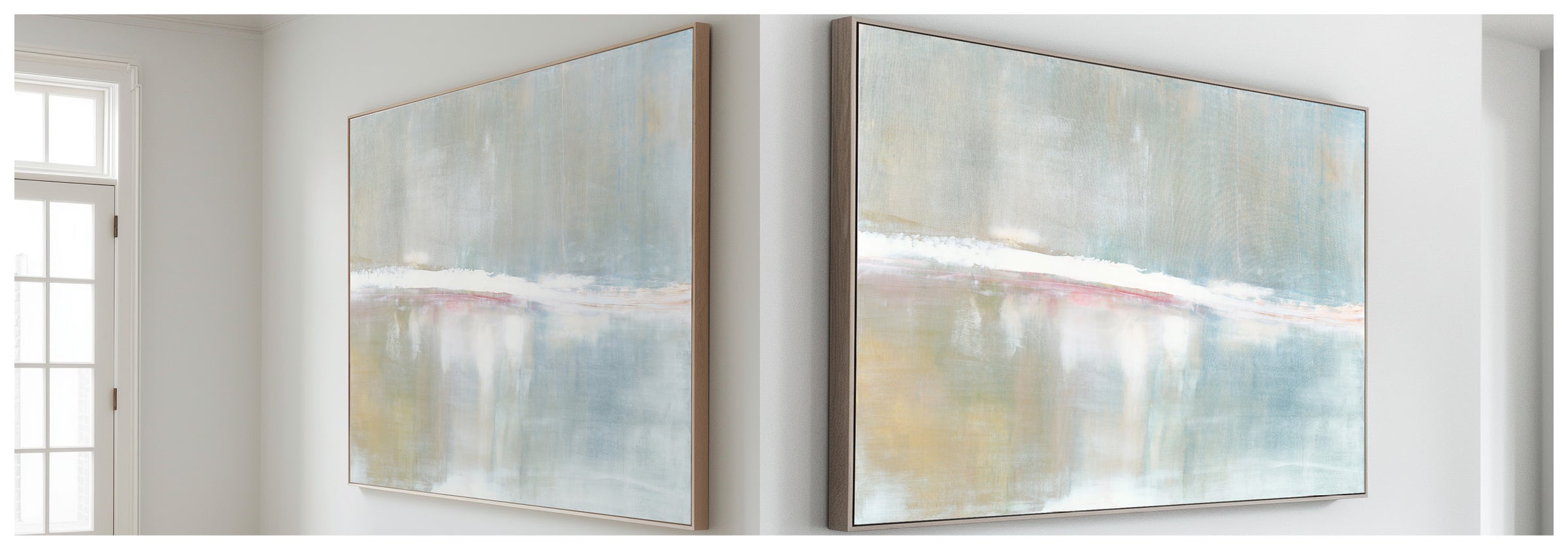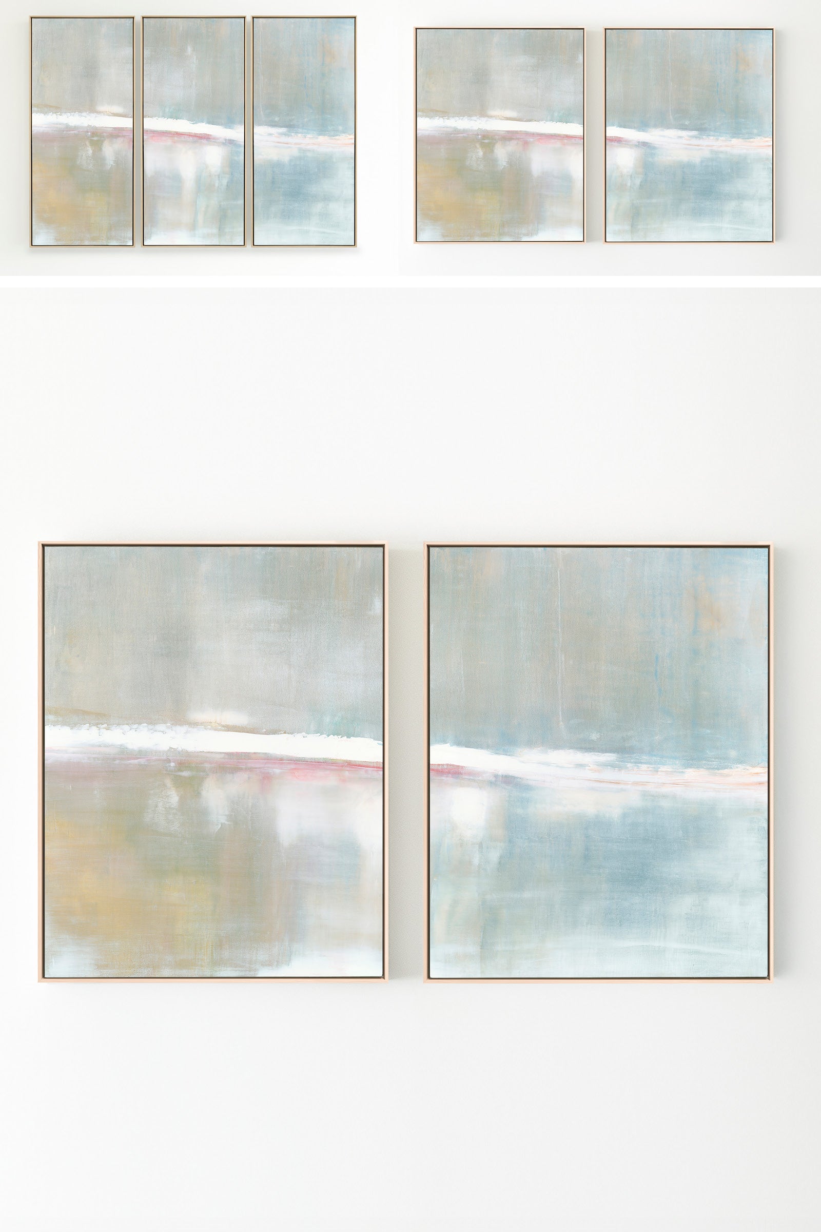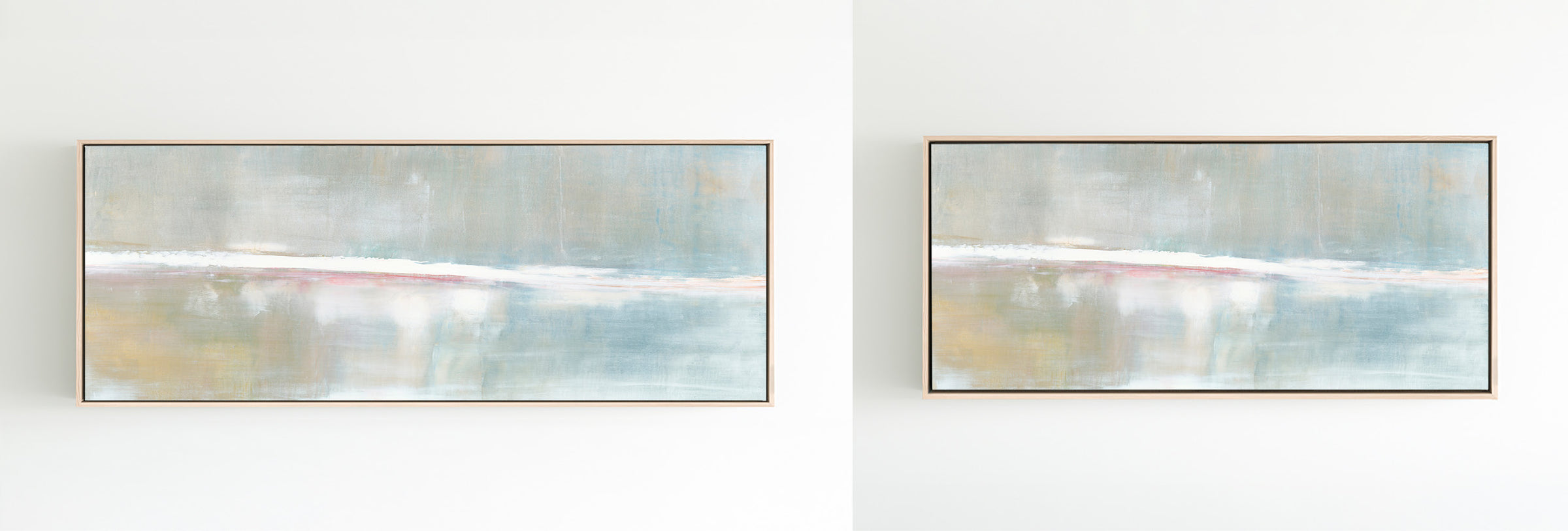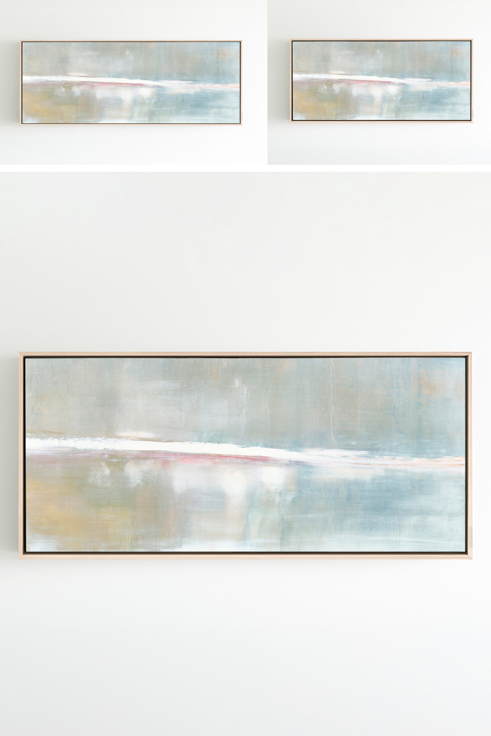 The original canvas was painted in 2016, the vibrant colors are layered in blues, sage greens, blush, and a hint of pale yellow. The Refuge Collection offers the artwork in many forms, from the original painting to our reproduction options. The Canvas Basics offer three formats of square, horizontal, and vertical in a range of sizes. Refuge is offered in our Large Canvases with several impactful options. The Canvas Sets offer the work across multiple canvases. Our Narrow Canvases accommodate hard to fill spaces in several sizes. As with all of my work, additional sizing is available as a signed and embellished mixed media.