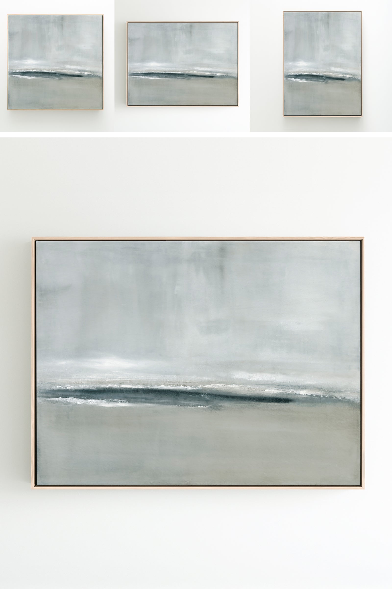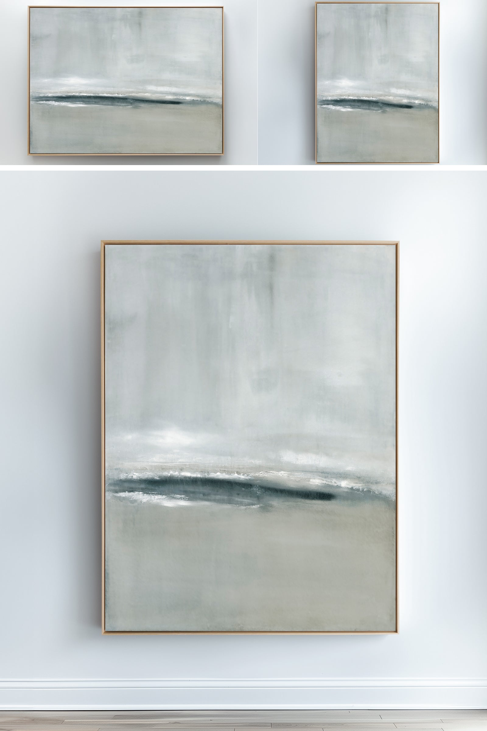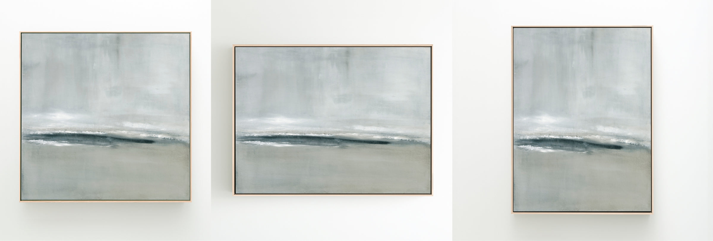 Released in 2024, inspired by a stormy coastal scene, layers of movement in soft grays and deeper blue tones. The Collection offers the work in several forms. The Canvas Basics format reproductions in square, horizontal, and vertical canvases. Rising Tides is also available in our Large Canvases, adding impactful options. The Canvas Sets offer the painting extended across multiple canvases. The Narrow Canvases offer a selection of sizes for hard to fill spaces. As with all of my work, additional custom sizing is available as a signed and hand-finished mixed media.