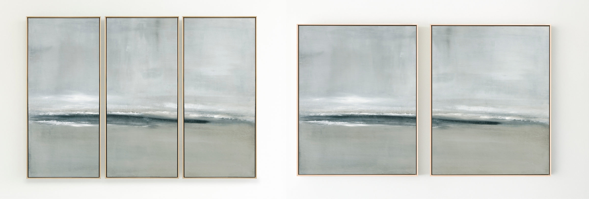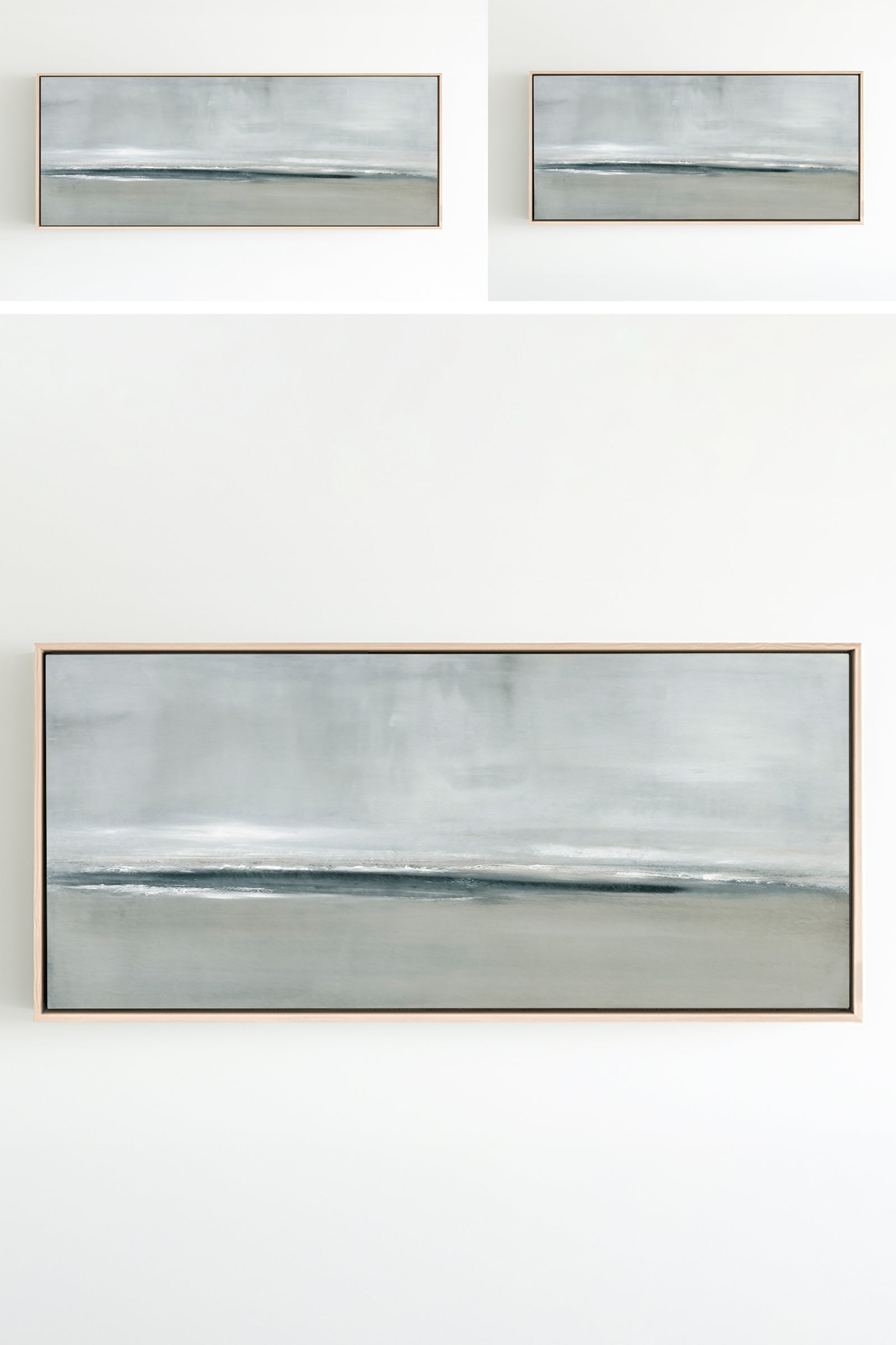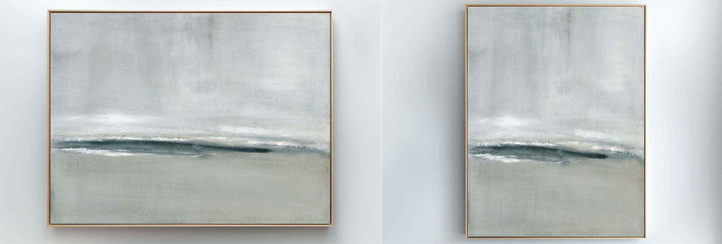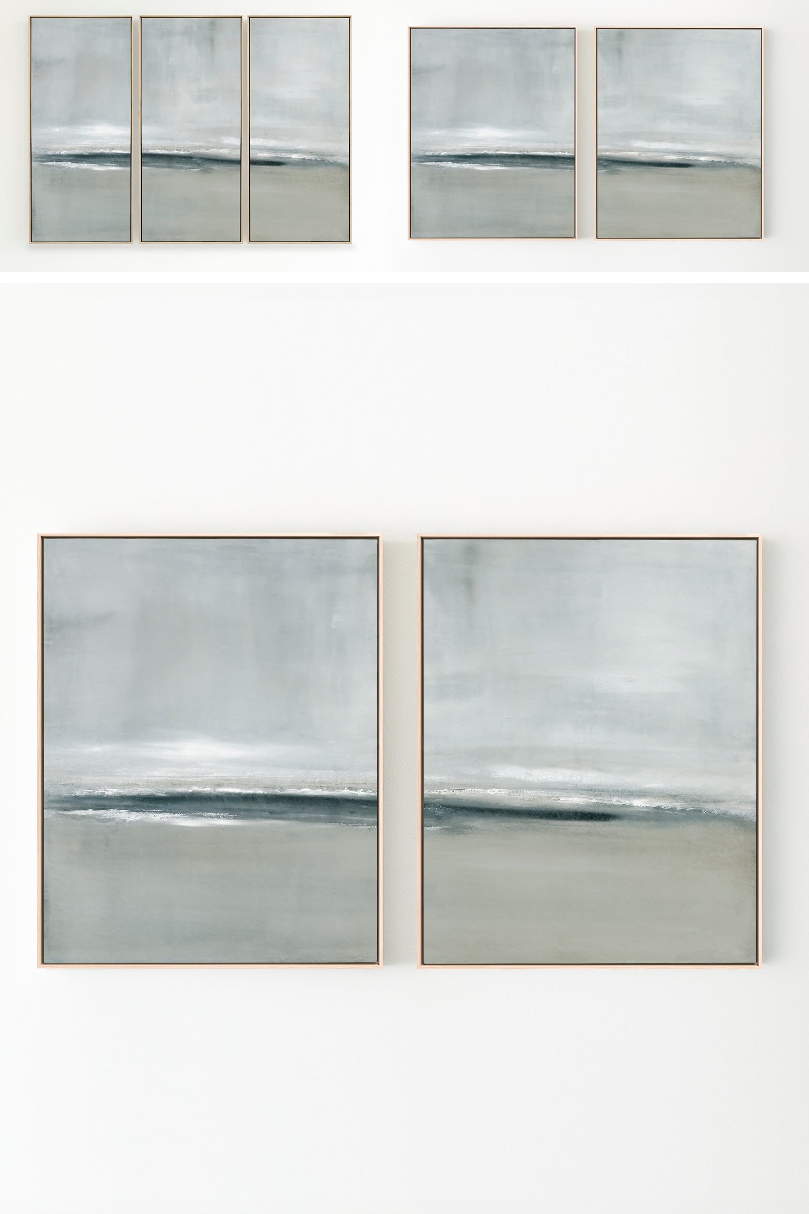 Released in 2024, inspired by a stormy coastal scene, layers of movement in soft grays and deeper blue tones. The Collection offers the work in several forms. The Canvas Basics format reproductions in square, horizontal, and vertical canvases. Rising Tides is also available in our Large Canvases, adding impactful options. The Canvas Sets offer the painting extended across multiple canvases. The Narrow Canvases offer a selection of sizes for hard to fill spaces. As with all of my work, additional custom sizing is available as a signed and hand-finished mixed media.