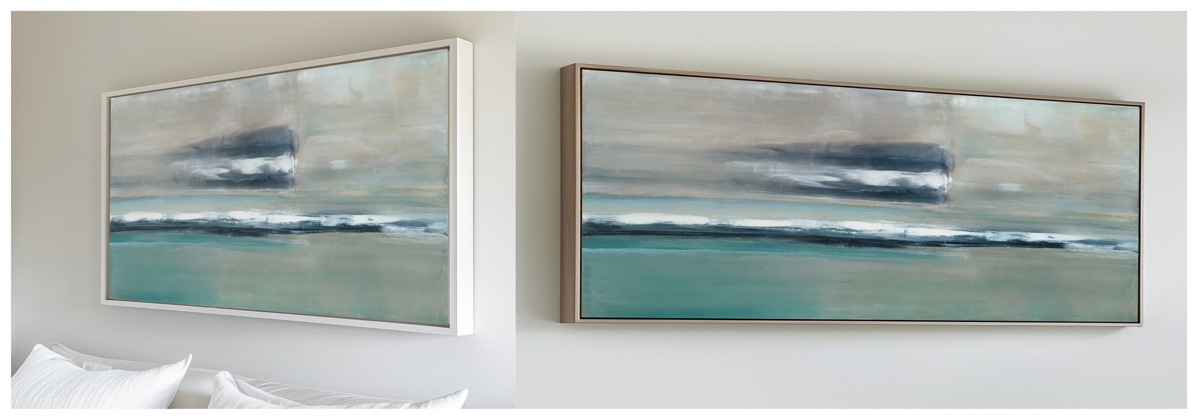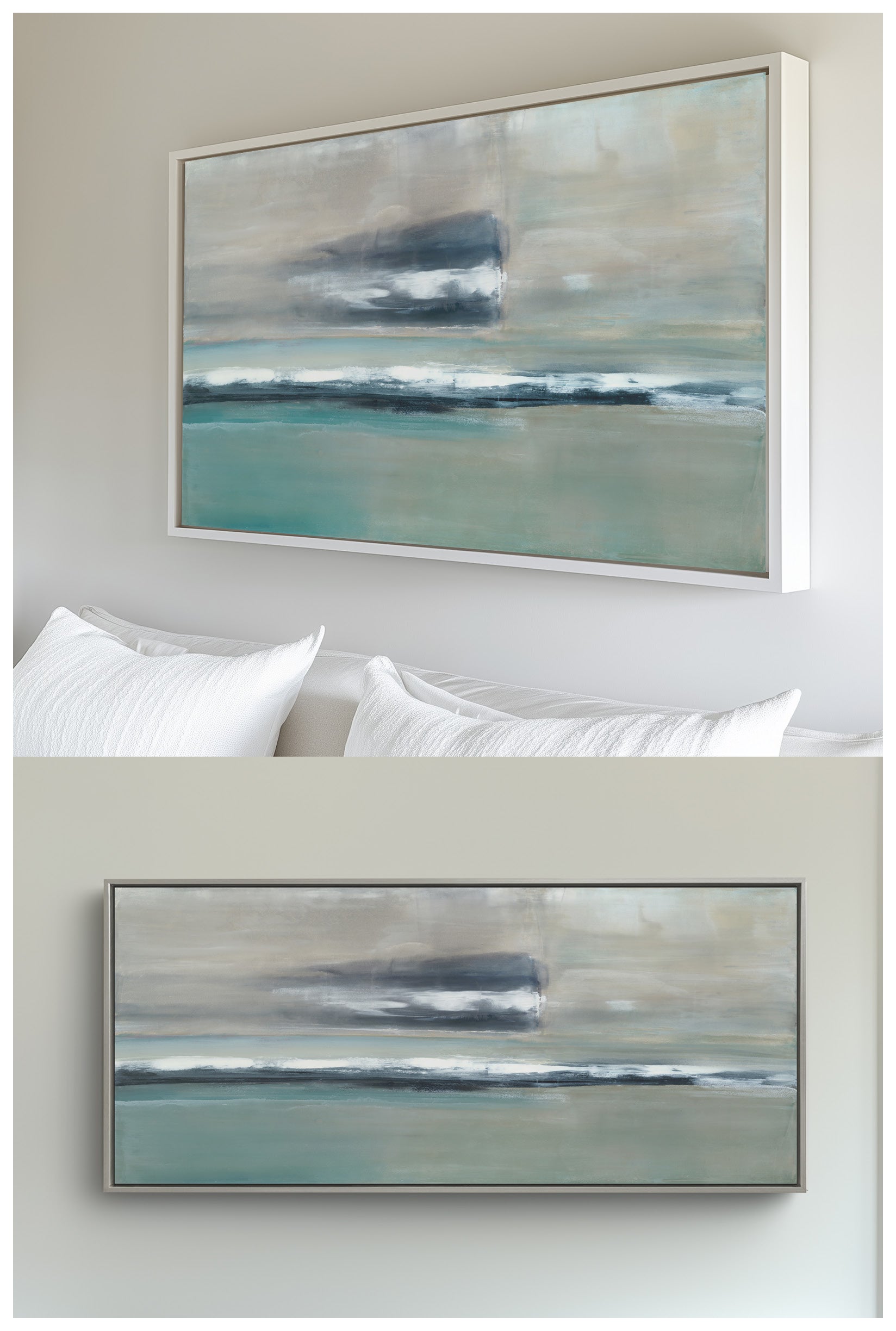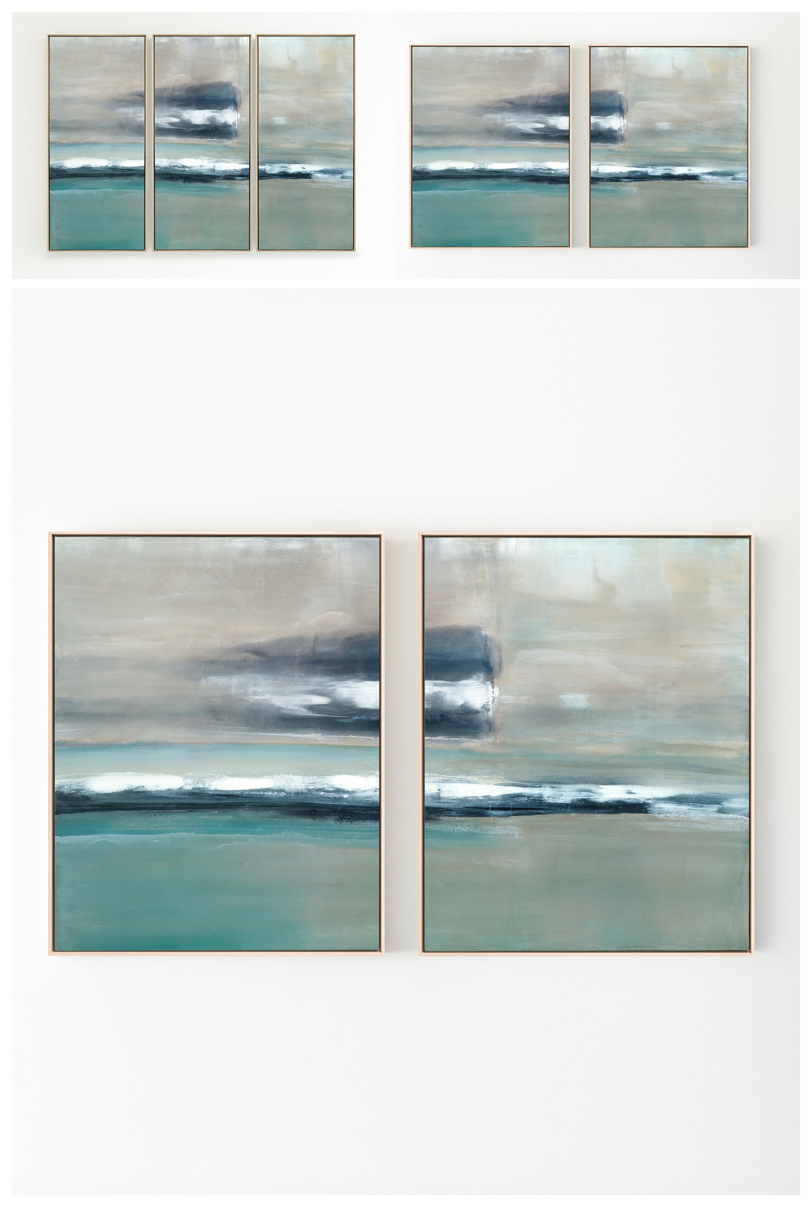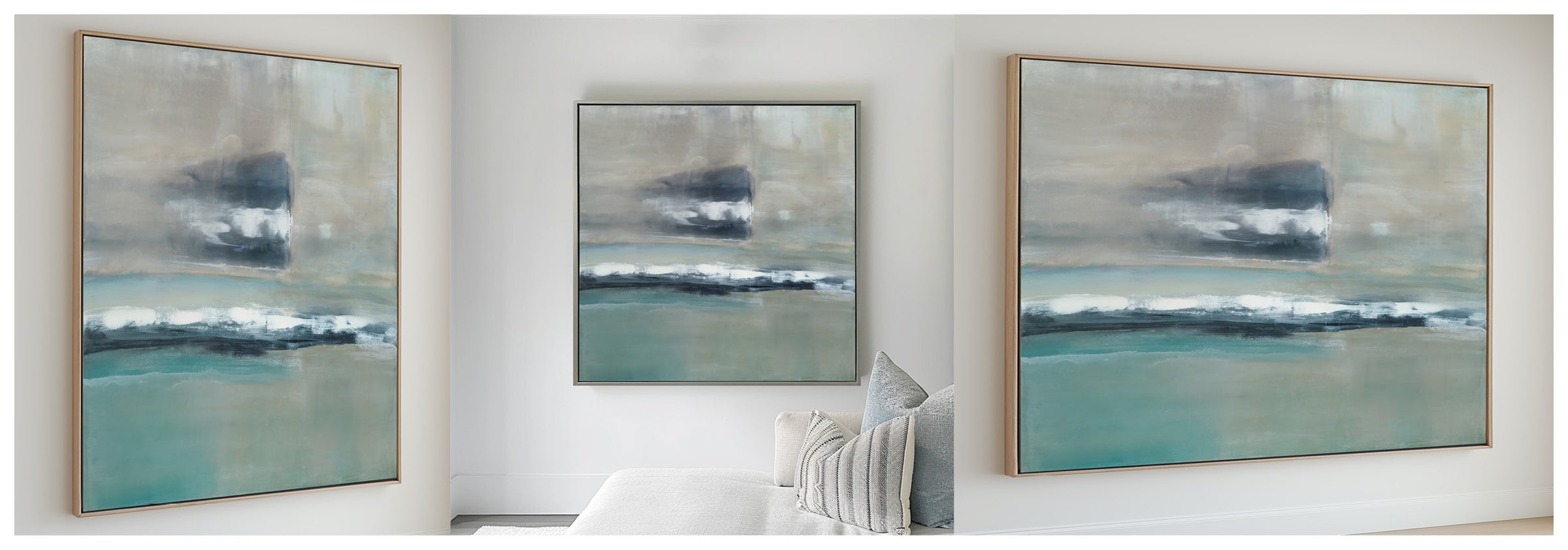 The original painting is a 72x45 canvas created in 2014 for Neiman Marcus. The composition is reminiscent of Serenity. The emerald tones are layered giving the painting a dramatic mood. The Collection offers the work in many forms, from the original painting to reproductions in several options. The Canvas Basics format the work in square, horizontal, and vertical canvases. The Large Canvases offer our most impactful sizes. The Canvas Sets extend the painting across multiple canvases as a diptych or triptych. The Narrow Canvas is a great solution for hard to fill spaces, available in a range of sizes. Additional sizing is available as a hand-finished and signed mixed media canvas.