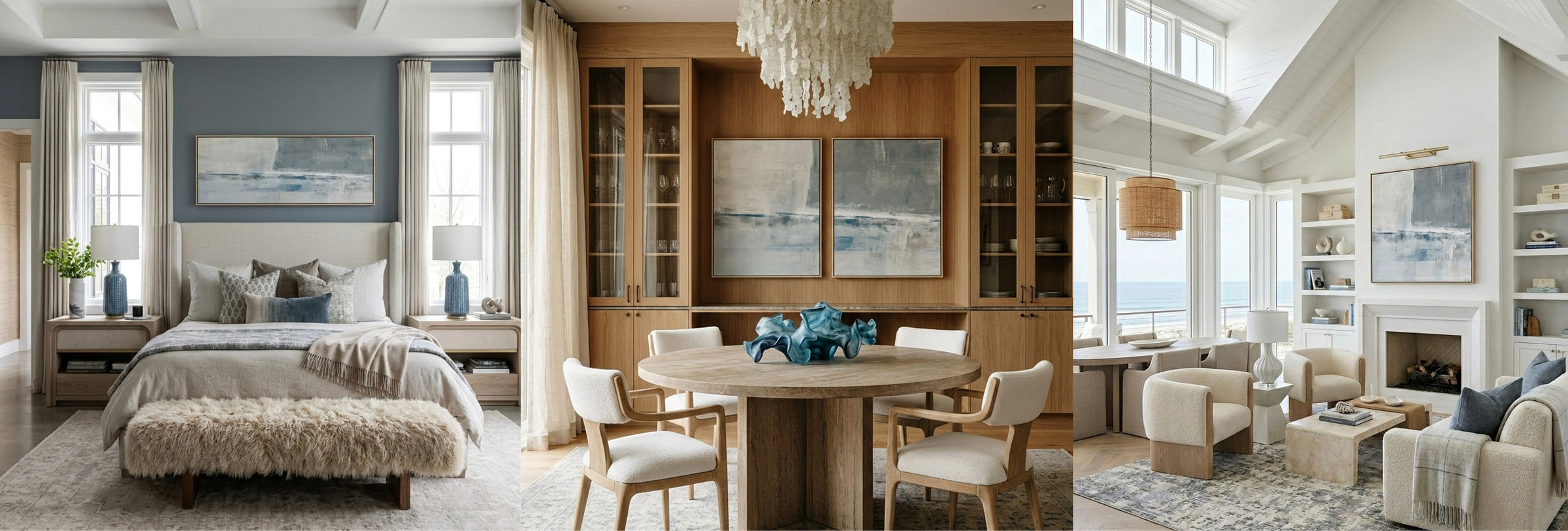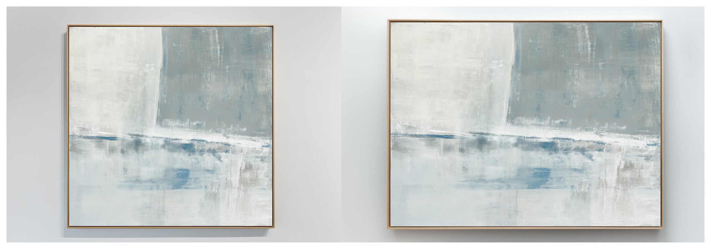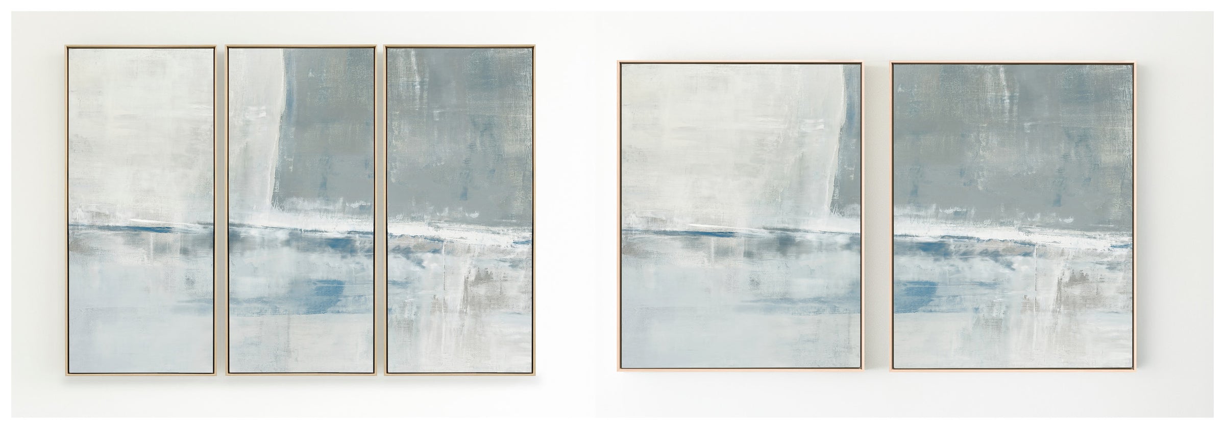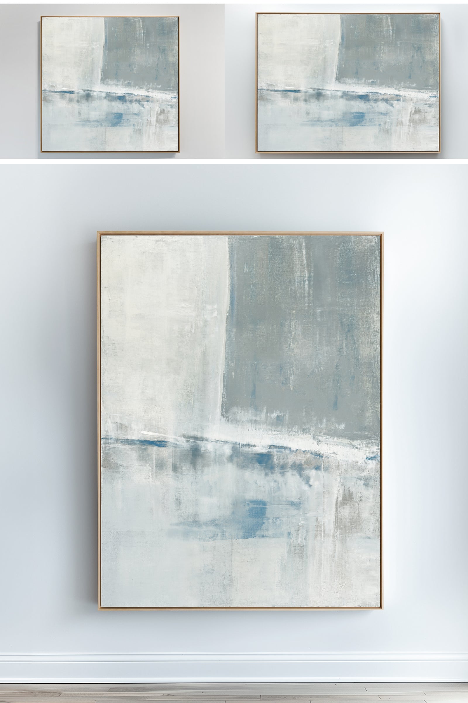 Subtle color shifts from the original painting, Shallow in Gray is layered in slate blues merging with creams and pale grays. The Collection offers the work in many forms, The Canvas Basics format the work in square, horizontal, and vertical canvases. The Large Canvases offer our most impactful sizes. The Canvas Sets extend the painting across multiple canvases as a diptych or triptych. The Narrow Canvas is a great solution for hard to fill spaces, available in a range of sizes. Additional sizing is available as a hand-finished and signed mixed media canvas.