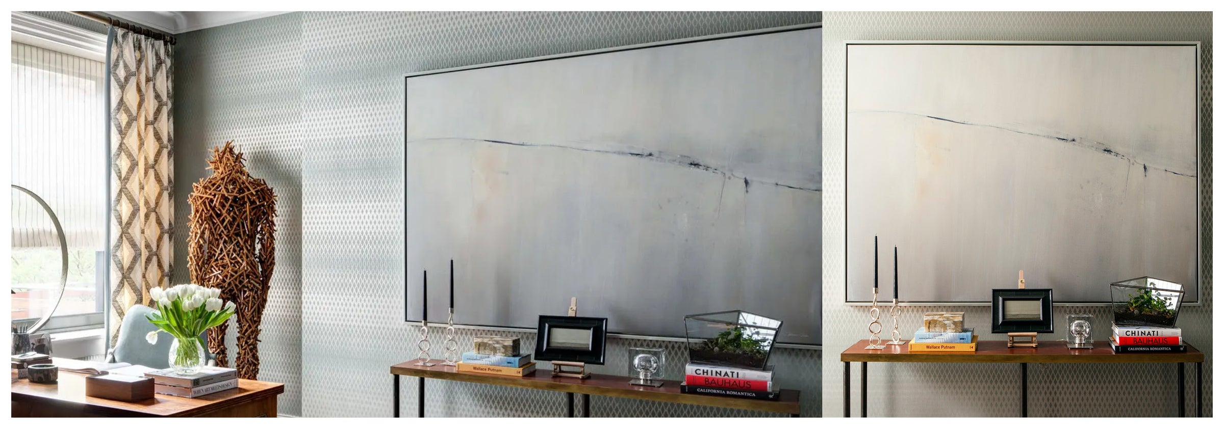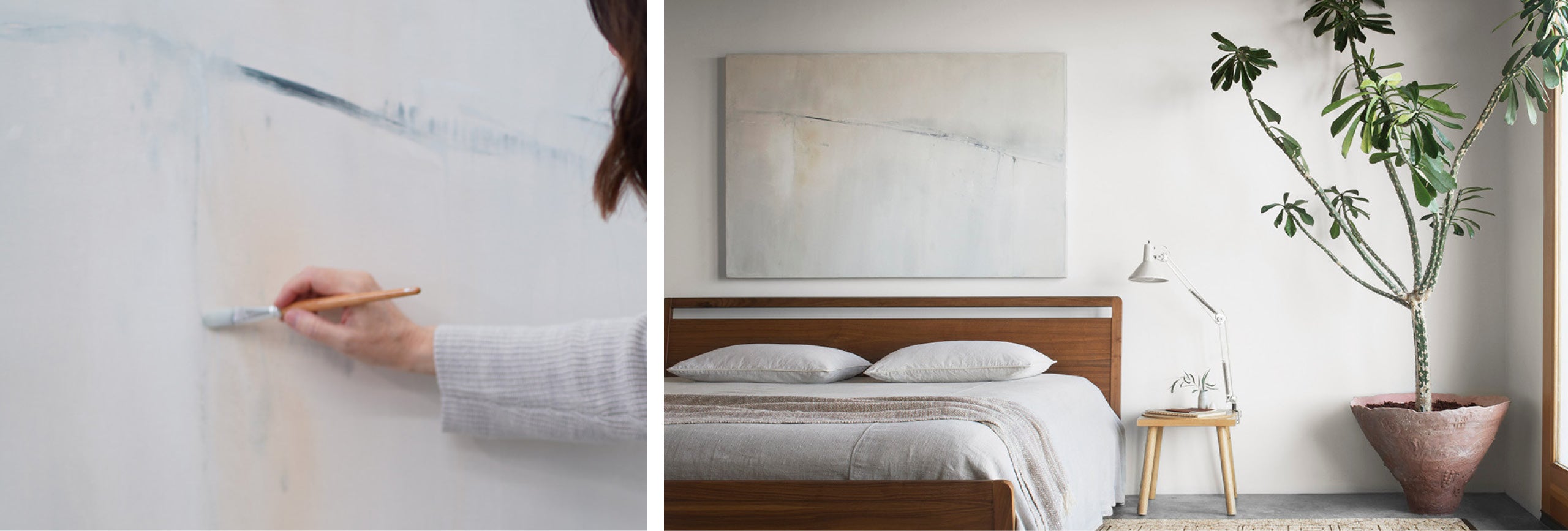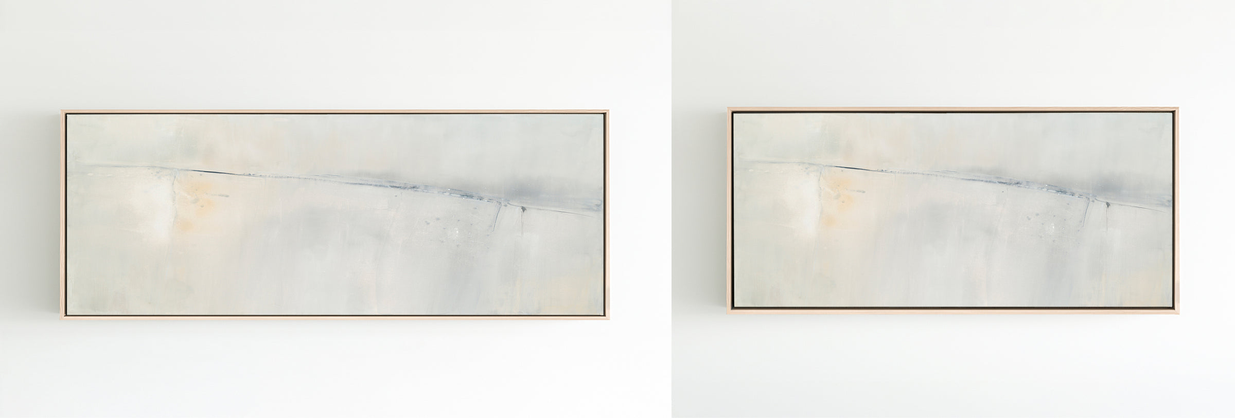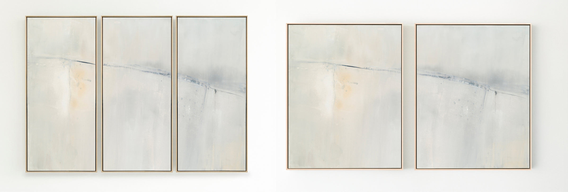 A minimalist yet complex perspective with subtle tonal washes of grays and hints of caramel tones. The Shelter Collection offers the painting in various forms from the original 60x40 canvas to our largest reproduction canvas options. As with all of my work, custom sizes are available as a signed and hand-finished mixed media canvas.