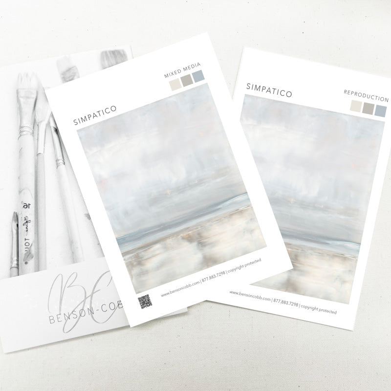 A familiar coastal scene, layered in soft gray-blues, creams, and hints of earthy tones. A top-selling work, the Simpatico Collection offers the painting in a range of options, including the original painting. Select from our standard reproduction sizes or choose a more custom piece with the hand-finished and signed mixed media.