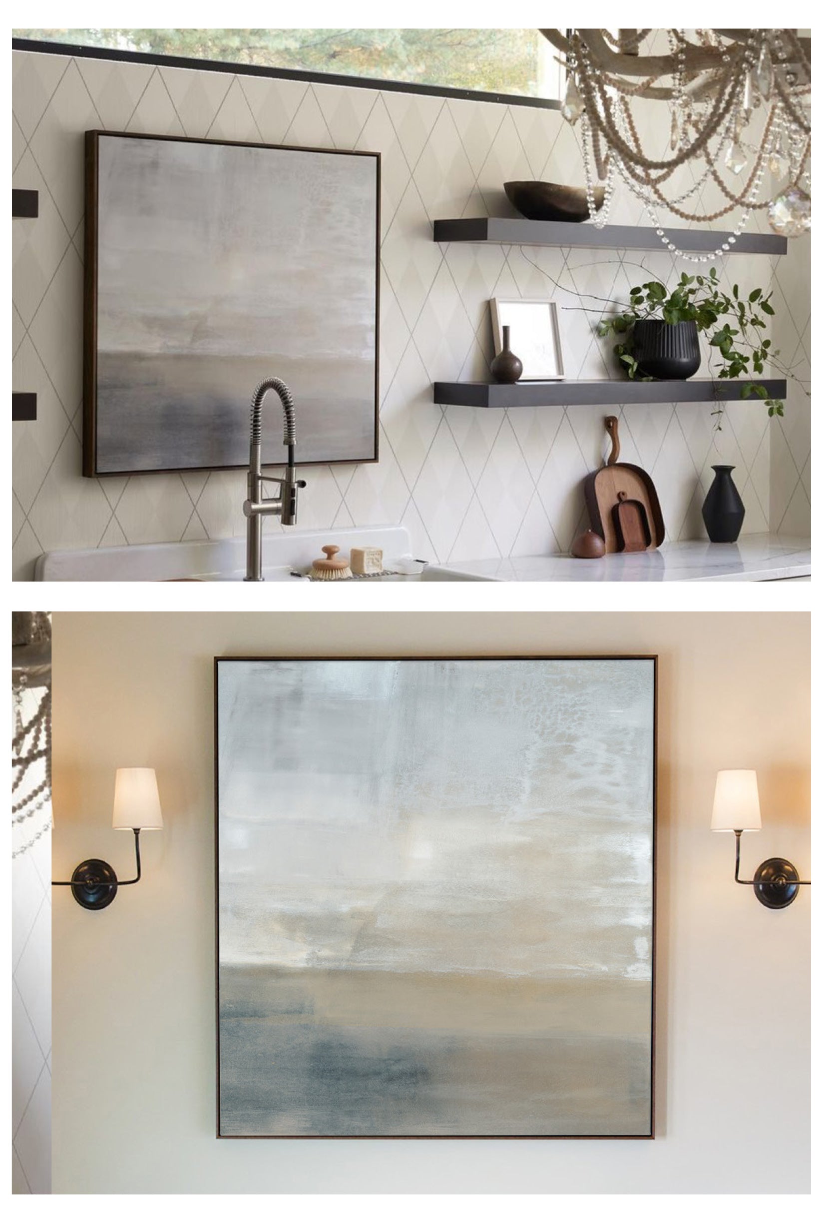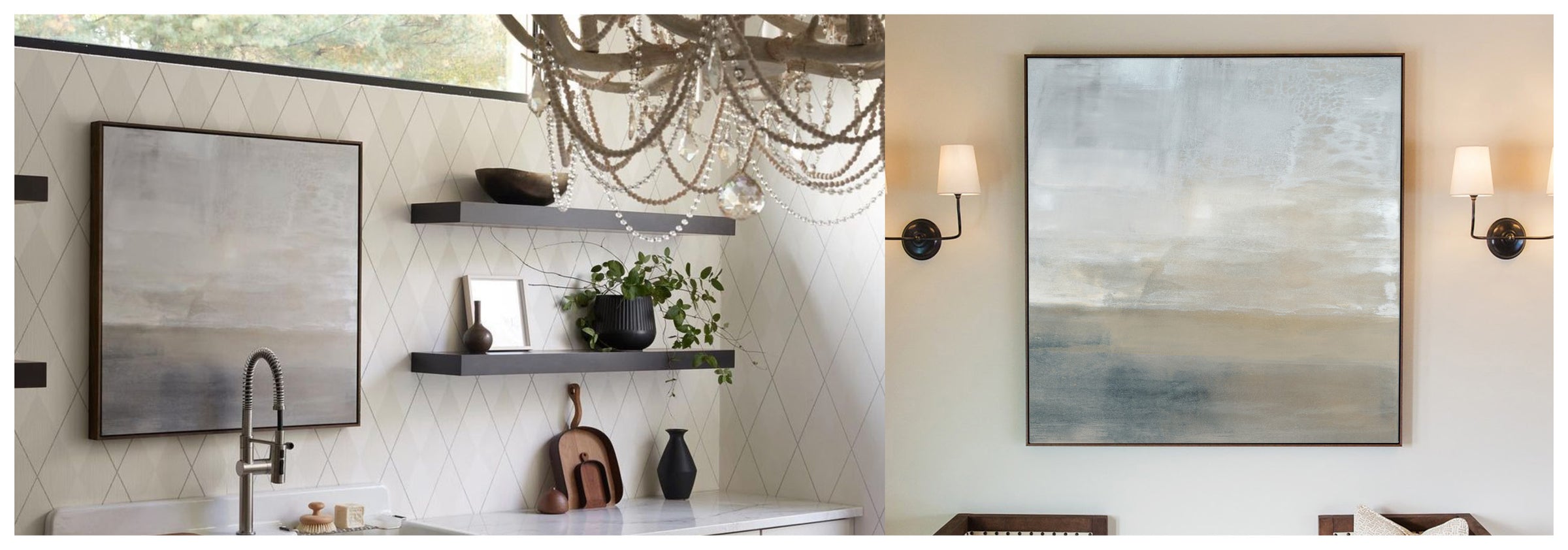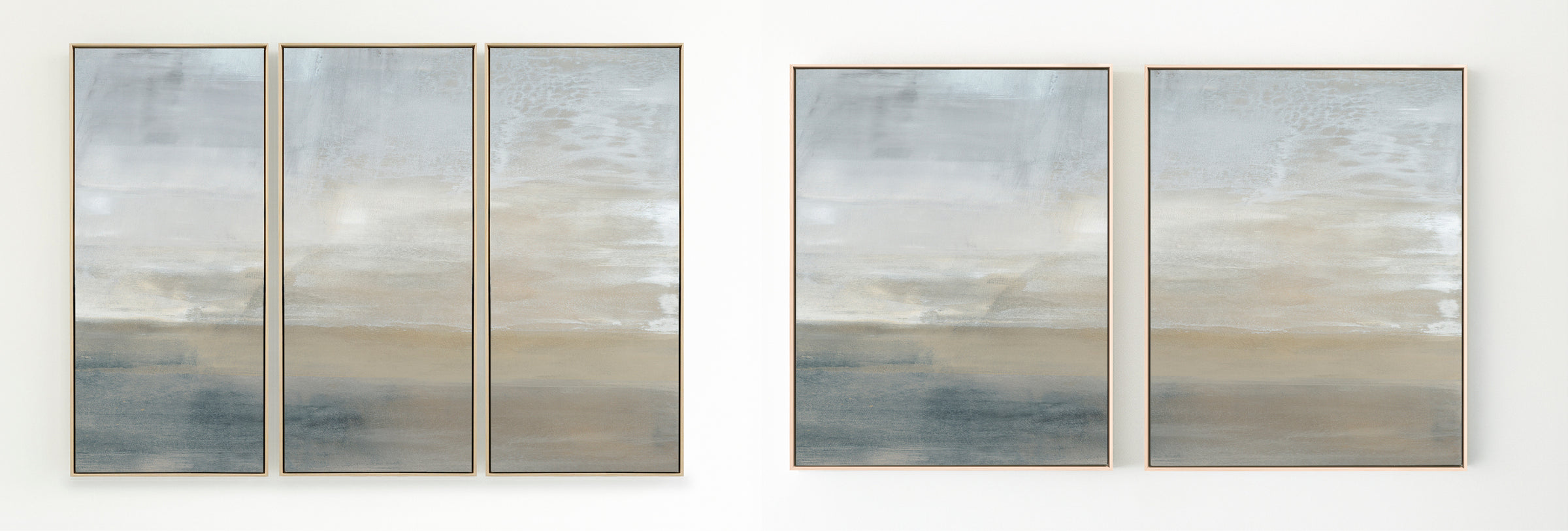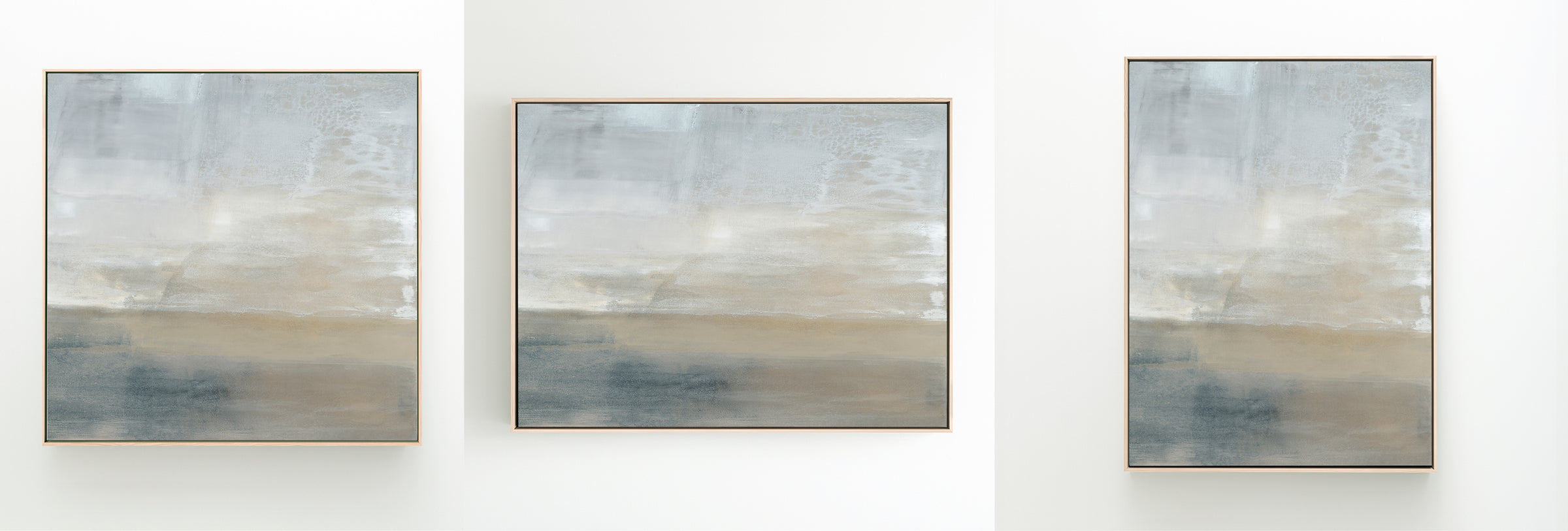 An earthy top-selling work. The Slated No.2 Collection offers reproductions in various options. The Canvas Basics format the painting in square, horizontal, and vertical options. The Canvas Sets offer the painting extended across multiple canvases. The Narrow Canvases offer a selection of sizes for hard to fill spaces. As with all of my work, additional custom sizing is available as a signed and hand-finished mixed media.
