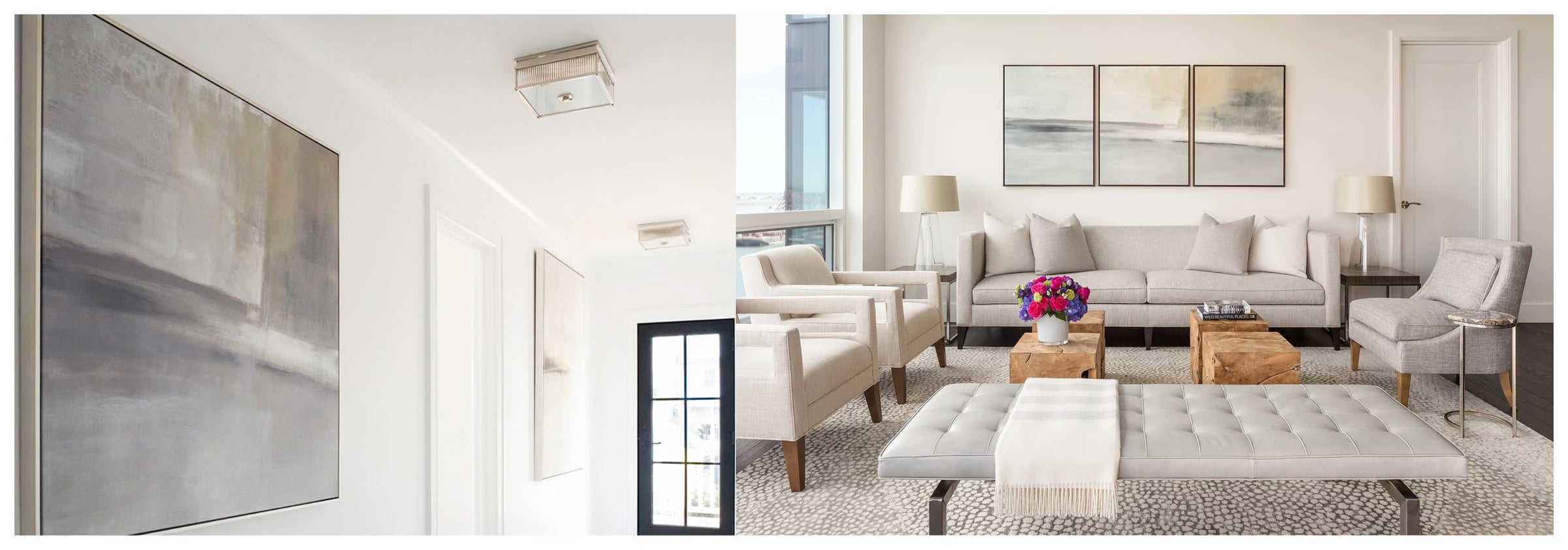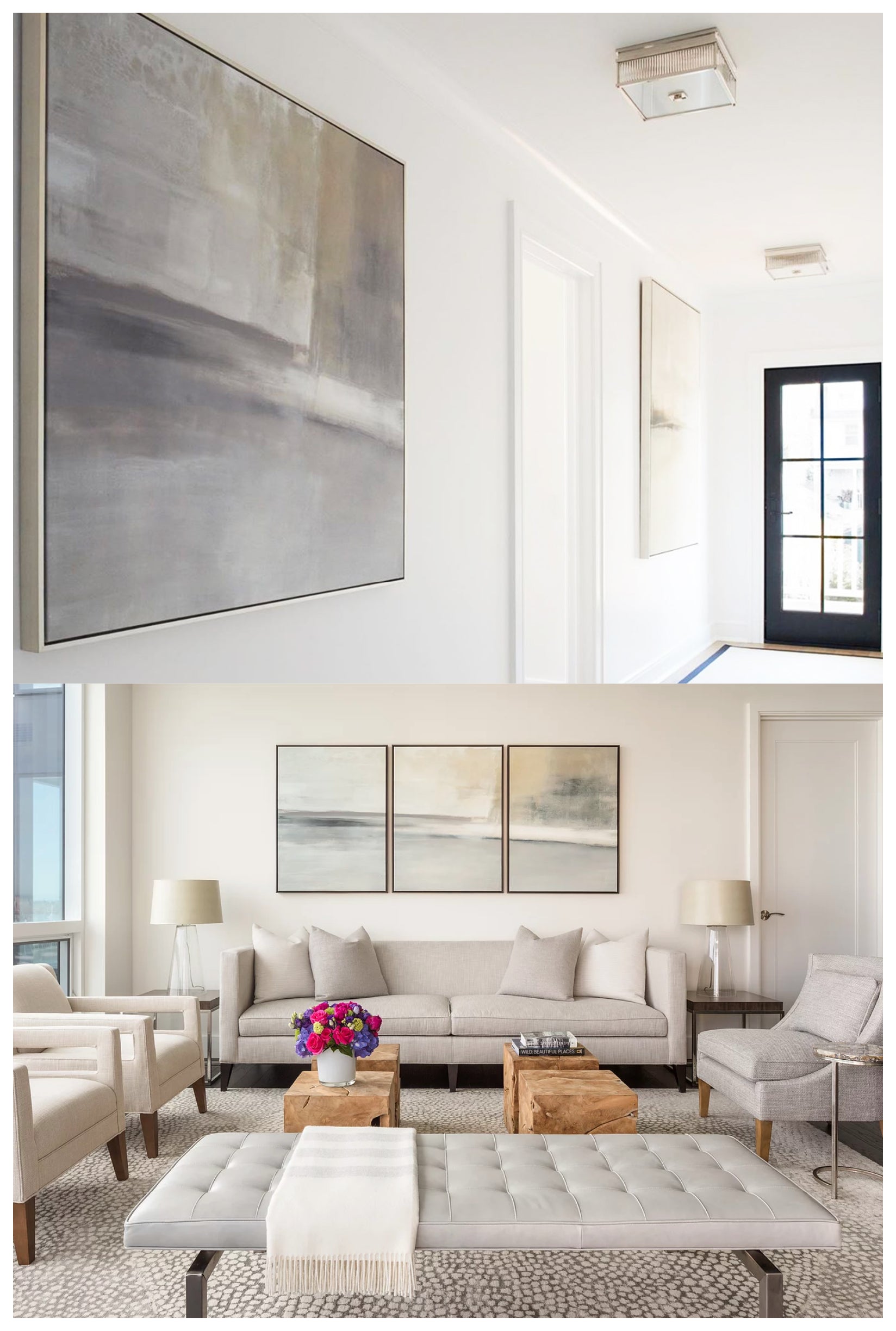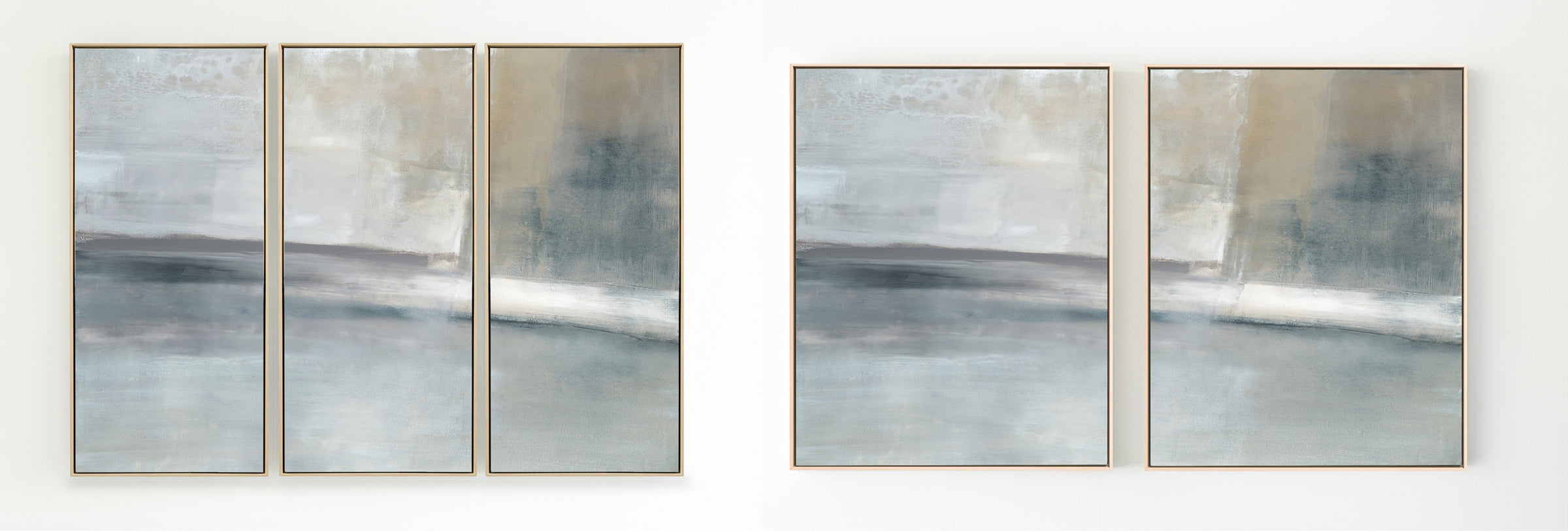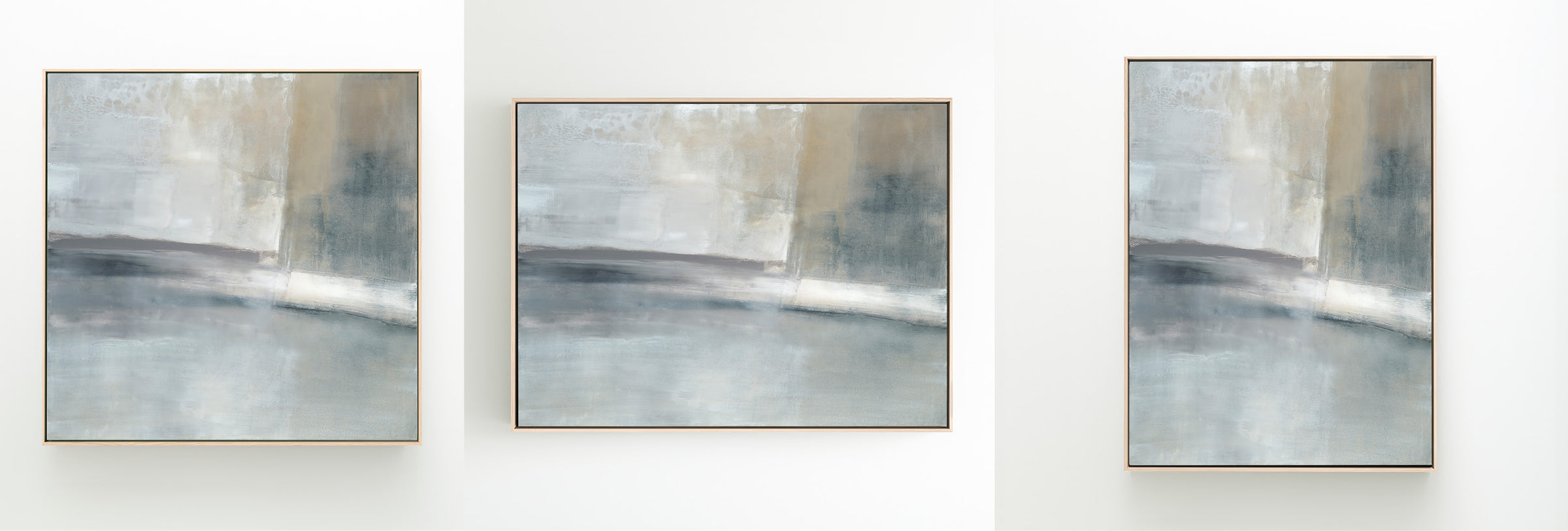 Painted in 2011, the original 60x60 artwork was one of my first paintings to sell under the renowned Holly Hunt brand. The layers of taupes, soft charcoals and caramel tones create an earthy composition. The Slated Collection offer the painting in various forms, from the canvas basics to diptychs and triptychs in our largest sizes.