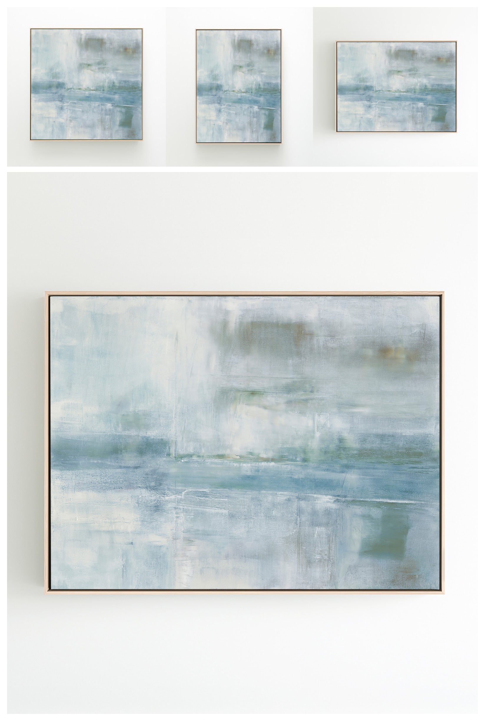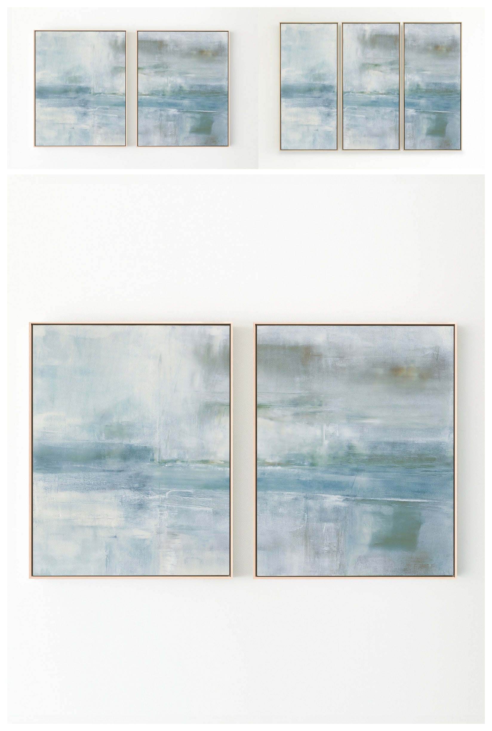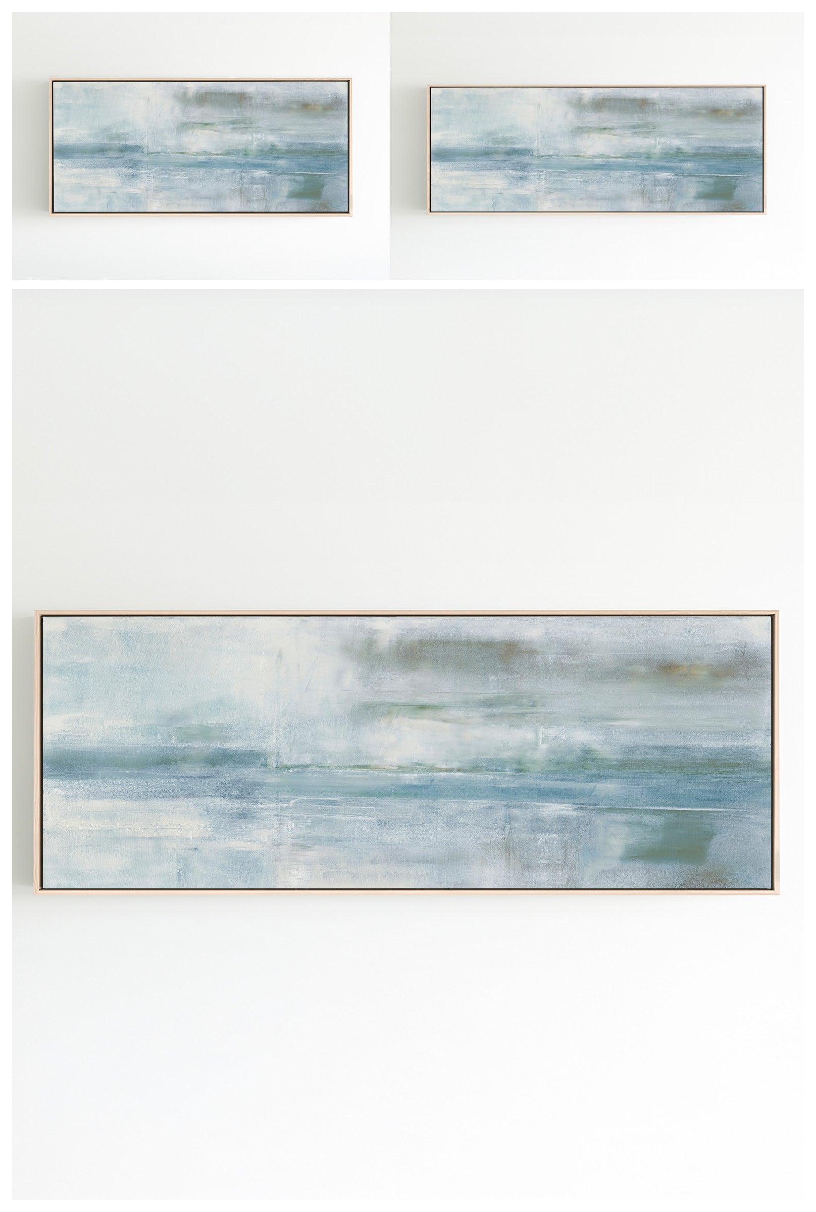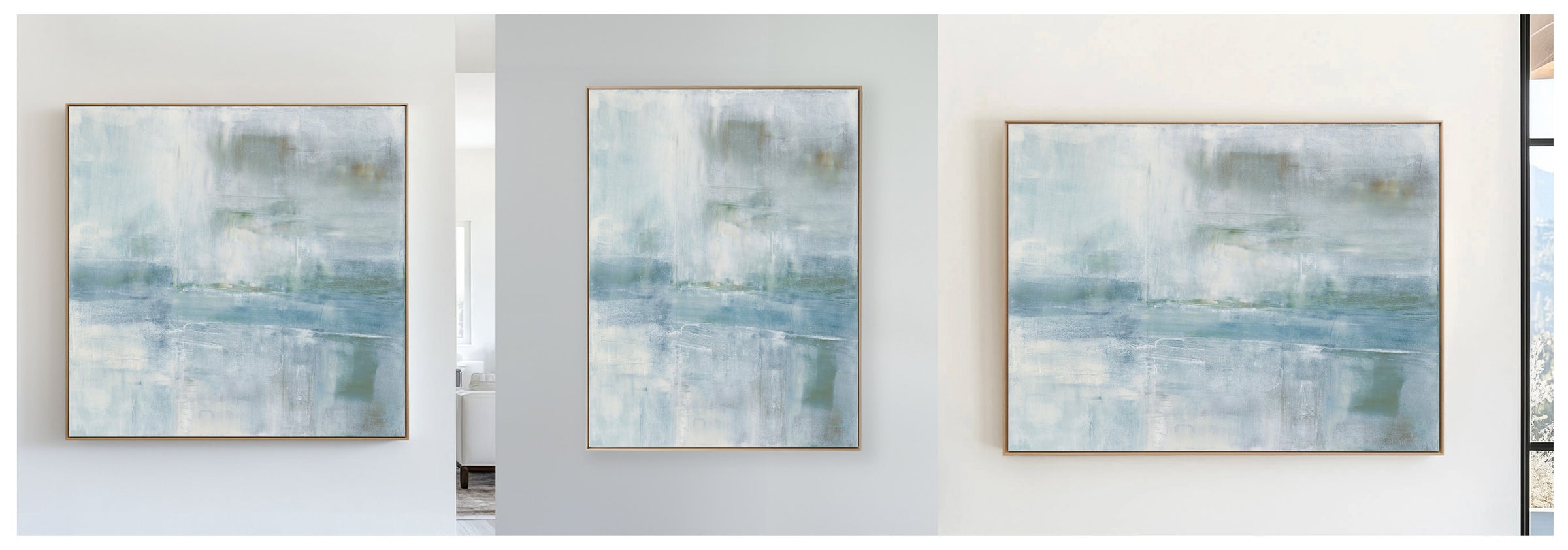 Layered in blue-green, sage and creams with a hint of ochre. The Tahoe Blues Collection offers the original painting as well as a range of reproductions. The Canvas Basics format the work in square, horizontal, and vertical canvases. The Large Canvases offer our most impactful sizes. The Canvas Sets extend the painting across multiple canvases as a diptych or triptych. The Narrow Canvas is a great solution for hard to fill spaces, available in a range of sizes.