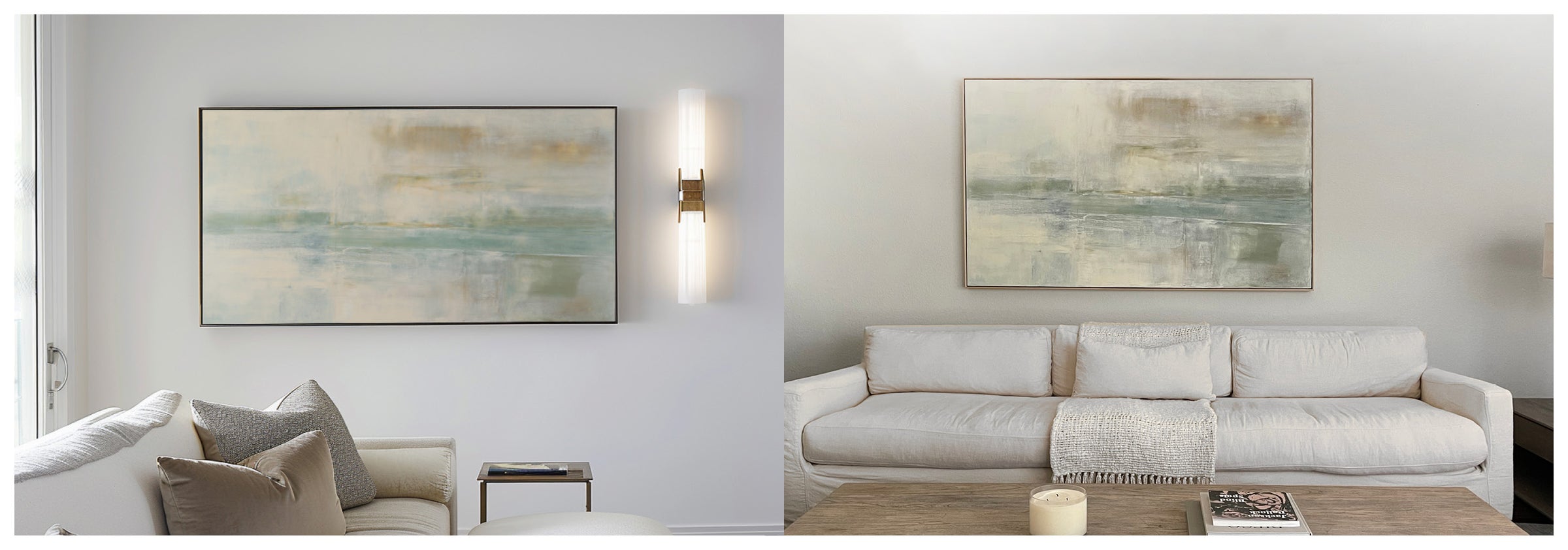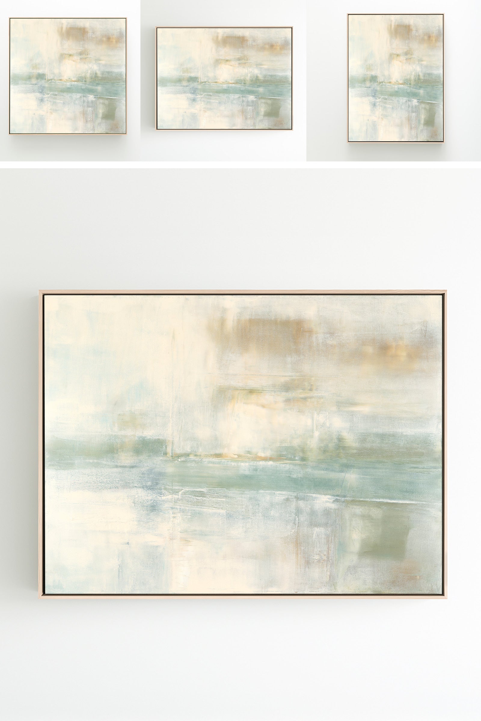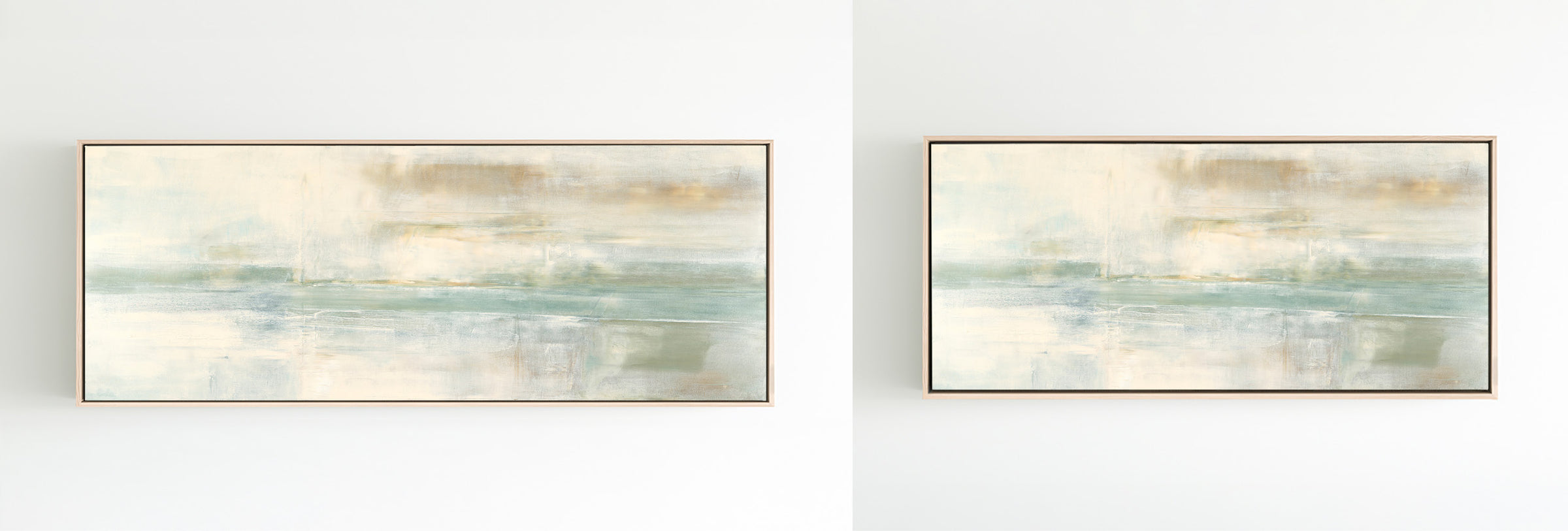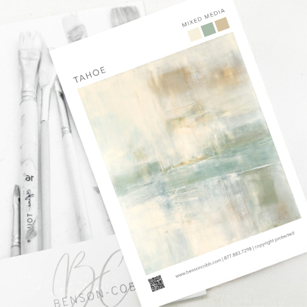 Released in 2016, the top-selling work is layered in sage greens and buttery tones. The Tahoe Collection offers the original painting as well as a range of reproductions. The Canvas Basics format the work in square, horizontal, and vertical canvases. The Large Canvases offer our most impactful sizes. The Canvas Sets extend the painting across multiple canvases as a diptych or triptych. The Narrow Canvas is a great solution for hard to fill spaces, available in a range of sizes. Additional sizing is available as a hand-finished and signed mixed media canvas.