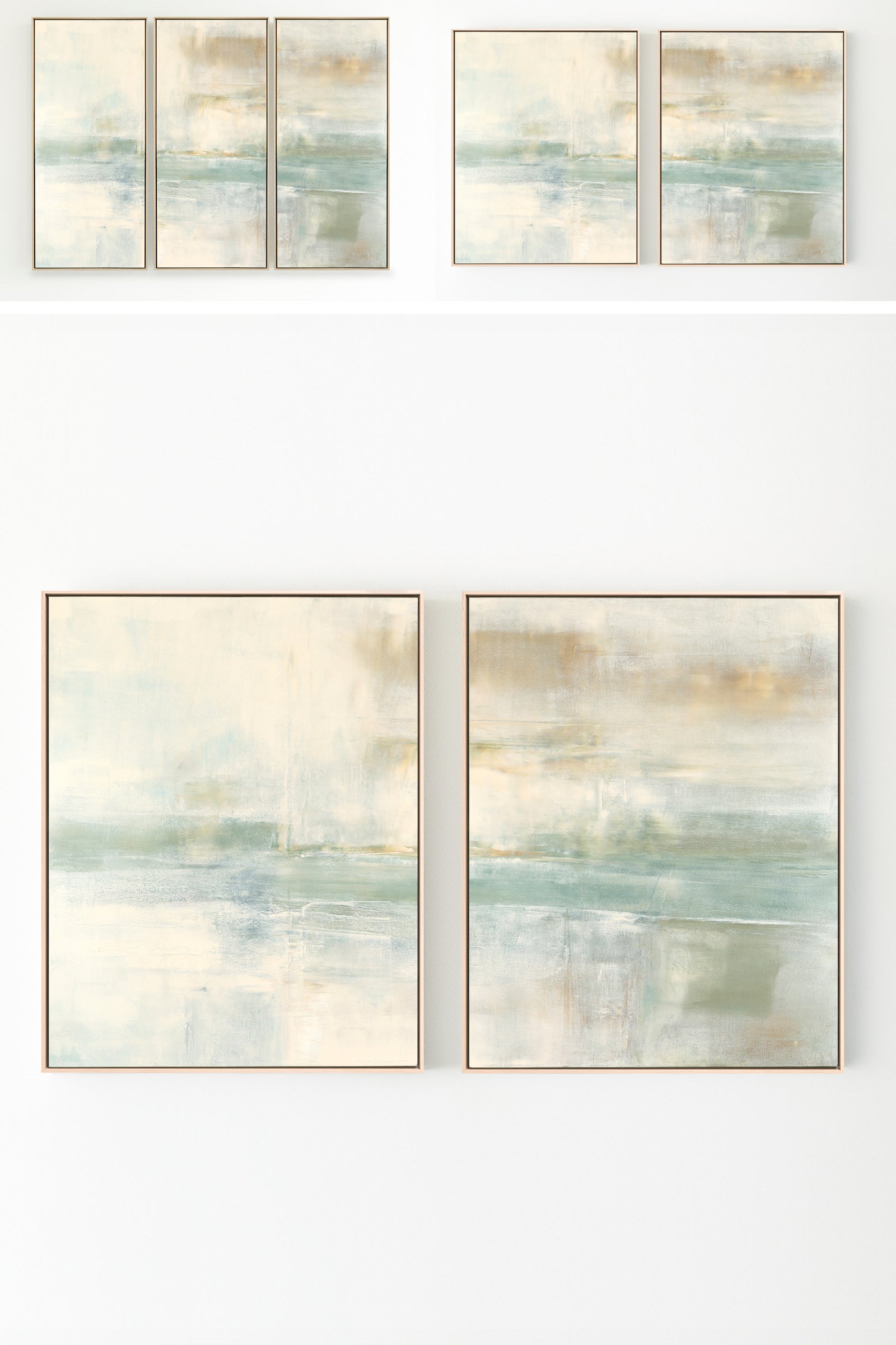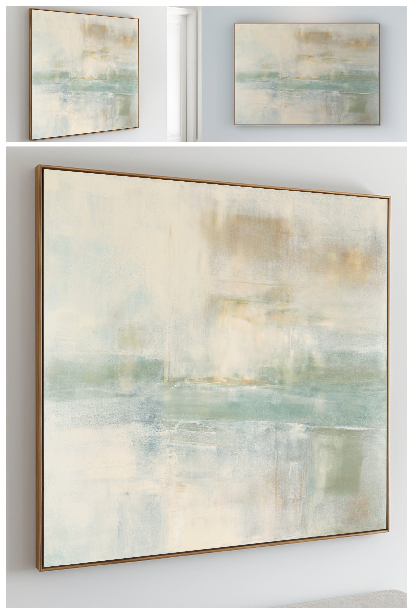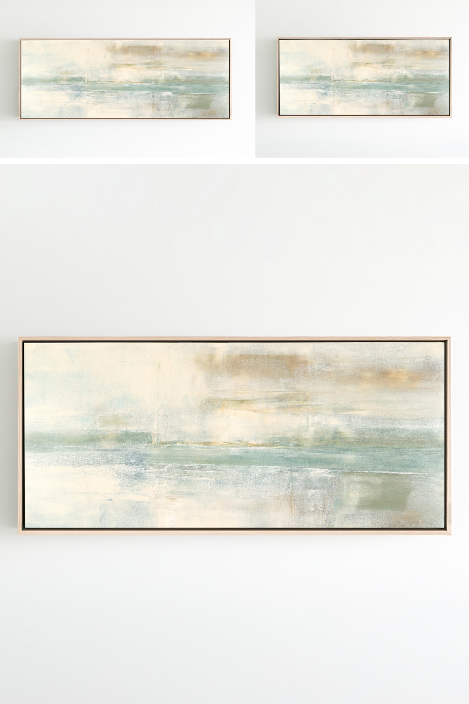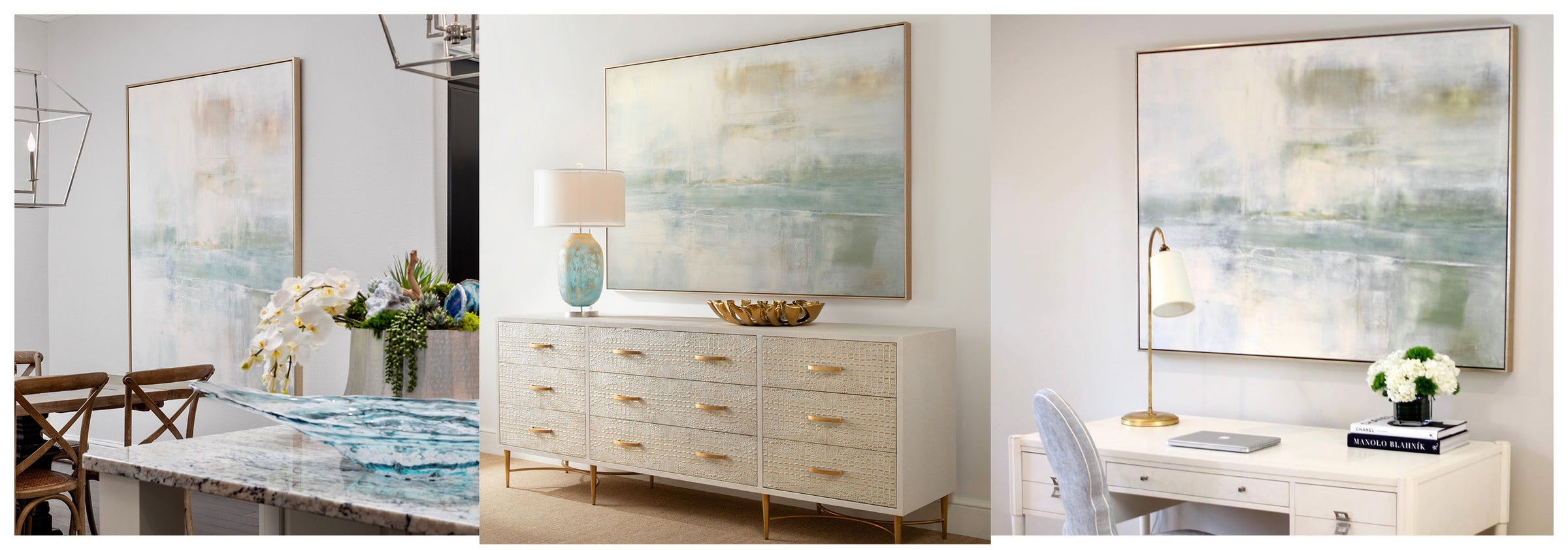 Released in 2016, the top-selling work is layered in sage greens and buttery tones. The Tahoe Collection offers the original painting as well as a range of reproductions. The Canvas Basics format the work in square, horizontal, and vertical canvases. The Large Canvases offer our most impactful sizes. The Canvas Sets extend the painting across multiple canvases as a diptych or triptych. The Narrow Canvas is a great solution for hard to fill spaces, available in a range of sizes. Additional sizing is available as a hand-finished and signed mixed media canvas.