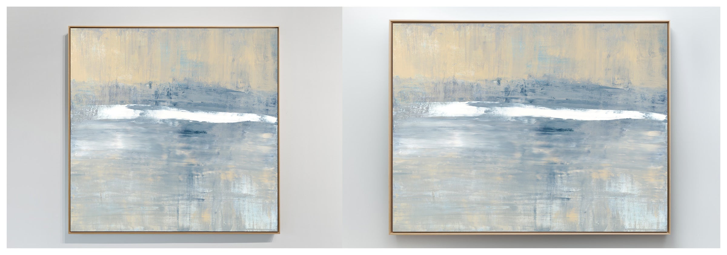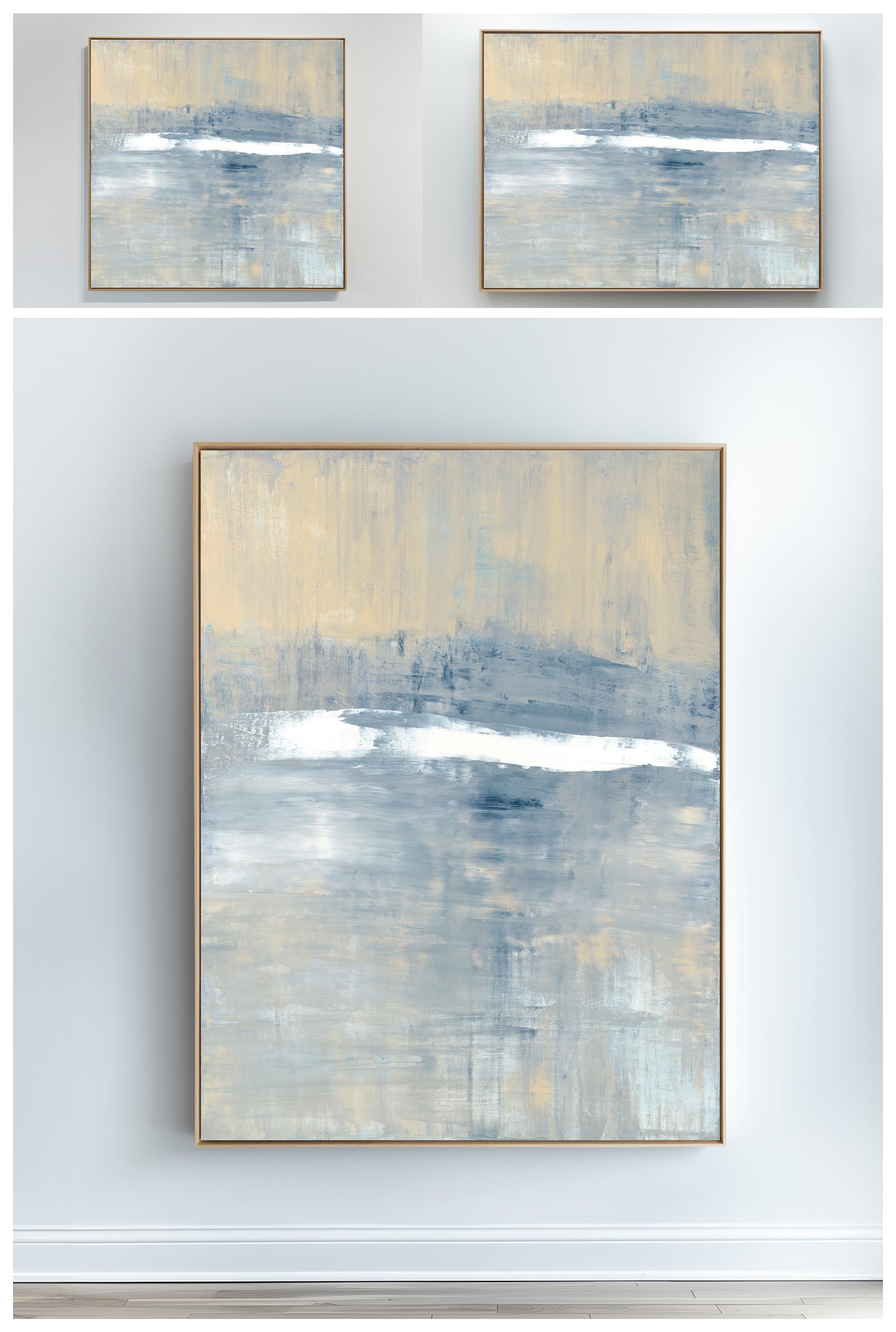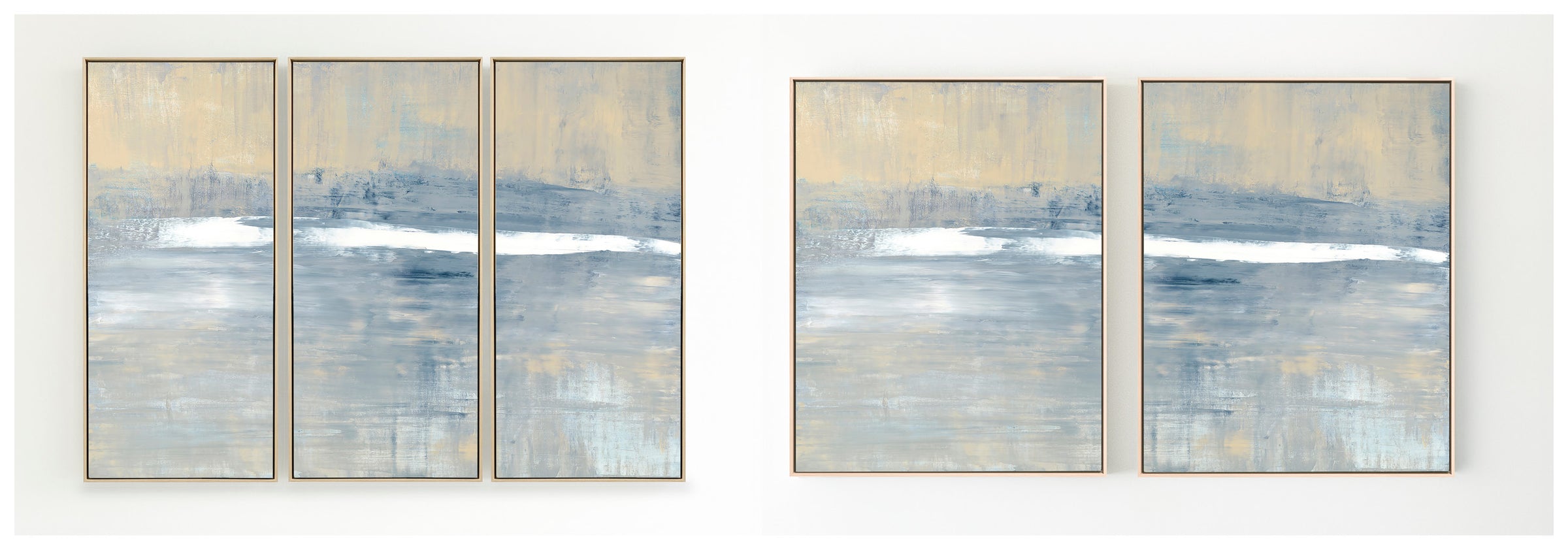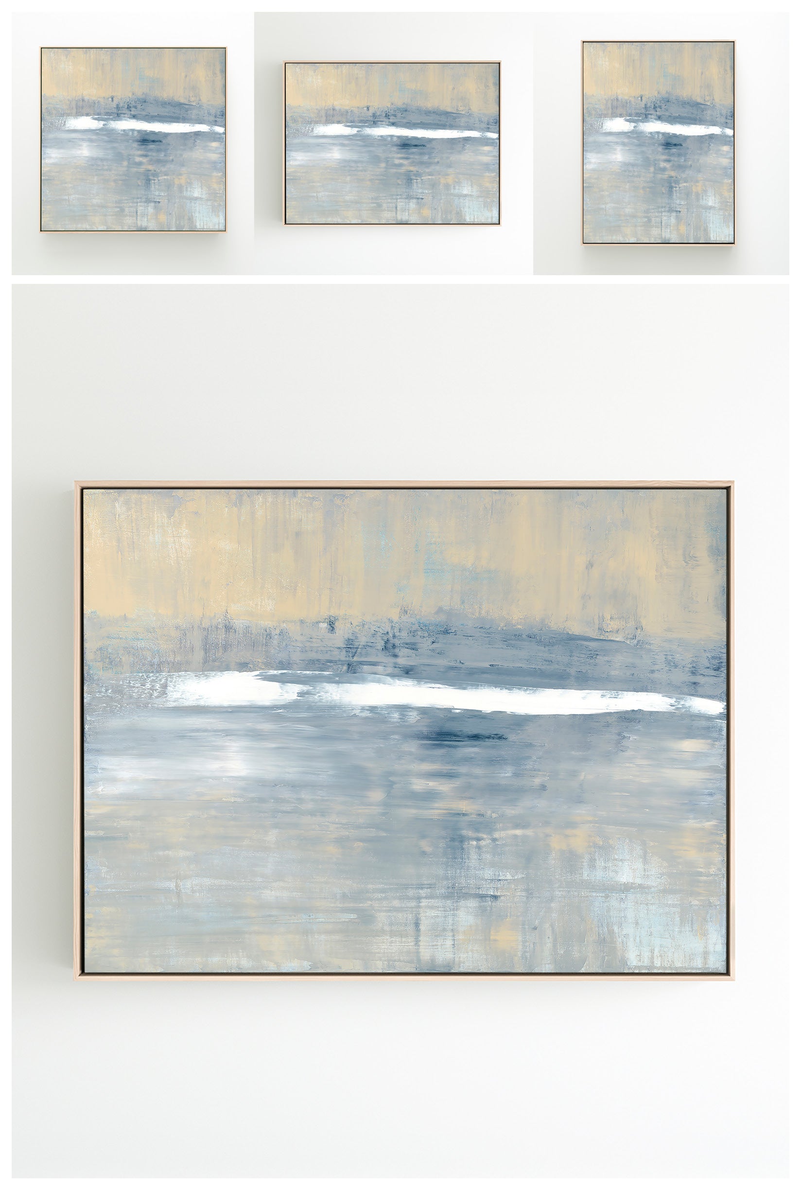 Layered in blues and creams, the original 60x60 canvas was painted in 2016. The Collection offers the work in many forms as a reproduction. The Canvas Basics format the work in square, horizontal, and vertical canvases. The Large Canvases offer our most impactful sizes. The Canvas Sets extend the painting across multiple canvases as a diptych or triptych. The Narrow Canvas is a great solution for hard to fill spaces, available in a range of sizes. Additional sizing is available as a hand-finished and signed mixed media canvas.