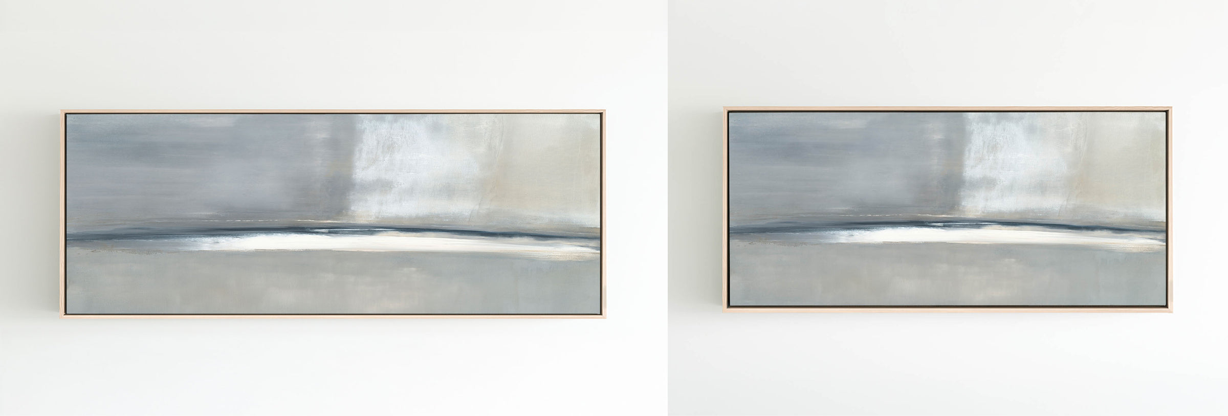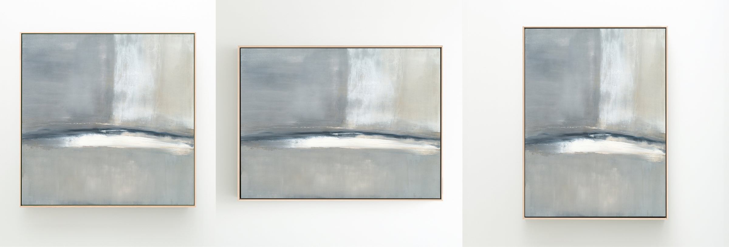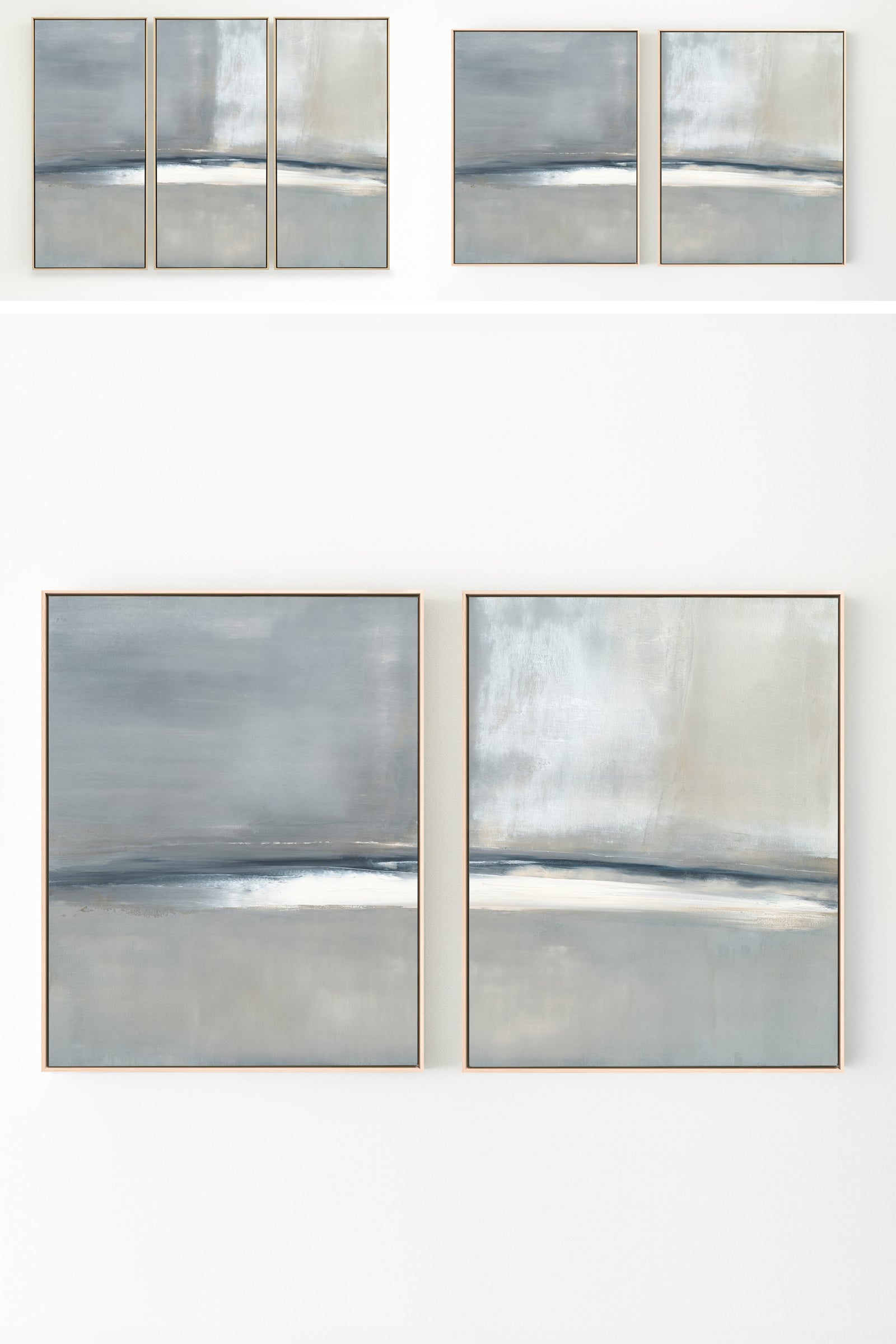 Subtle gray-blues with strokes of deep navy create interest and movement in this coastal inspired work. The original painting was sold to a private collector in 2011. The Strand Collection offers the painting in a range of reproductions. The Canvas Basics format the work in square, horizontal, and vertical canvases. The Large Canvases offer The Strand in our largest sizes. The Canvas Sets extend the painting across multiple canvases as a diptych or triptych. The Narrow Canvas is a great solution for hard to fill spaces, available in a range of sizes. Additional sizing is available has a hand-finished and signed mixed media canvas.