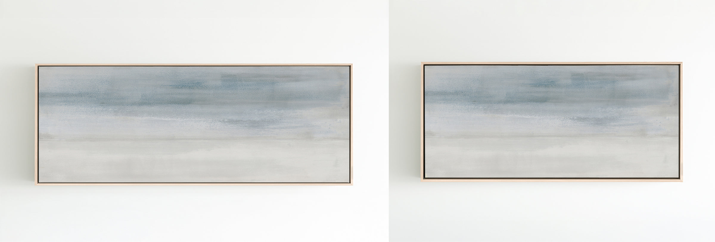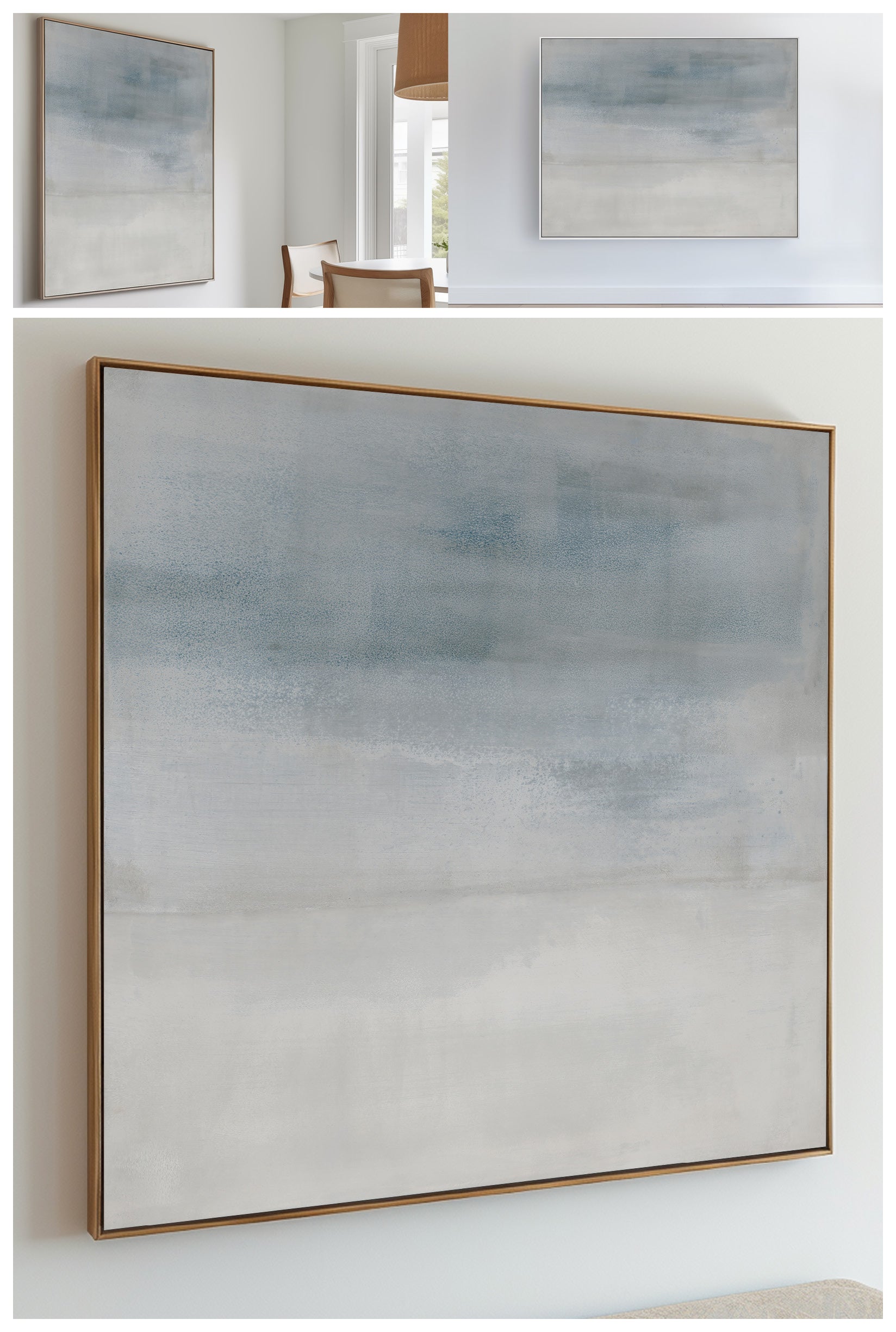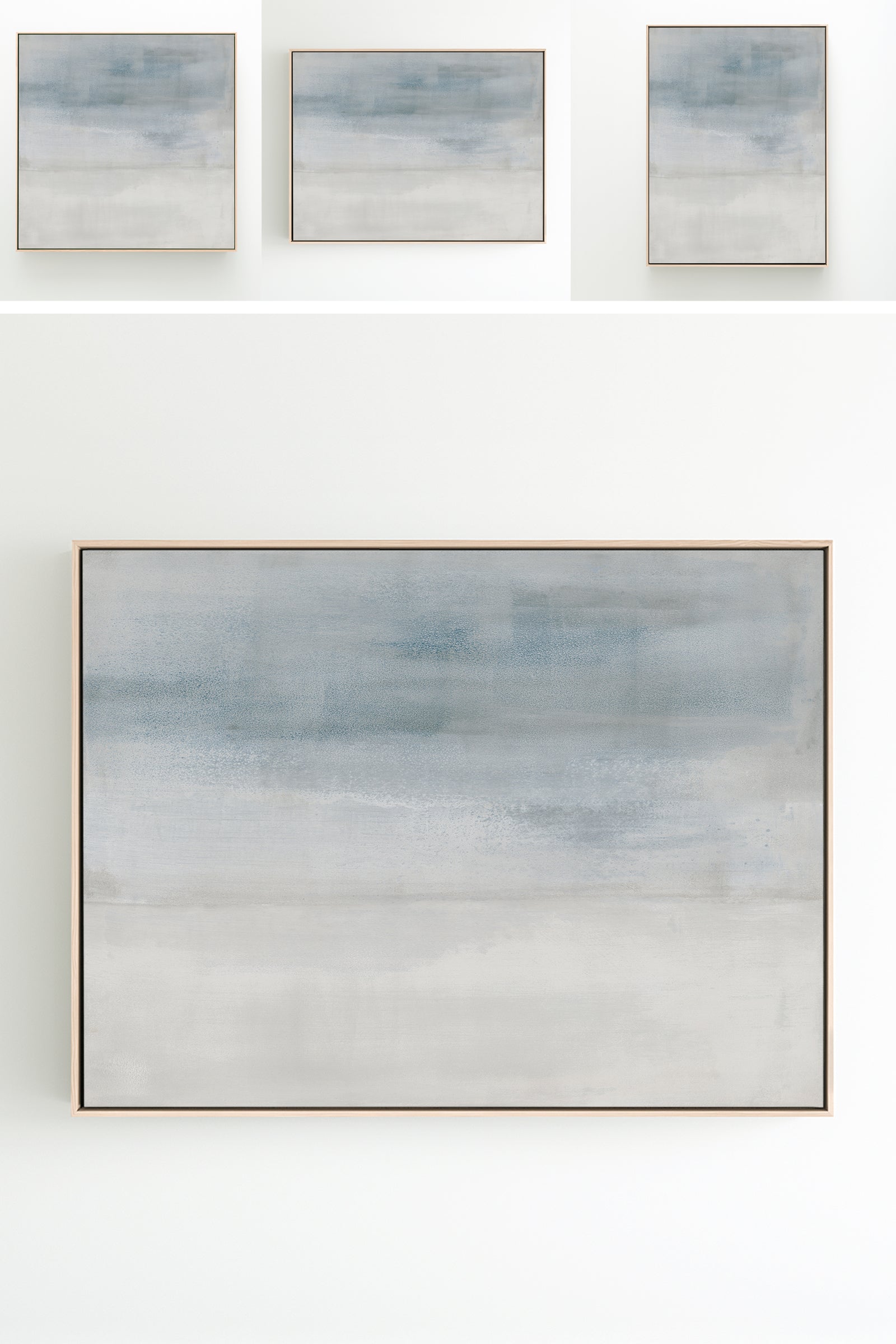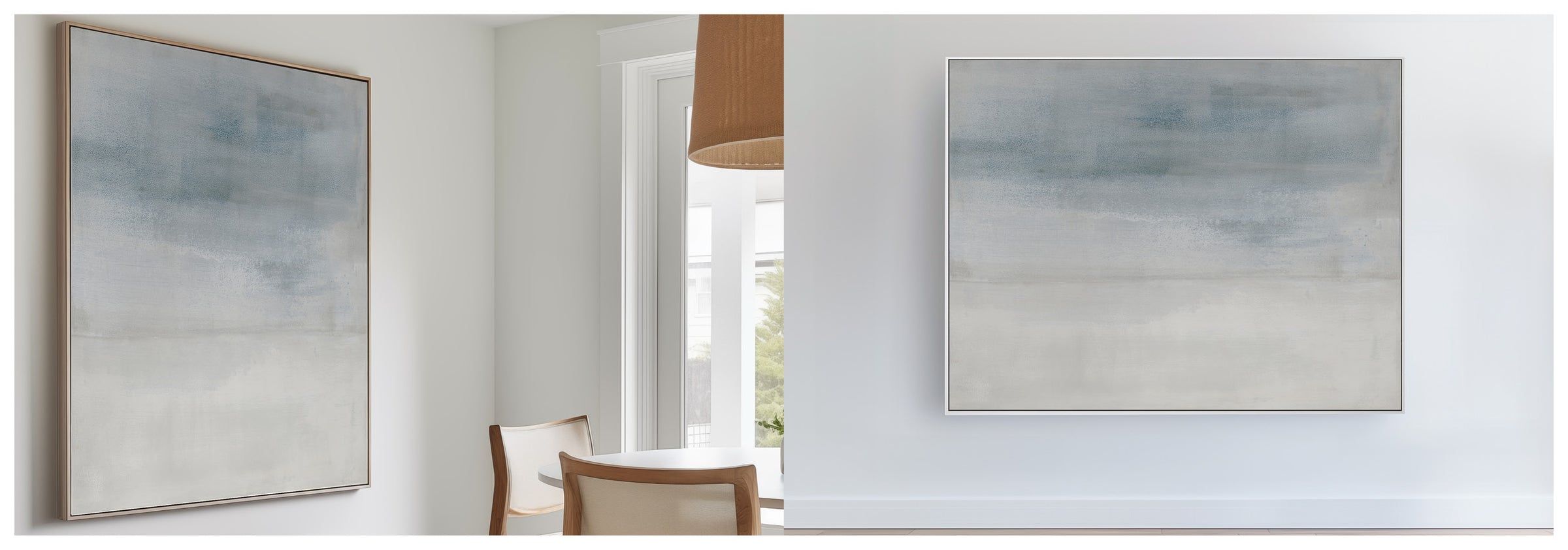 A lingering, slightly ominous sky, washed in pale grays and blues. The Whisper Collection offers the work in many forms from the original painting to various forms as a reproduction. The Canvas Basics format the work in square, horizontal, and vertical canvases. The Large Canvases offer our most impactful sizes. The Canvas Sets extend the painting across multiple canvases as a diptych or triptych. The Narrow Canvas is a great solution for hard to fill spaces, available in a range of sizes. Additional sizing is available as a hand-finished and signed mixed media canvas.