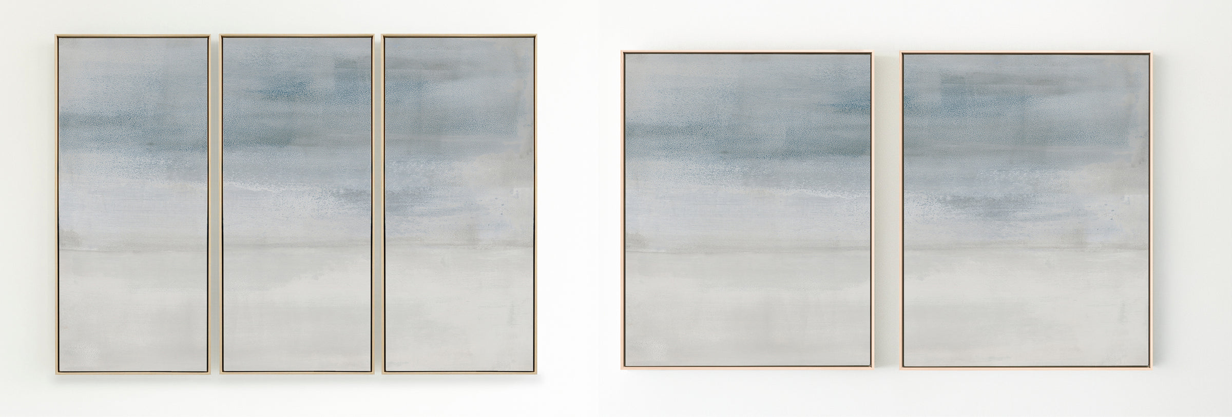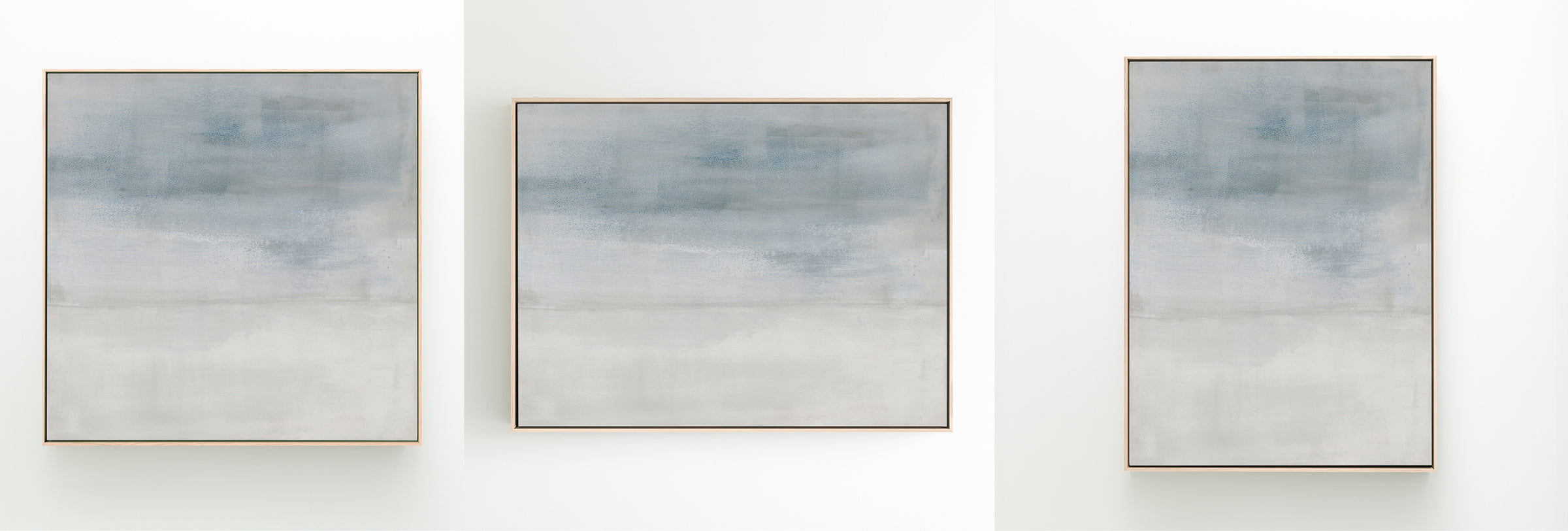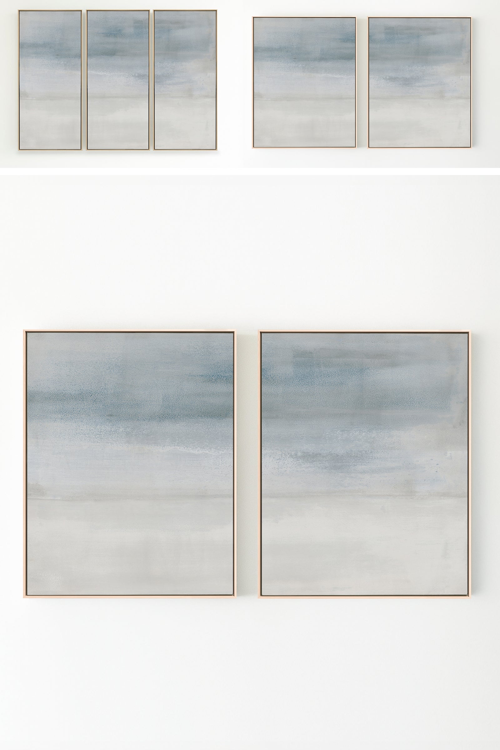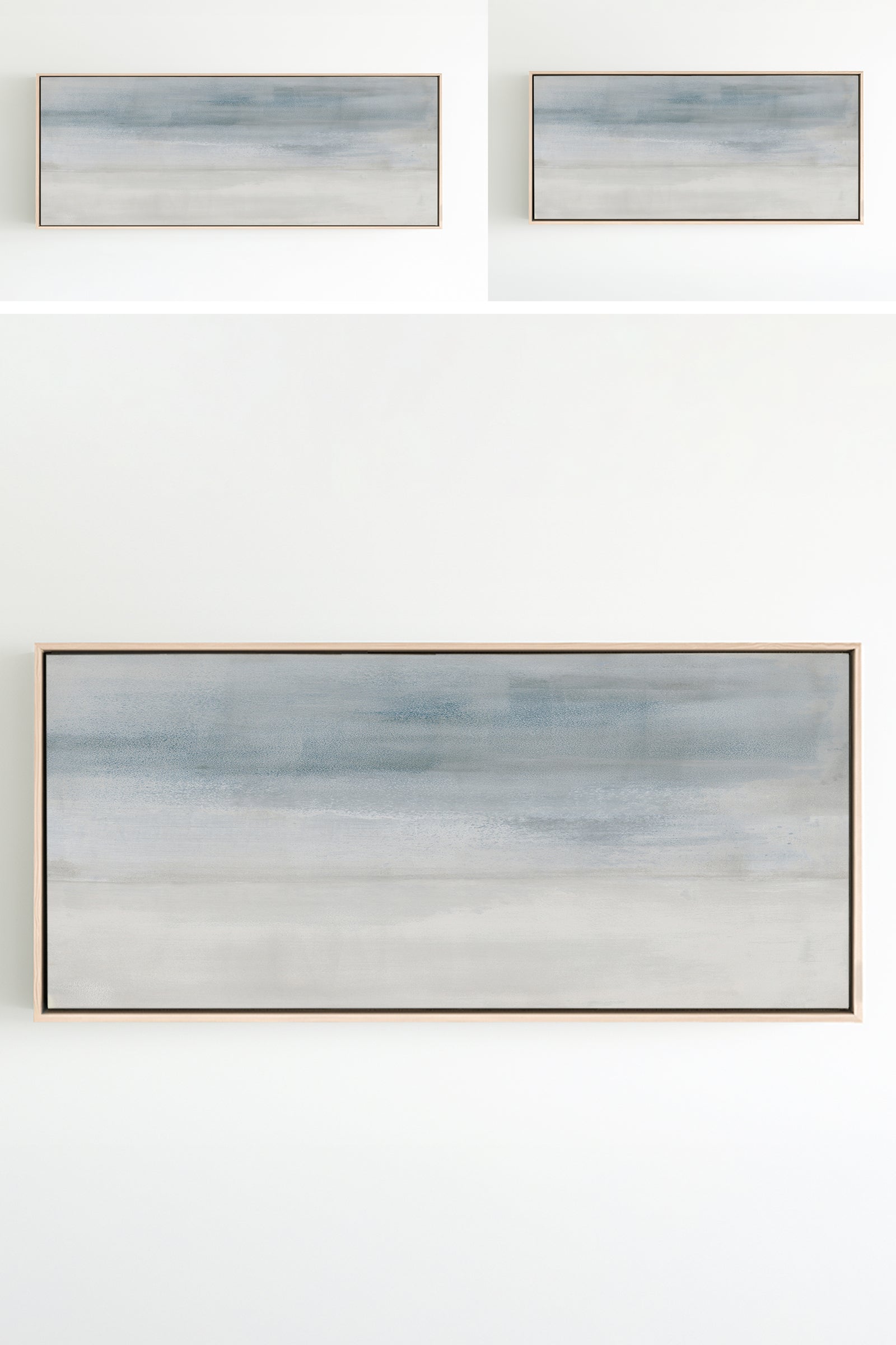 A lingering, slightly ominous sky, washed in pale grays and blues. The Whisper Collection offers the work in many forms from the original painting to various forms as a reproduction. The Canvas Basics format the work in square, horizontal, and vertical canvases. The Large Canvases offer our most impactful sizes. The Canvas Sets extend the painting across multiple canvases as a diptych or triptych. The Narrow Canvas is a great solution for hard to fill spaces, available in a range of sizes. Additional sizing is available as a hand-finished and signed mixed media canvas.
