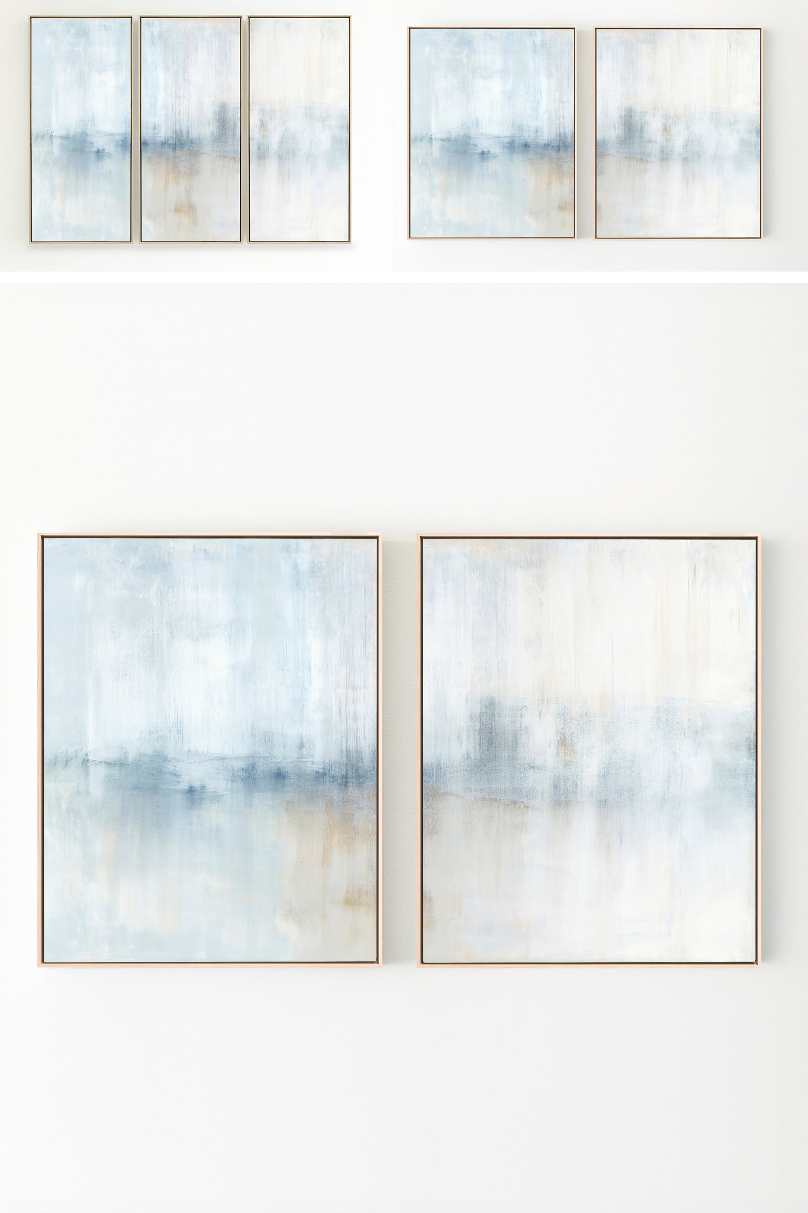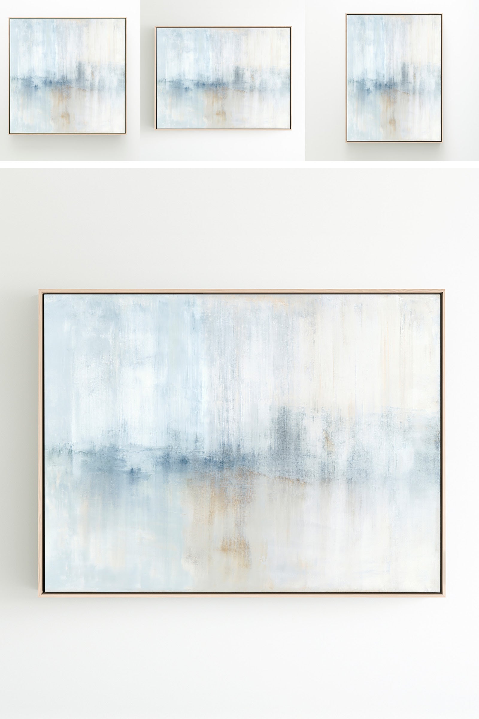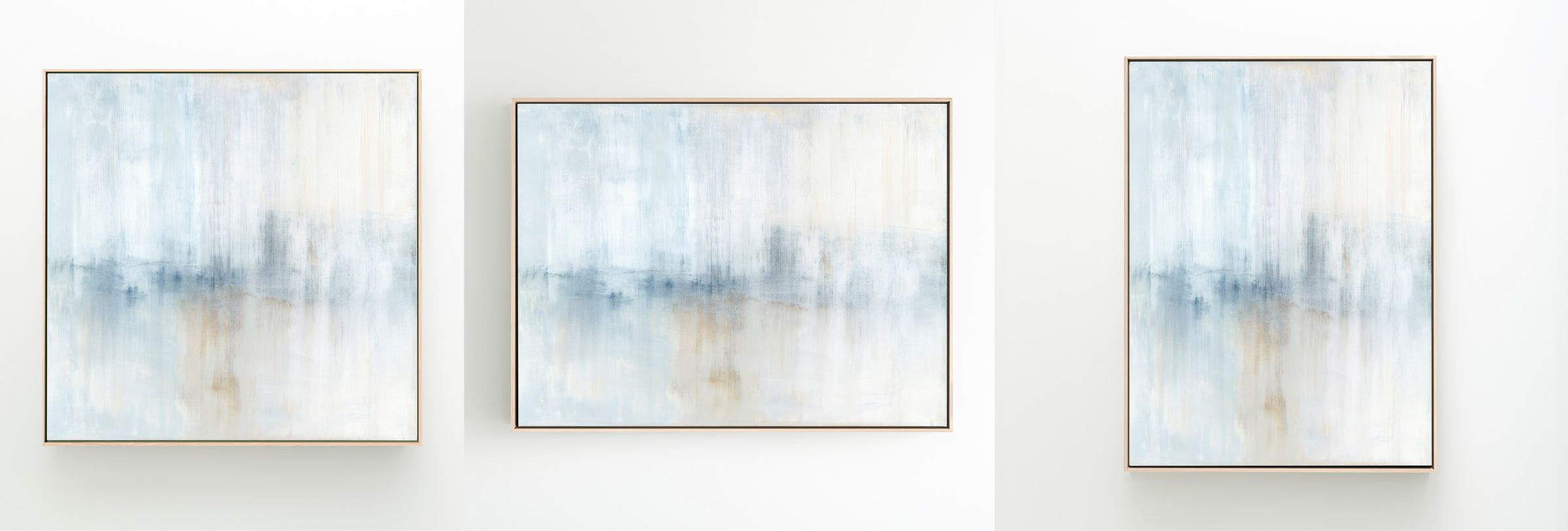 Layers of creamy whites, navy and umber tones create soft movement. The Winter Bounty Collection offers the painting in many forms, from the original painting to various reproduction options. The Canvas Basics format the work in square, horizontal, and vertical canvases. The Canvas Sets extend the painting across multiple canvases as a diptych or triptych. The Narrow Canvas is a great solution for hard to fill spaces, available in a range of sizes. Additional sizing is available as a hand-finished and signed mixed media canvas.