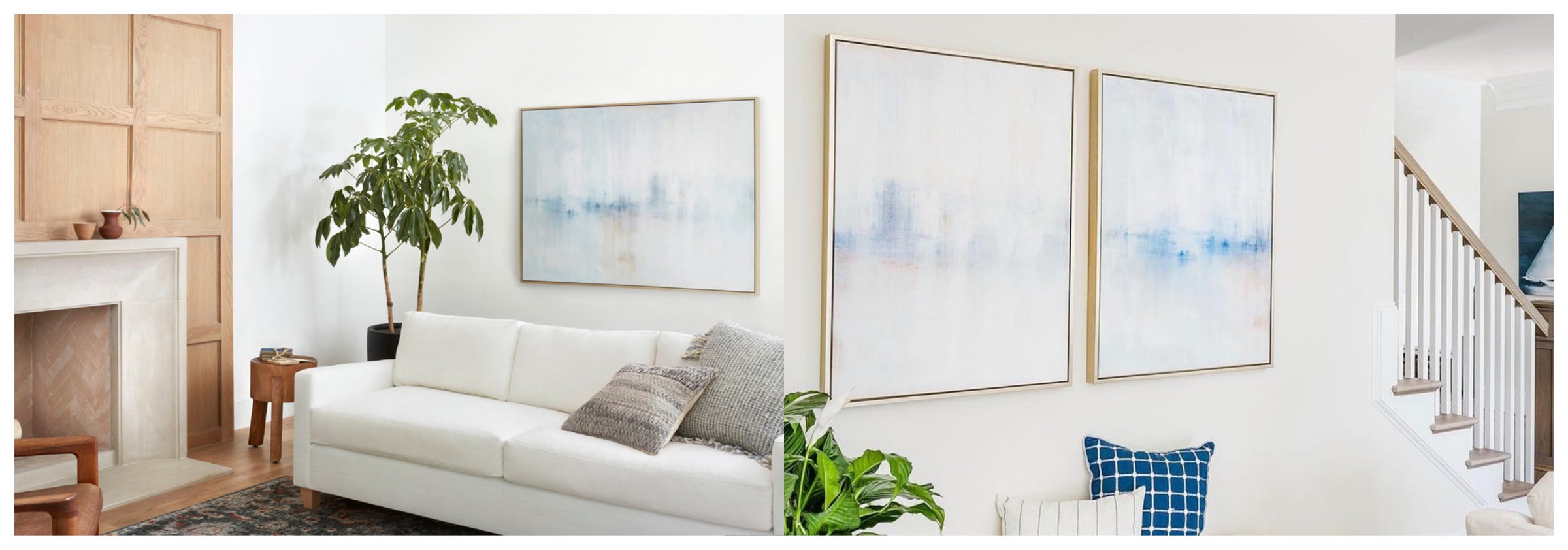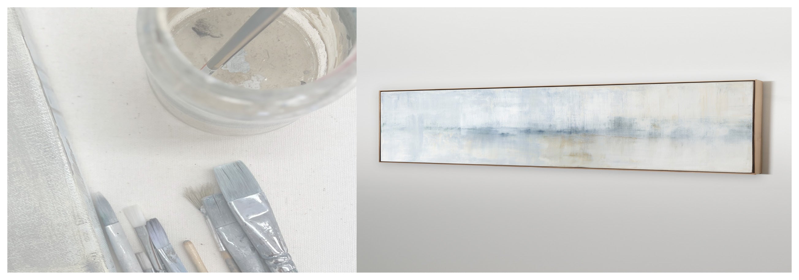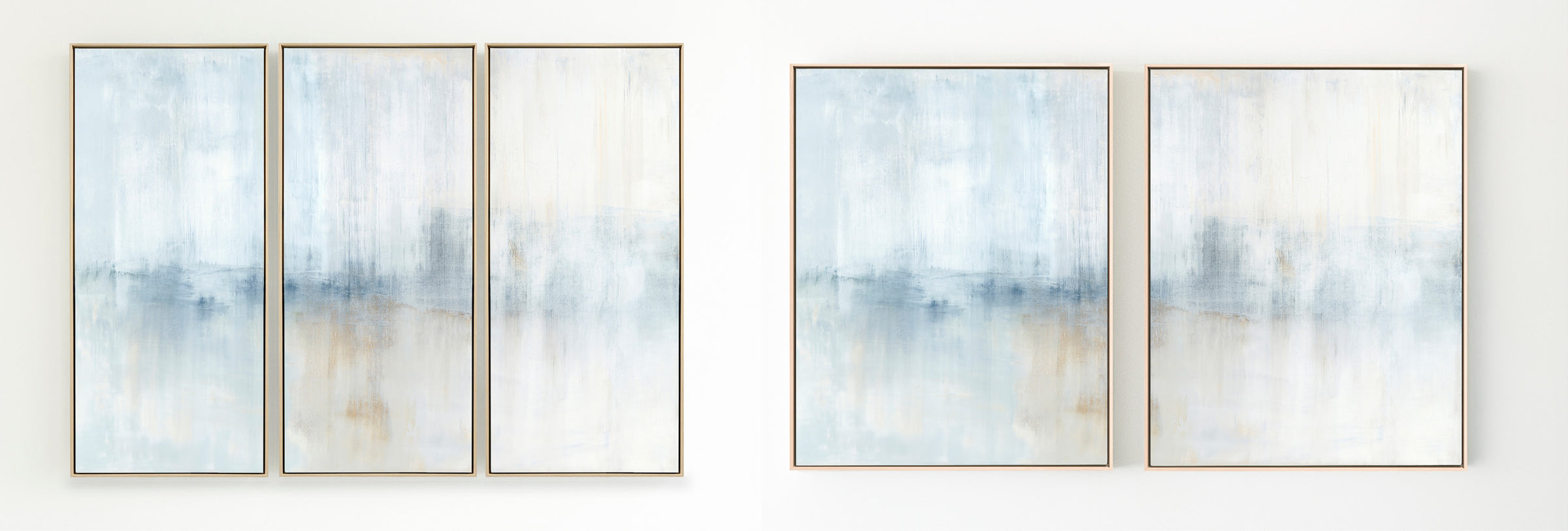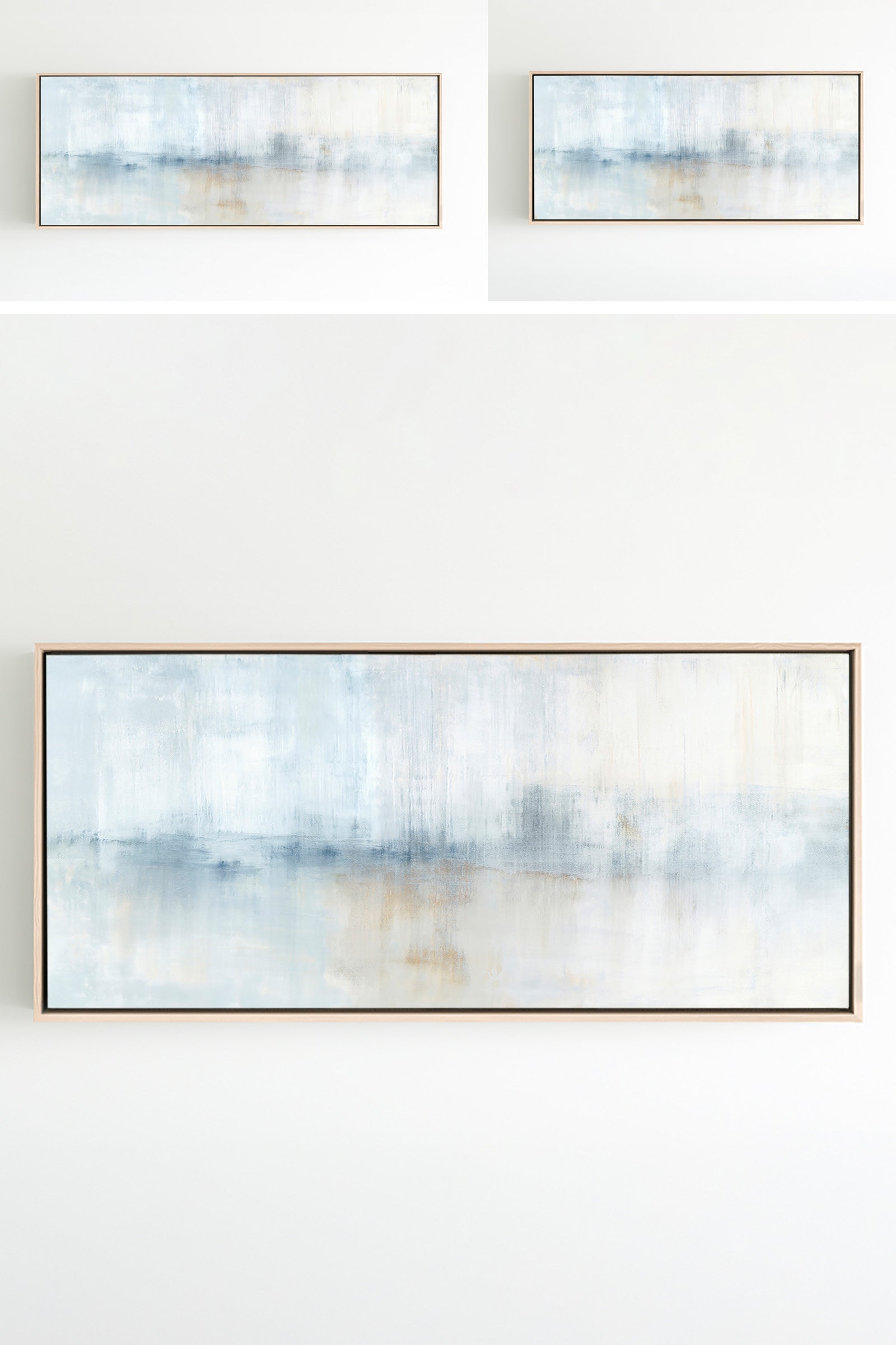 Layers of creamy whites, navy and umber tones create soft movement. The Winter Bounty Collection offers the painting in many forms, from the original painting to various reproduction options. The Canvas Basics format the work in square, horizontal, and vertical canvases. The Canvas Sets extend the painting across multiple canvases as a diptych or triptych. The Narrow Canvas is a great solution for hard to fill spaces, available in a range of sizes. Additional sizing is available as a hand-finished and signed mixed media canvas.