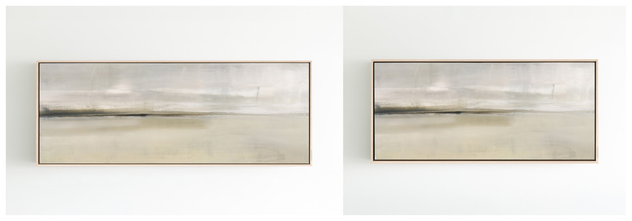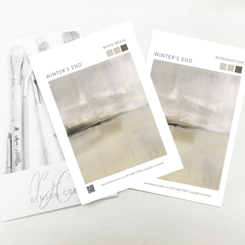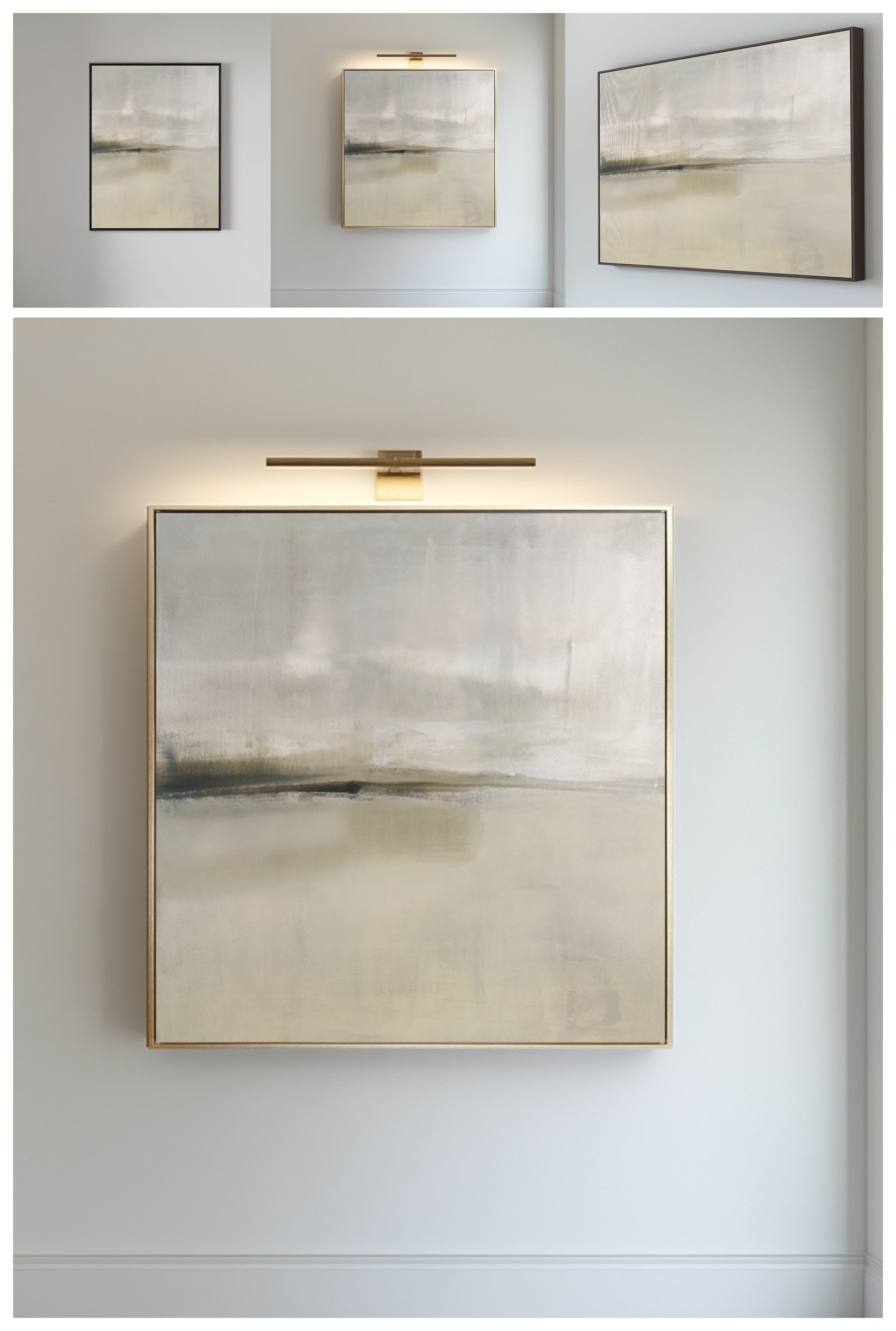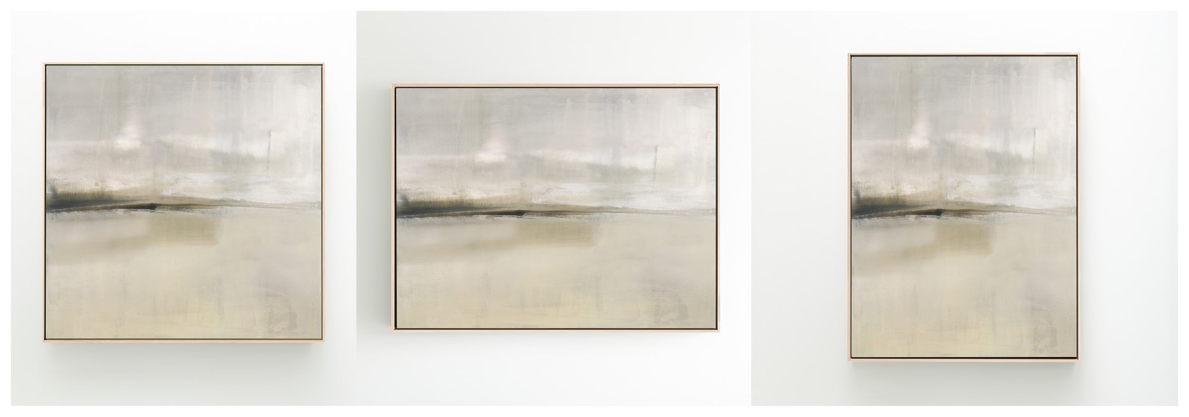 Released in 2012, the soft landscape is layered in minimalistic strokes of creams, charcoals, and deep browns. The Collection offers the painting in several options, from the canvas basics in square, horizontal, and vertical formats, to canvas sets and a narrow adaptation in a range of sizes. Additional customization is available as a hand-finished mixed media canvas.